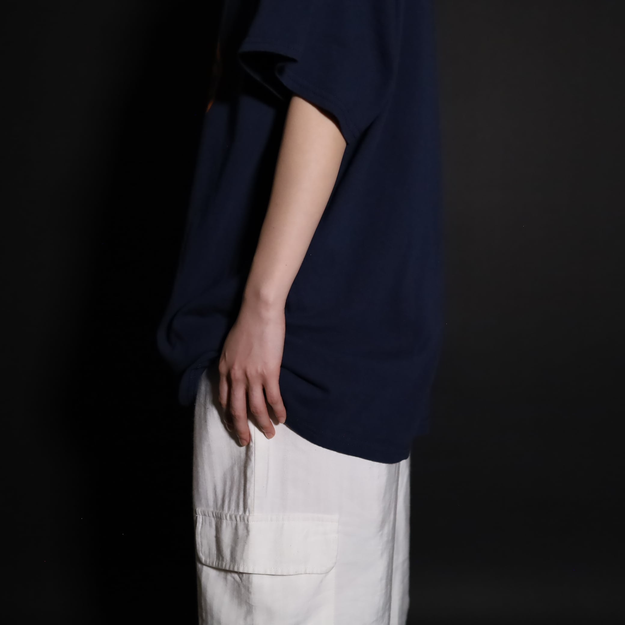 ネイビーカラーのコットン100%ボディ.