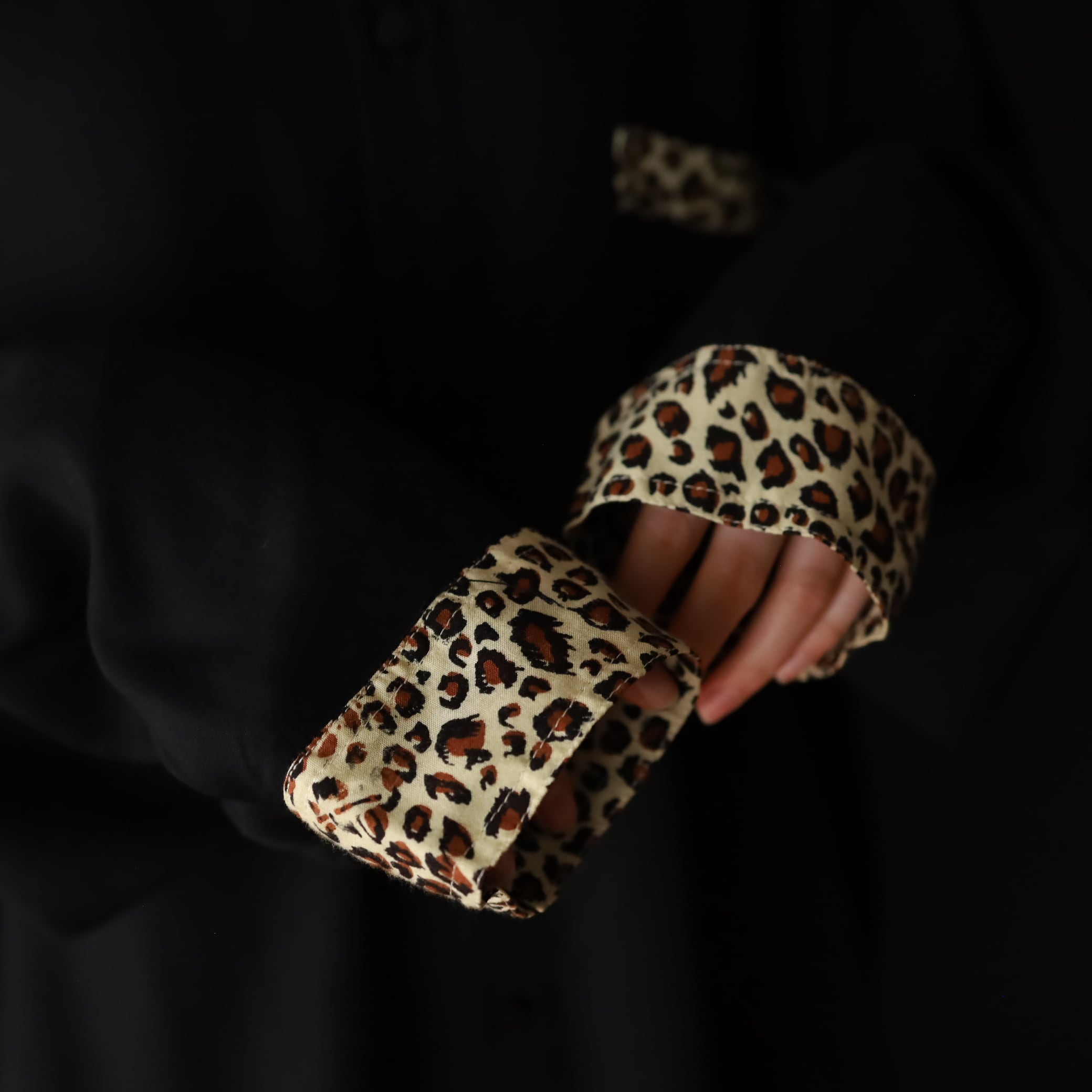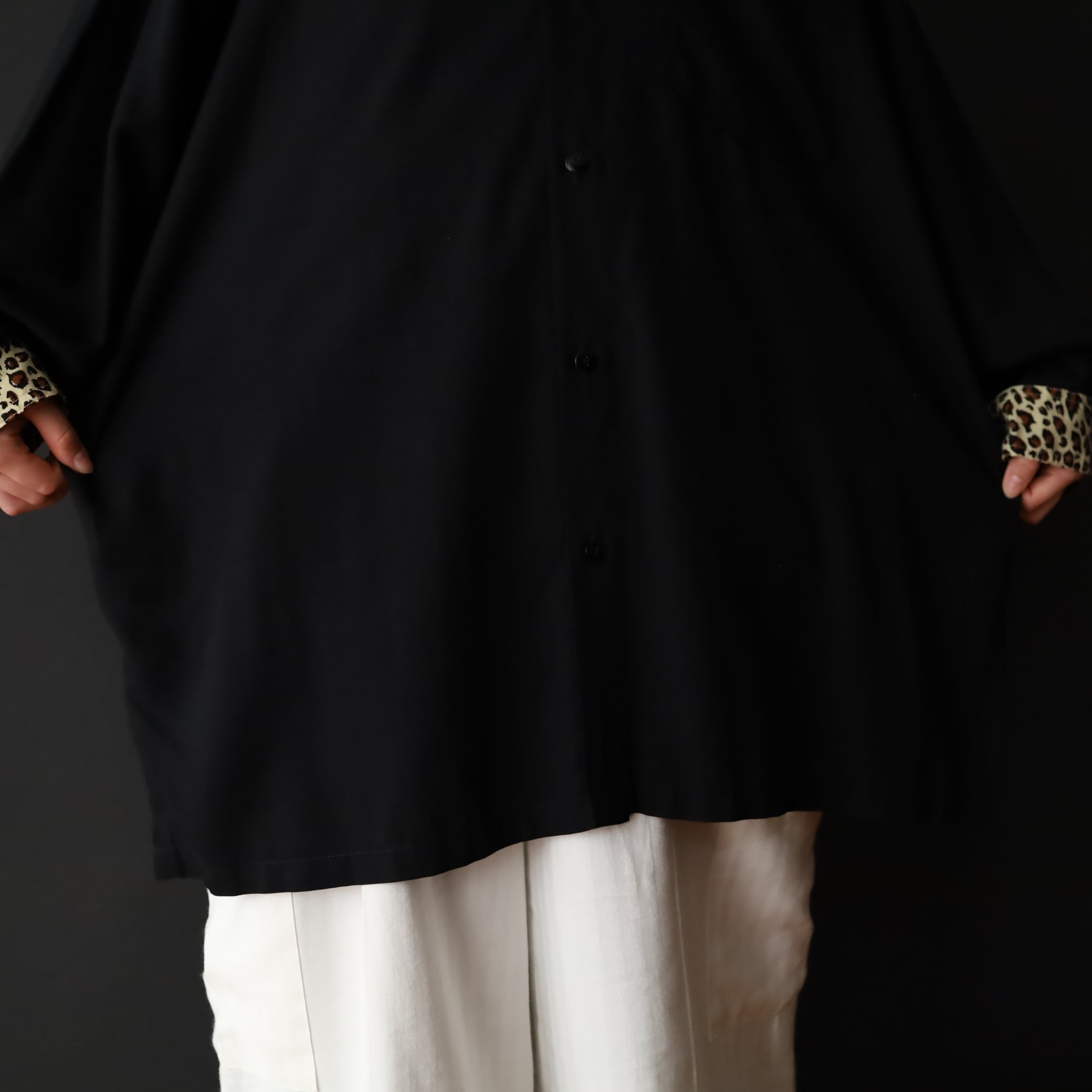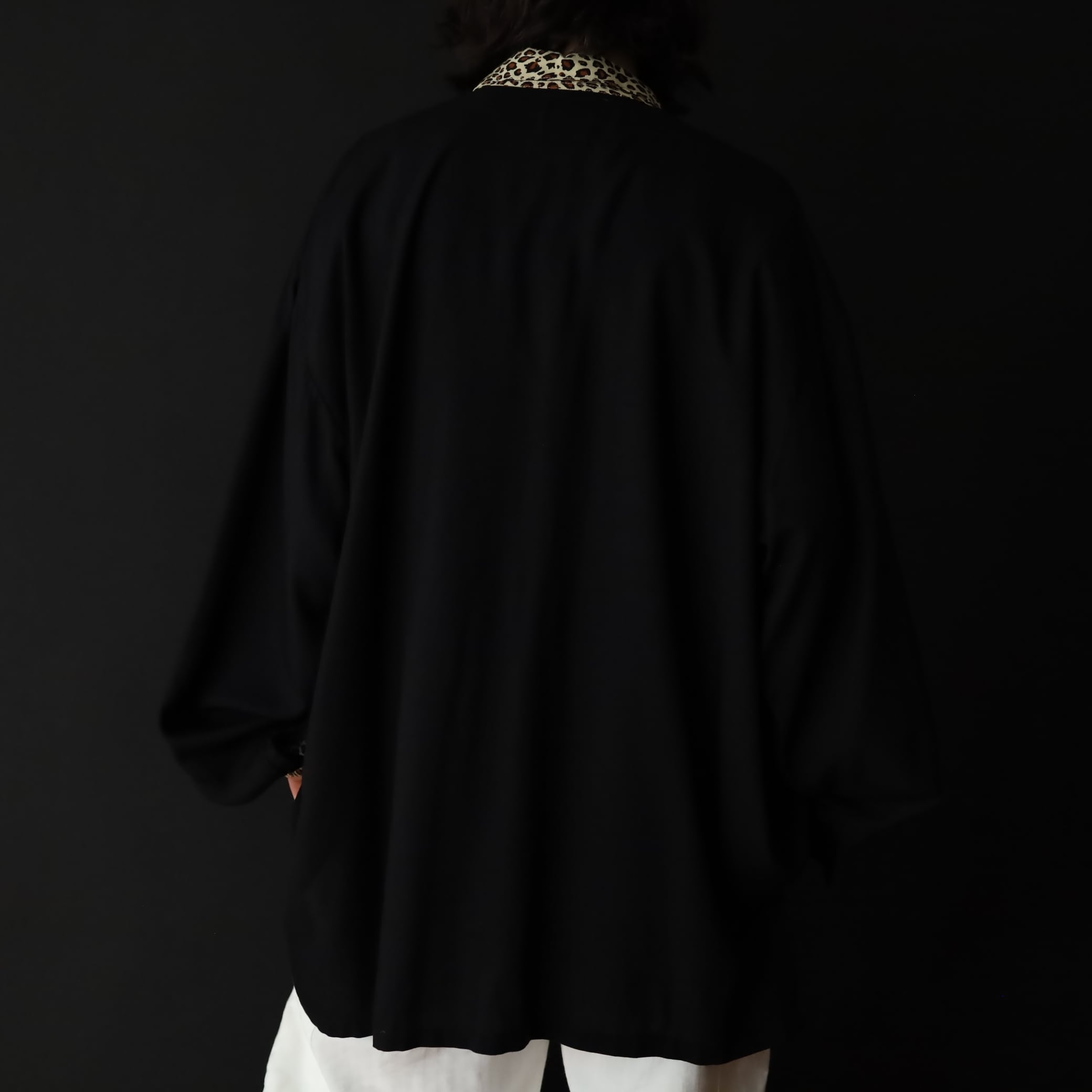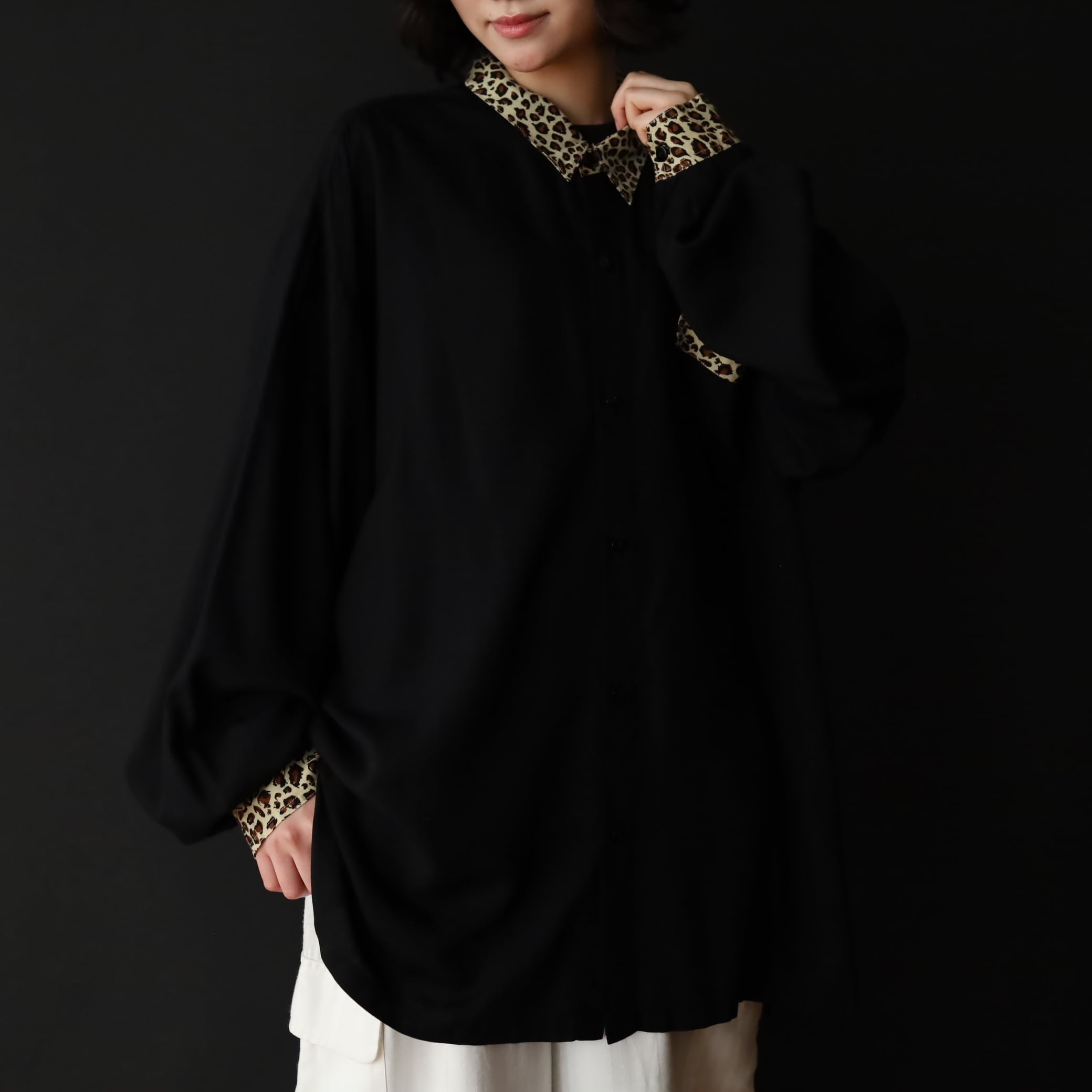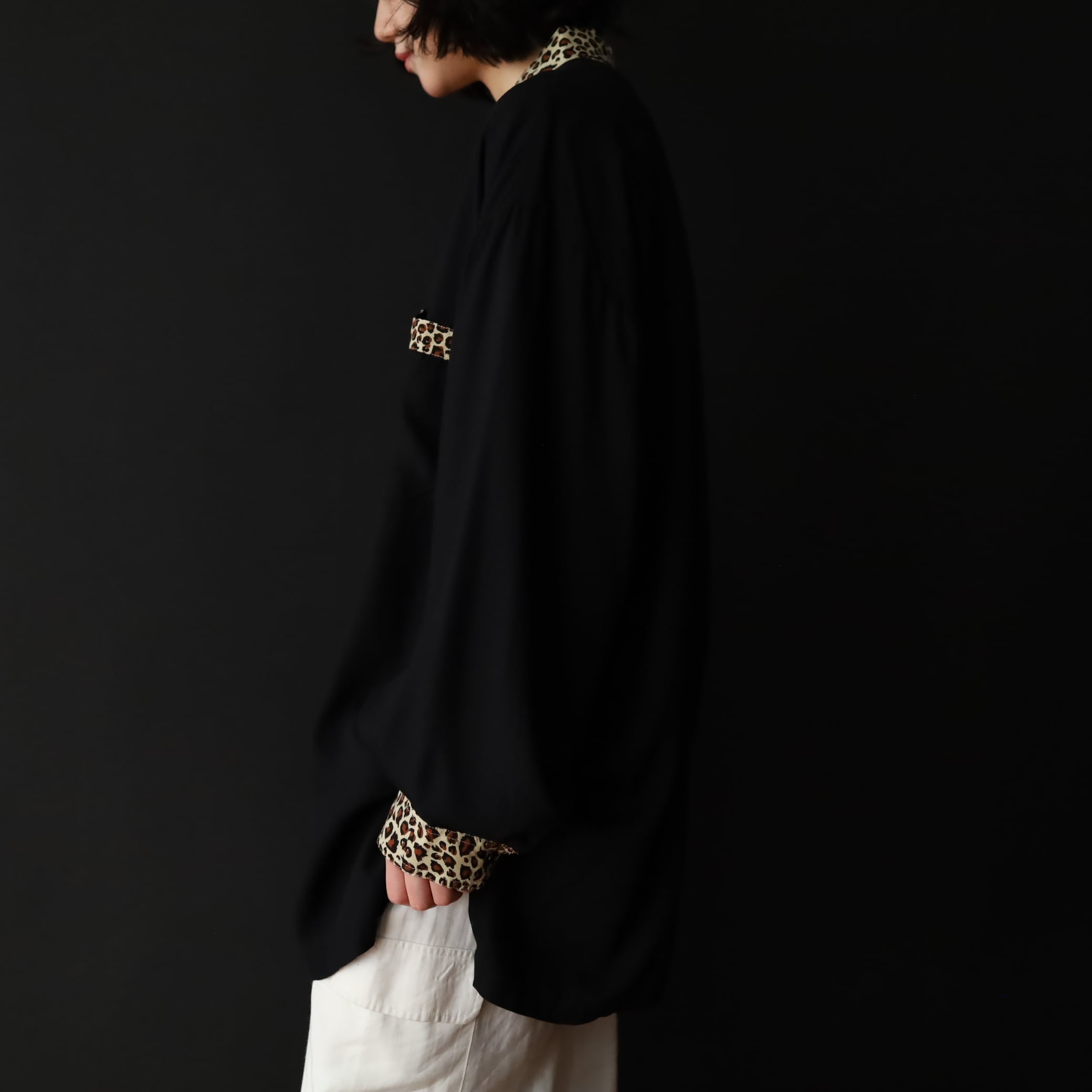 袖先カフス部分,襟,胸ポケットがレオパード柄切替.