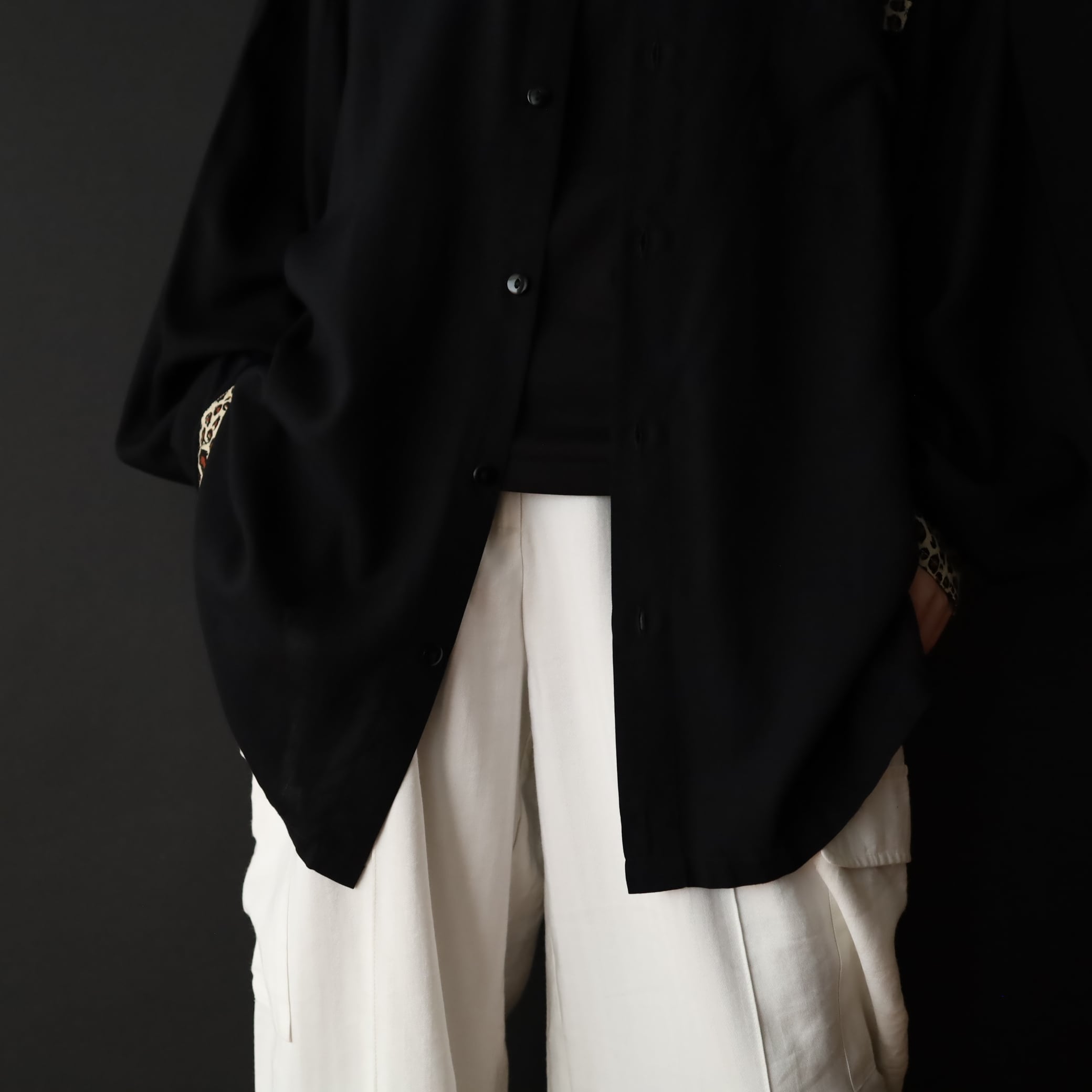 アニマルパターン切替レーヨンシャツ.