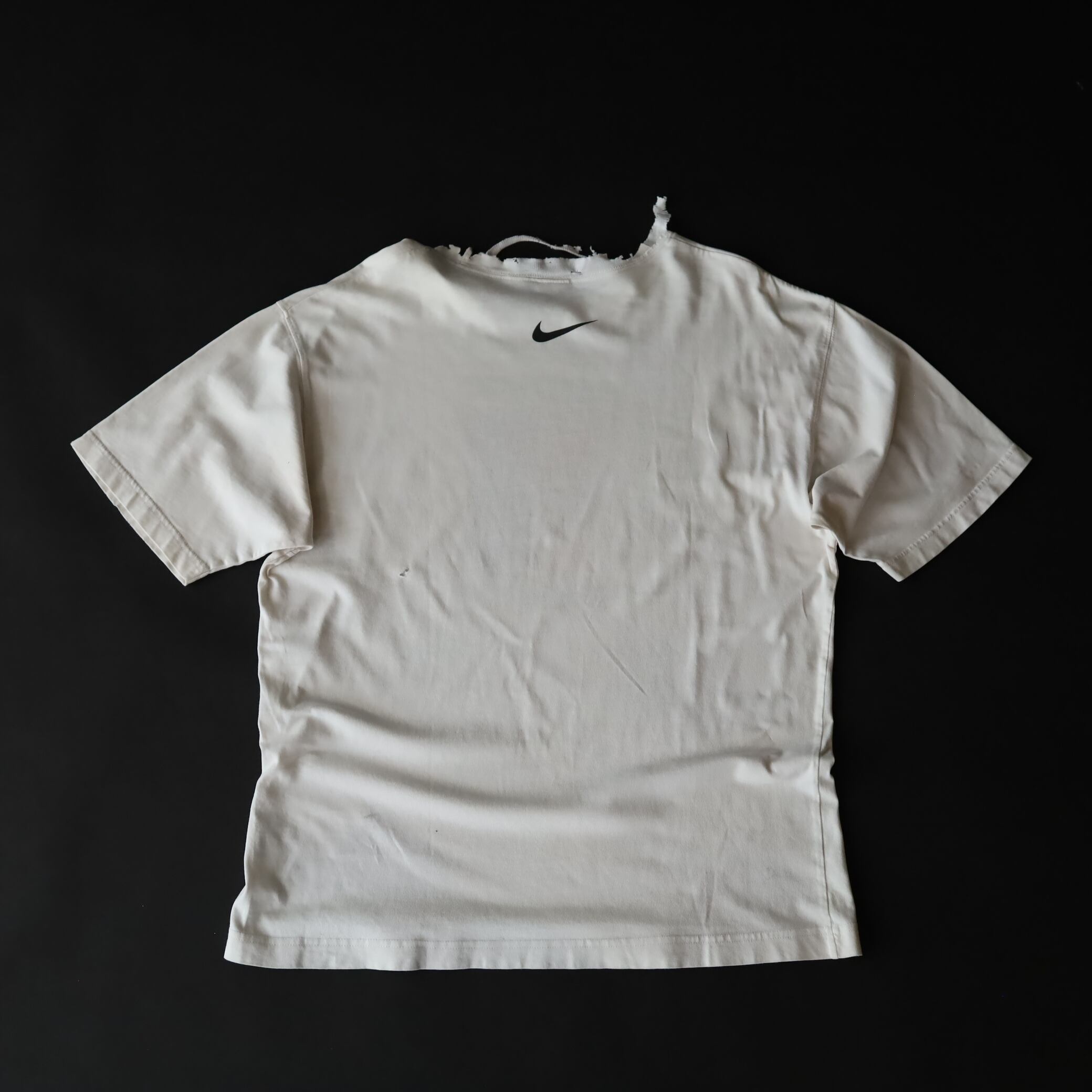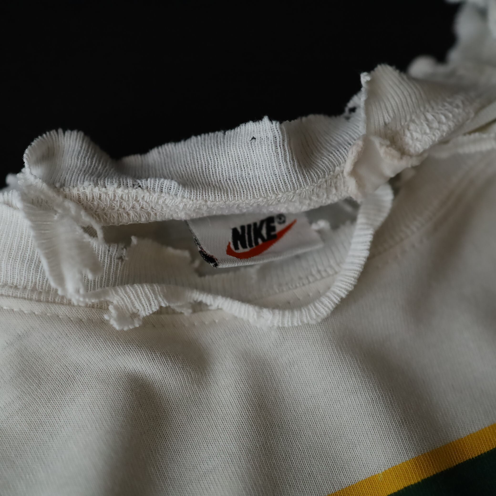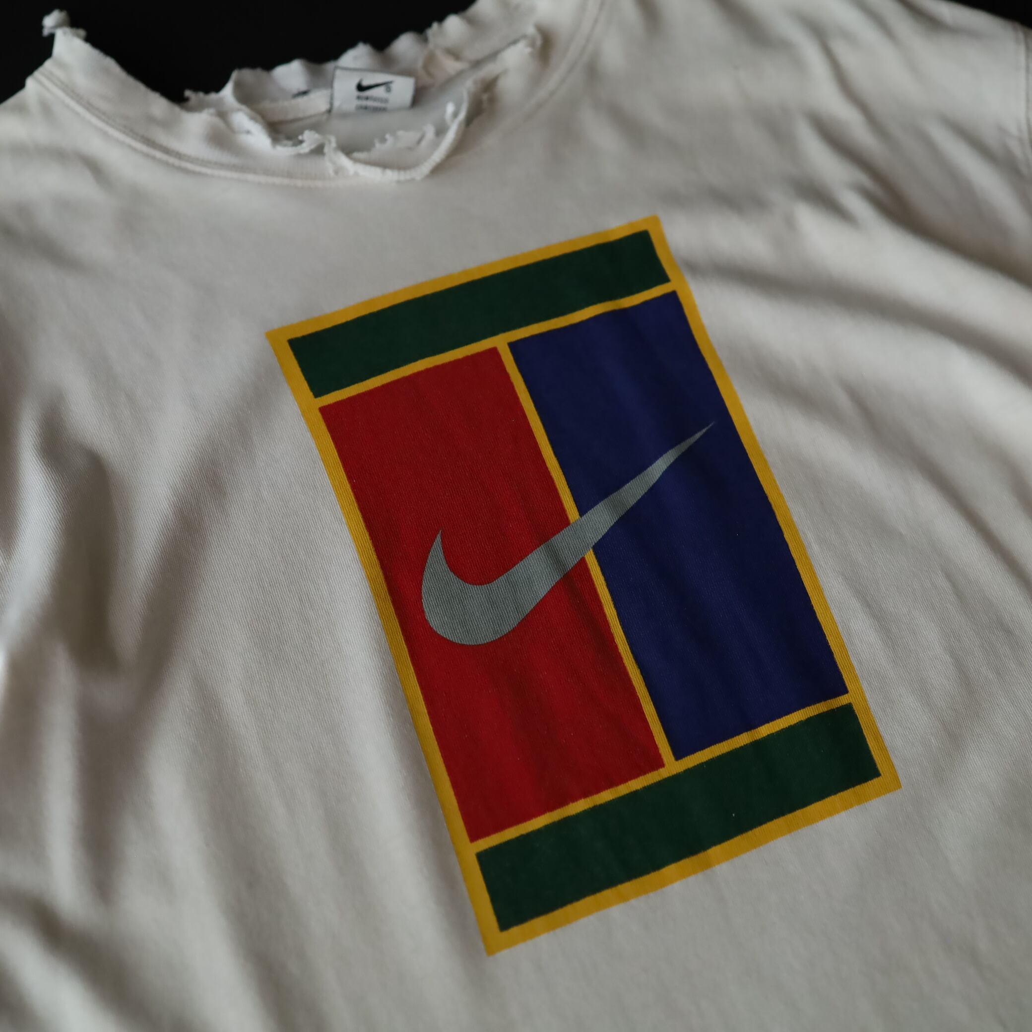 ホワイトカラーのコットンボディをベースに,フロントに色の切替のスクエアとスウッシュロゴ.