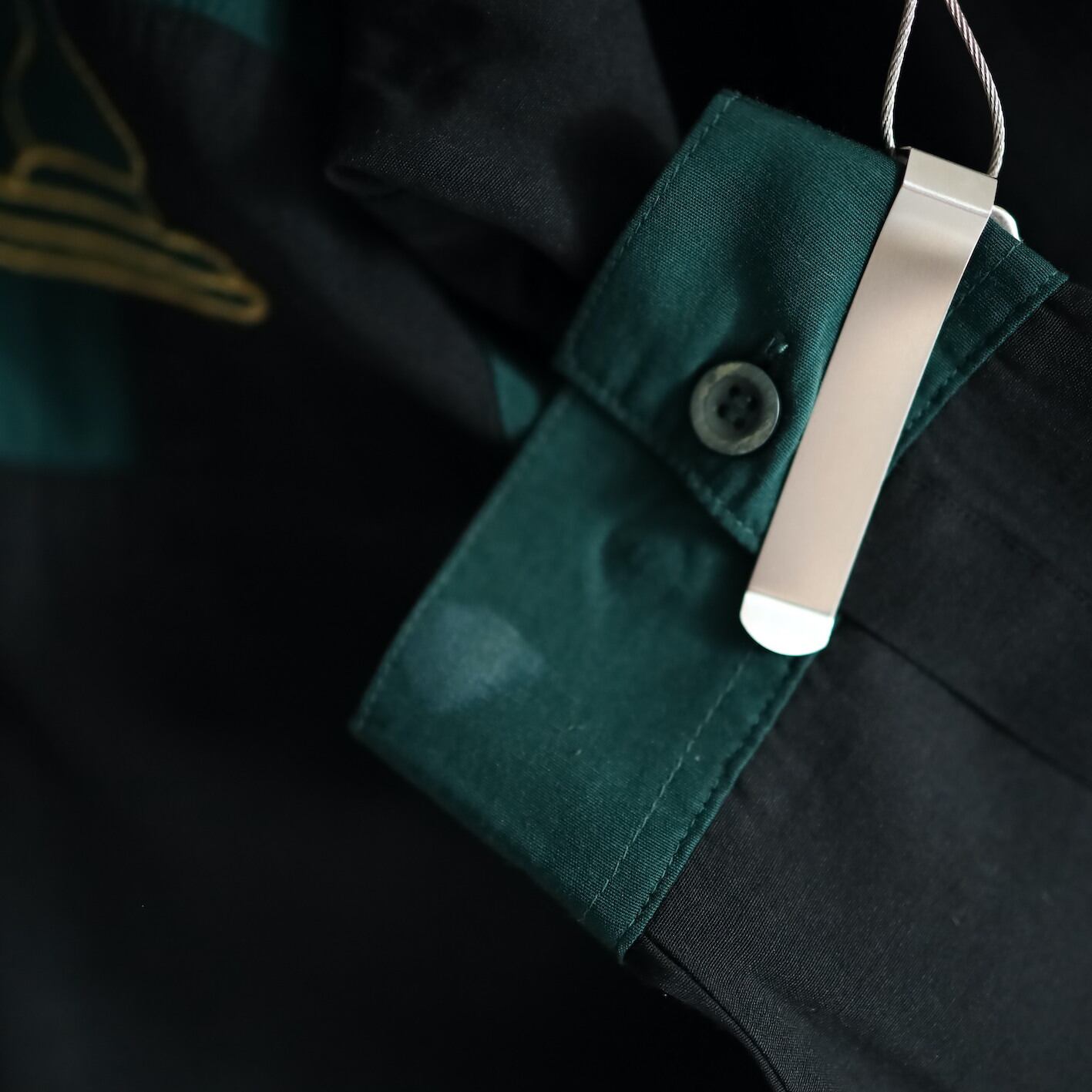 襟,カフスもグリーン切替なのも嬉しいポイント.