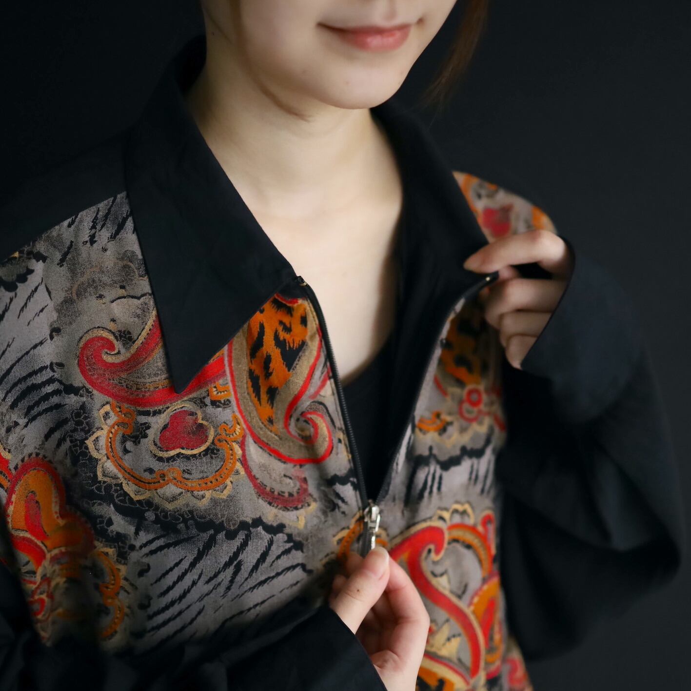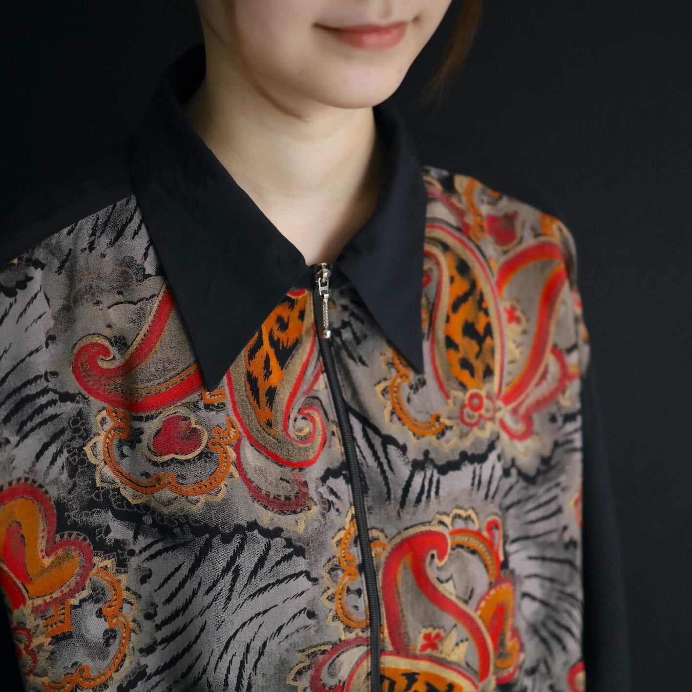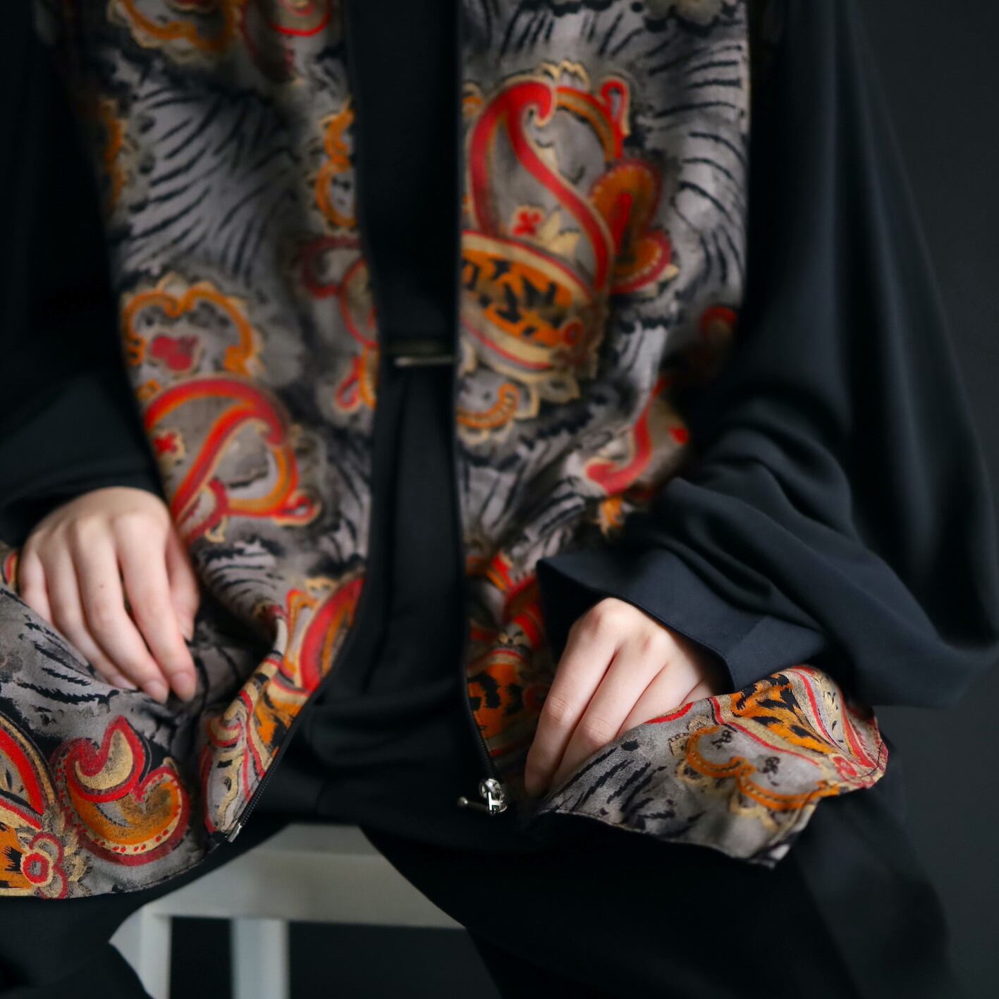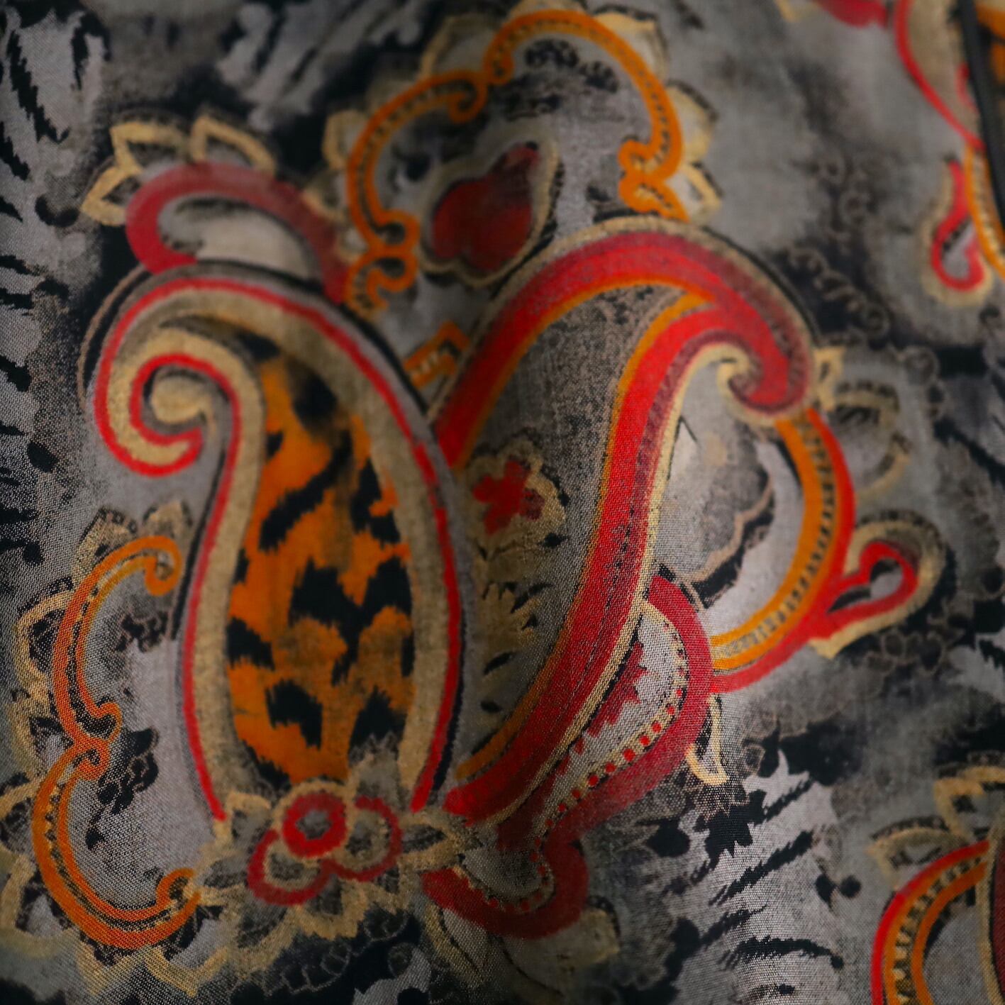 ペイズリーがグレーとレッド,オレンジなど,暖色で表現された独特な表情の一枚.