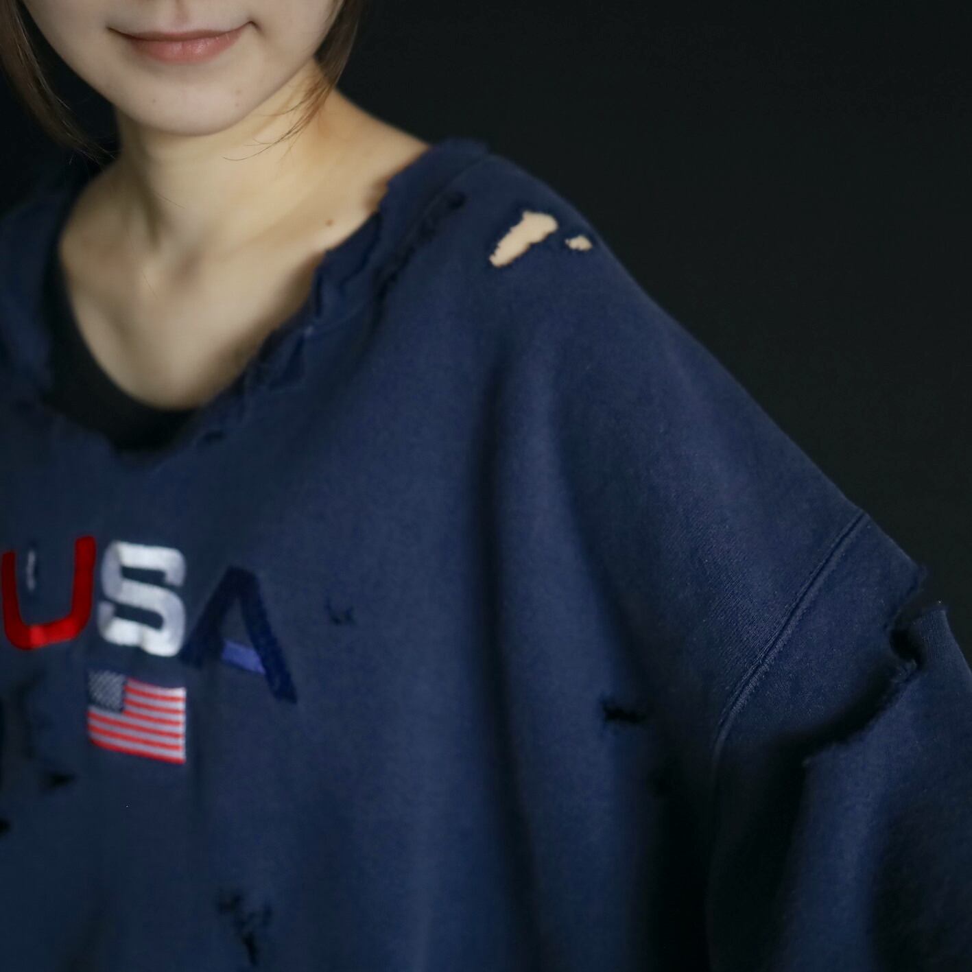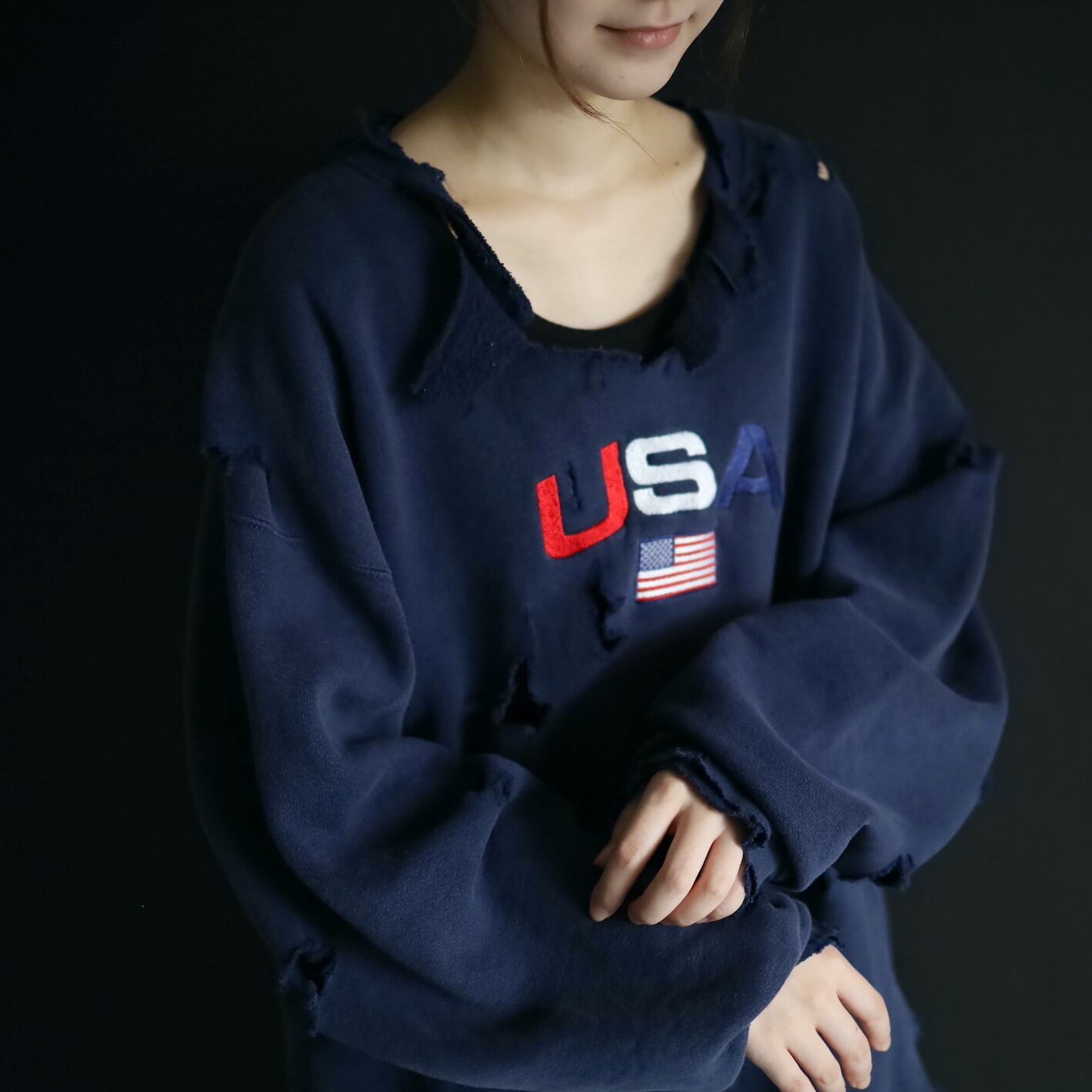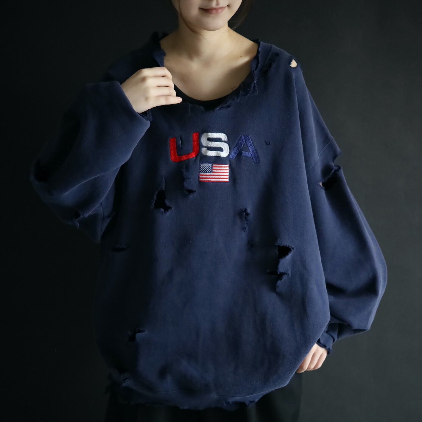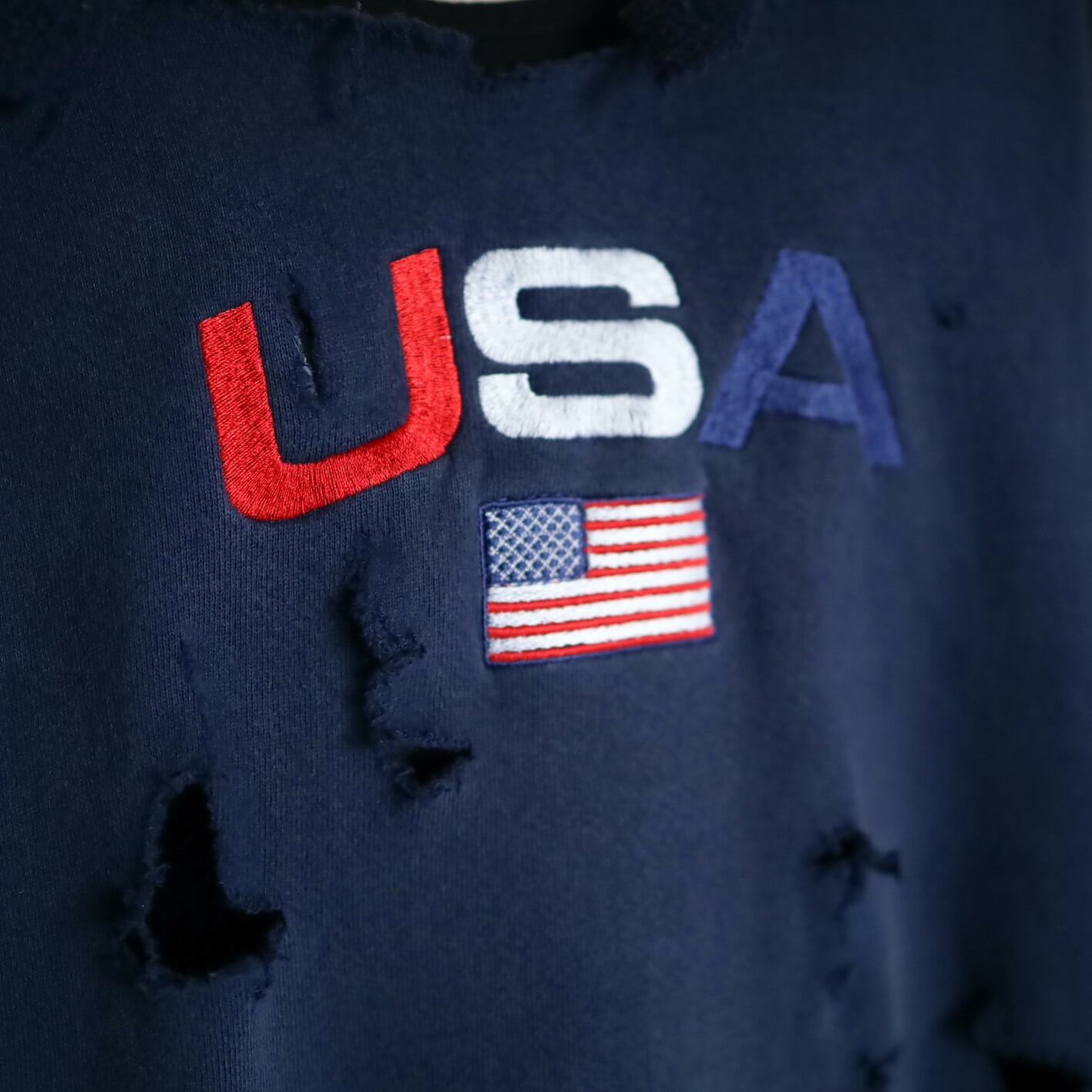 中央にUSAの刺繍と星条旗の刺繍.
