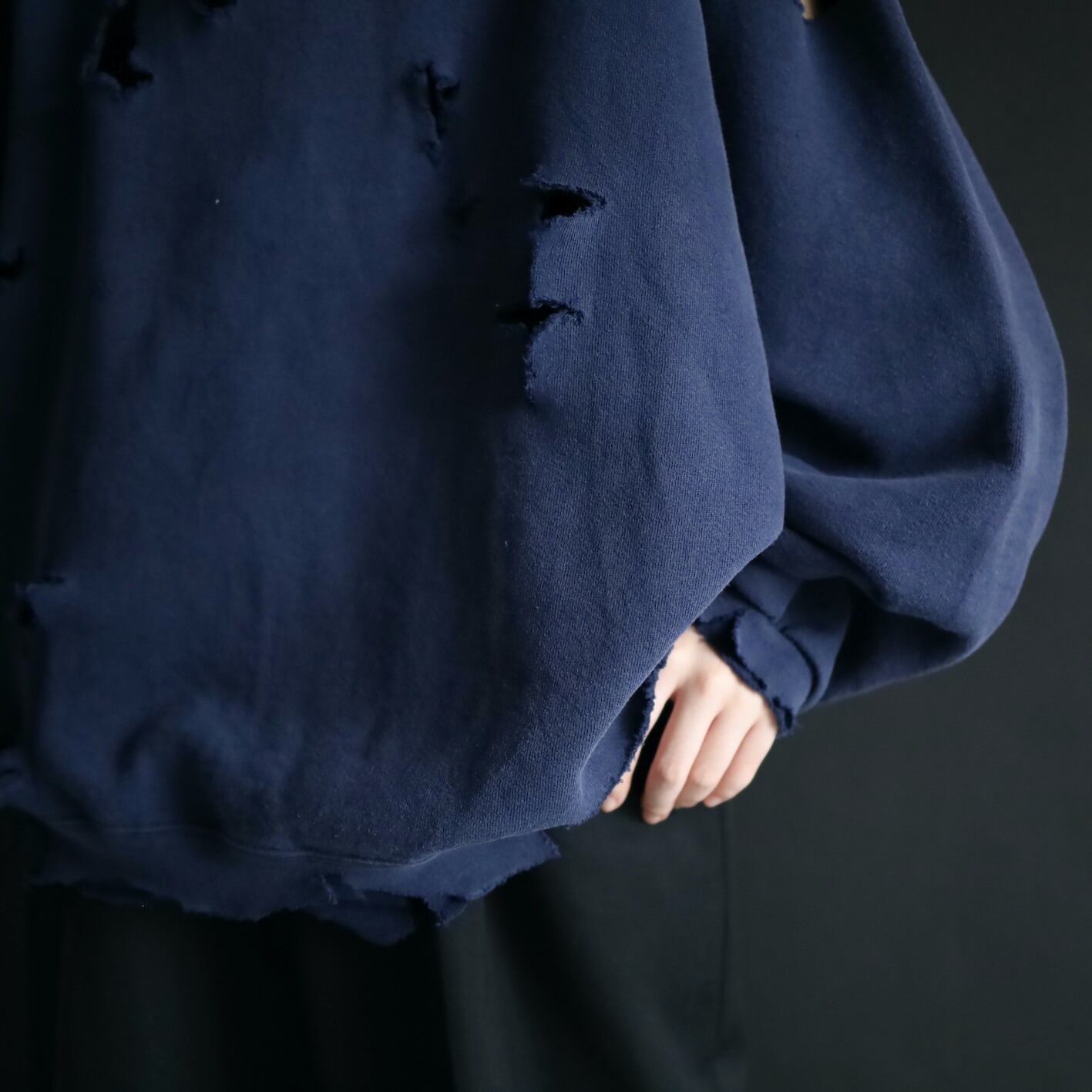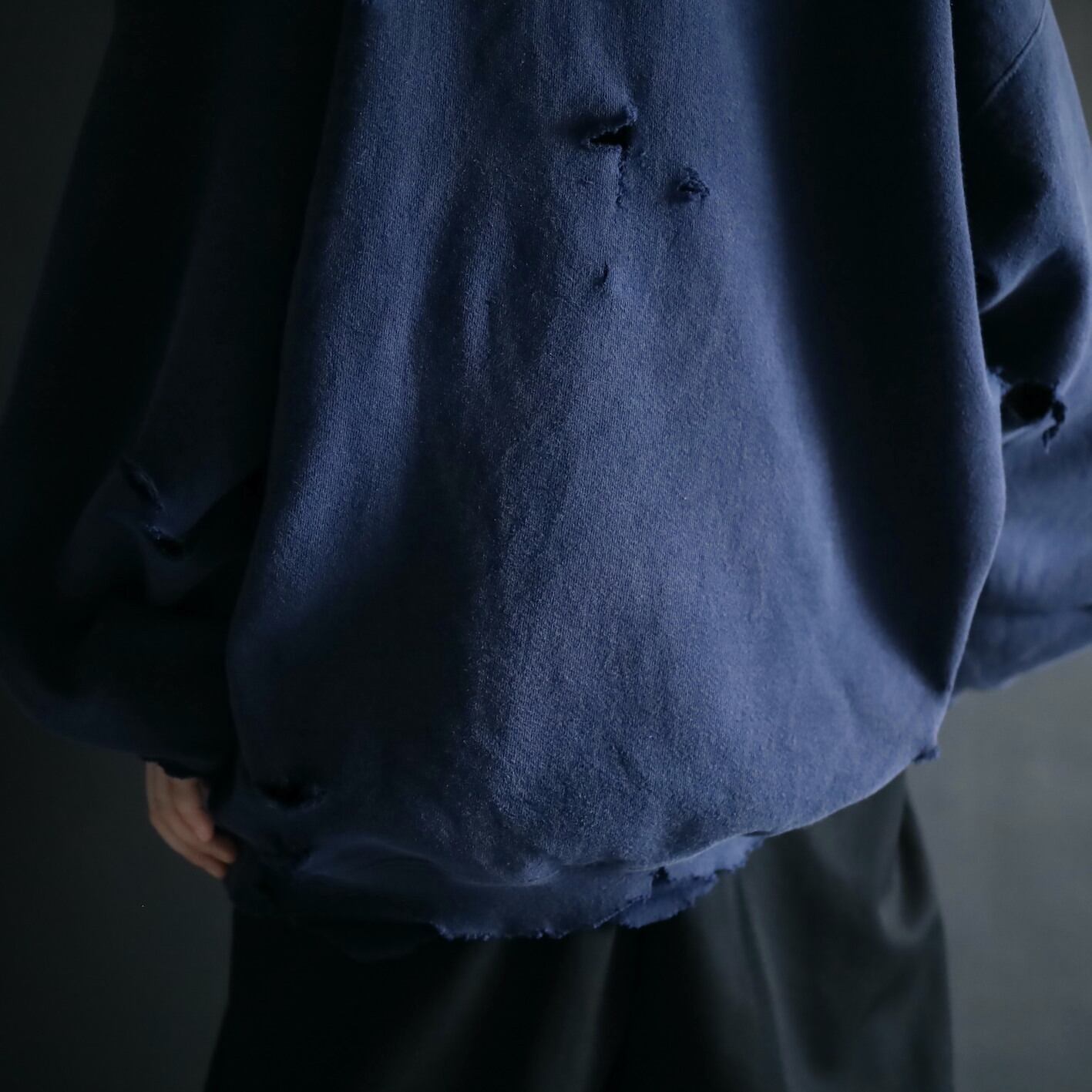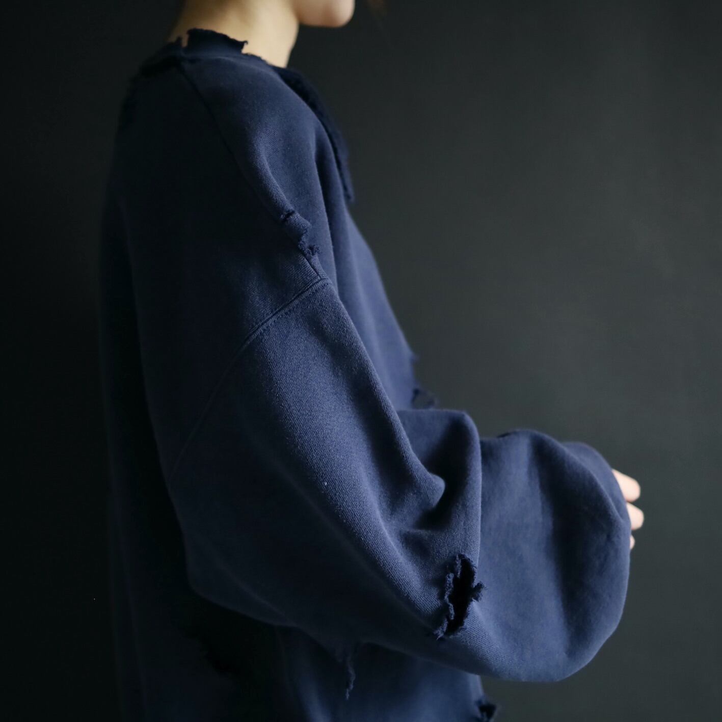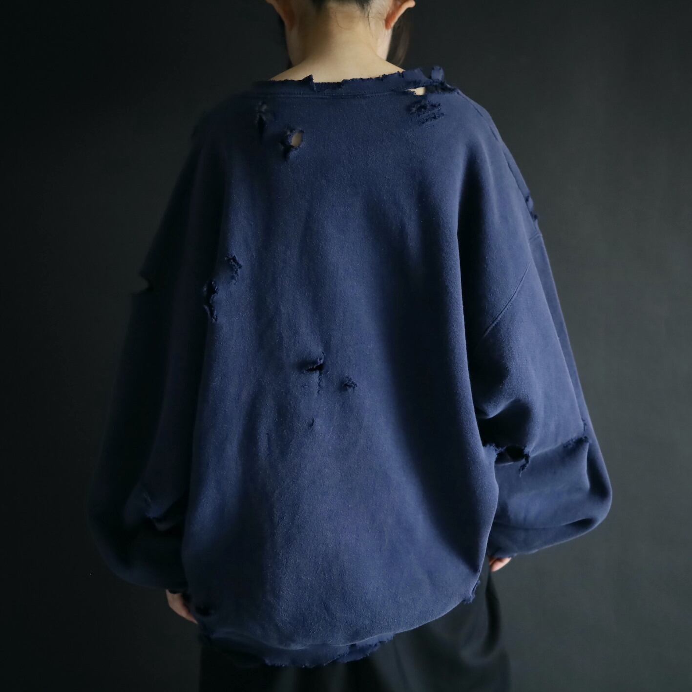 クラッシュ加工デザインのスウェットプルオーバー.