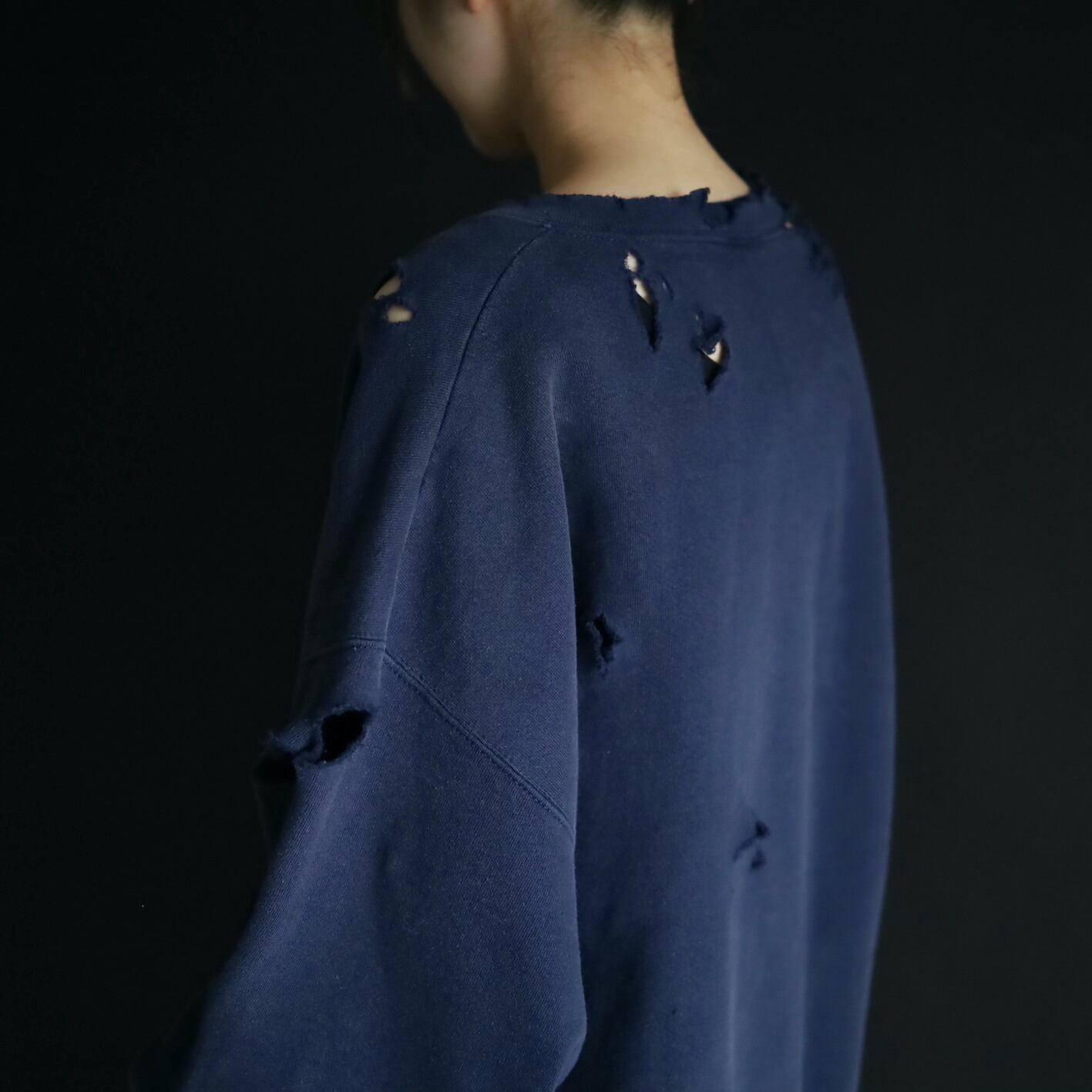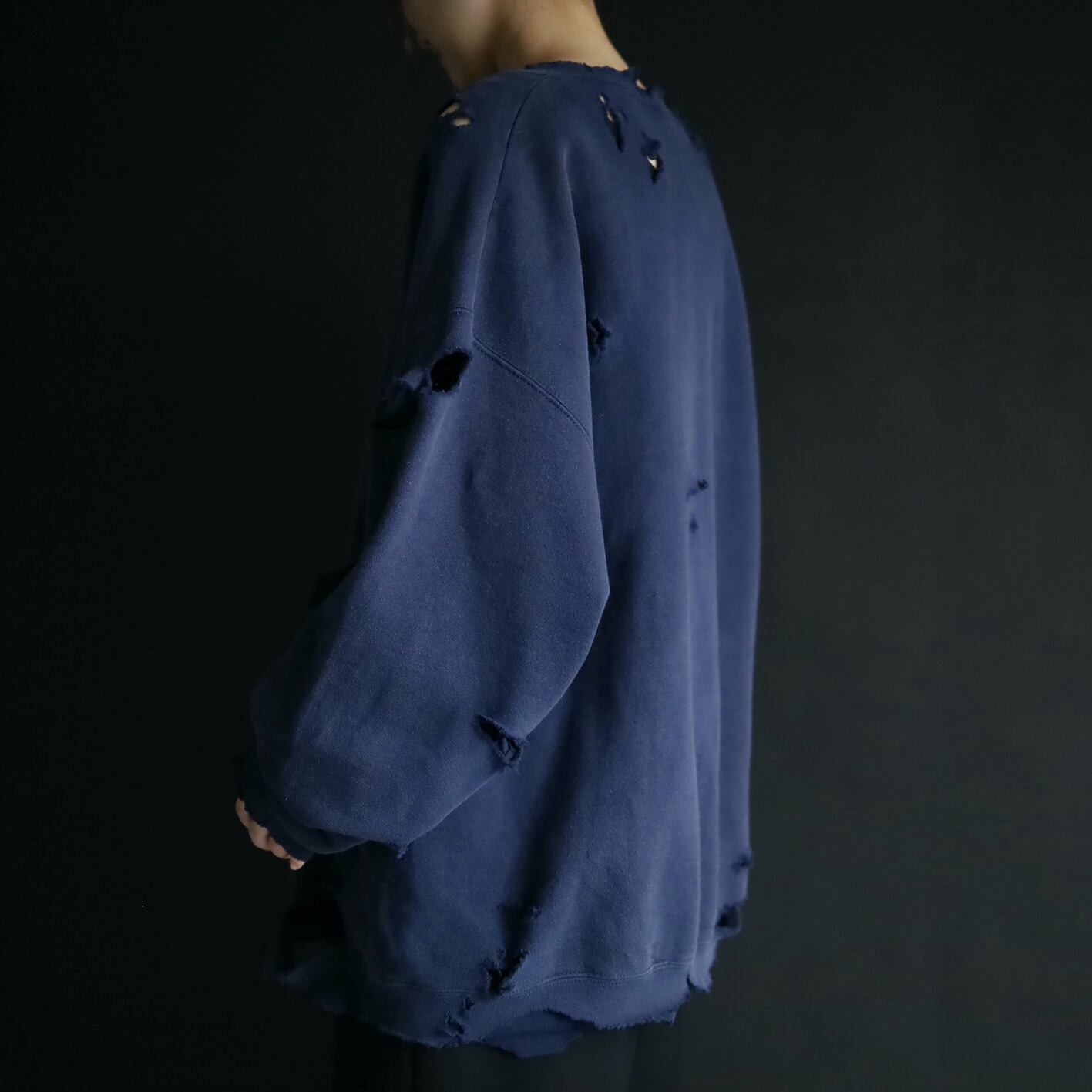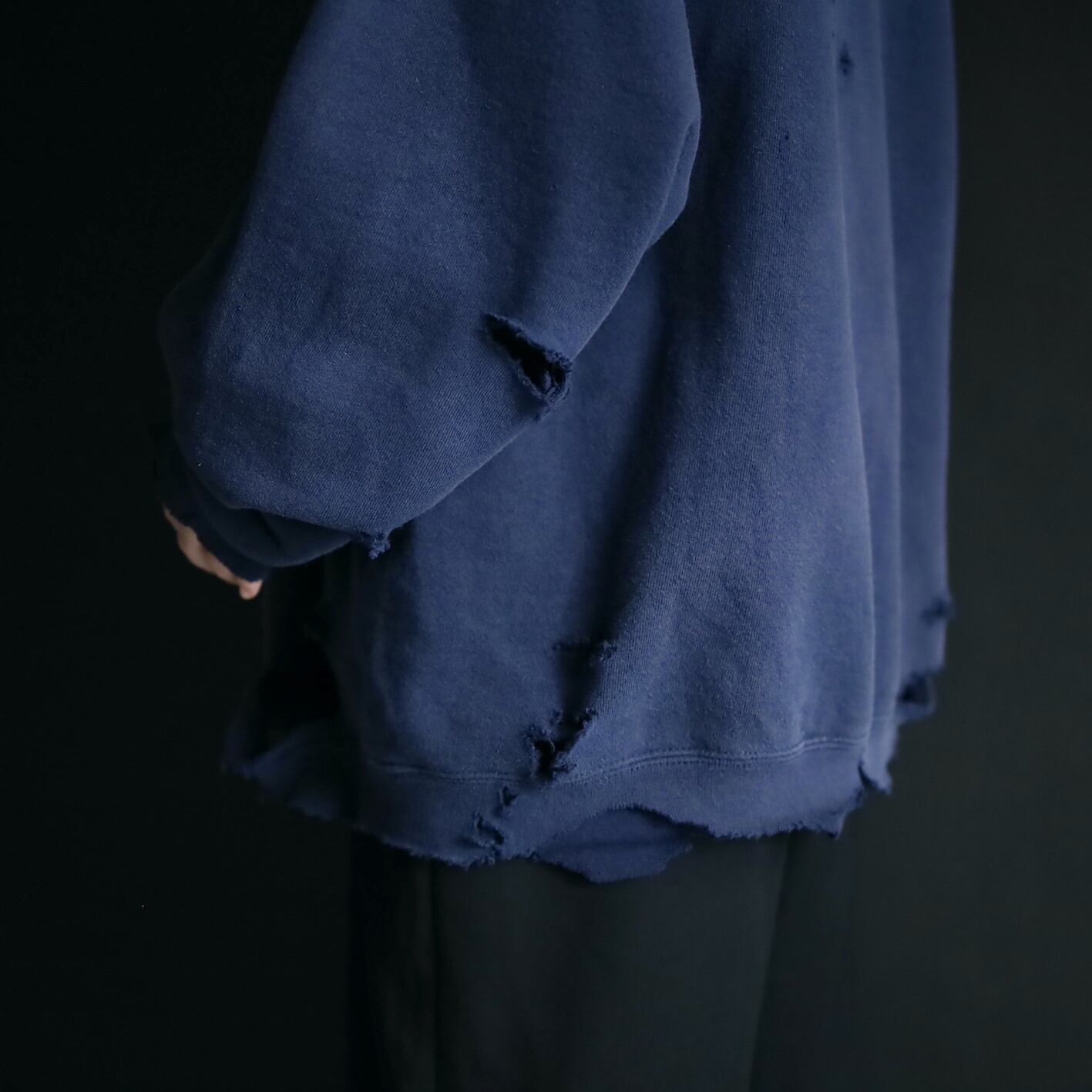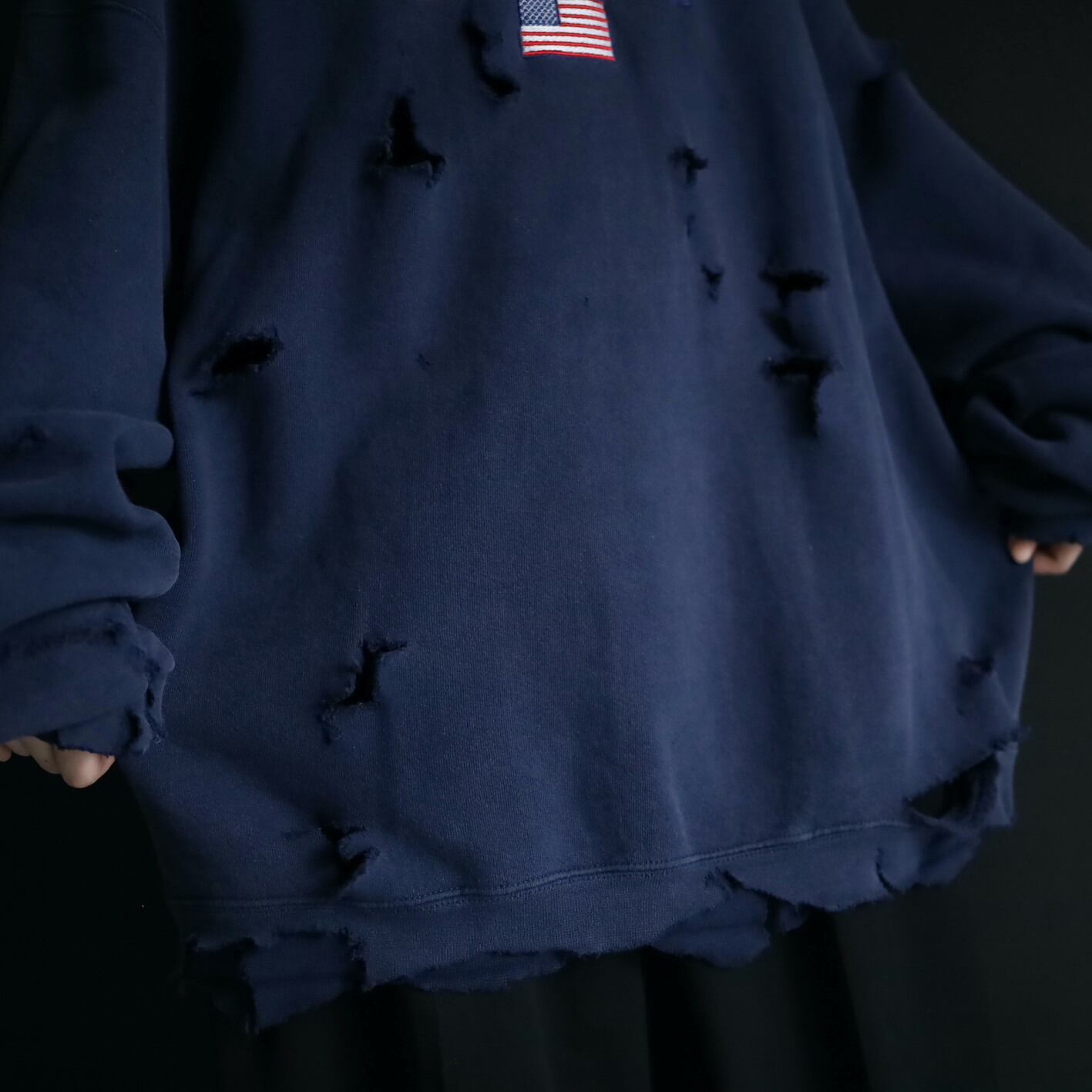 クラッシュ加工デザインのスウェットプルオーバー.