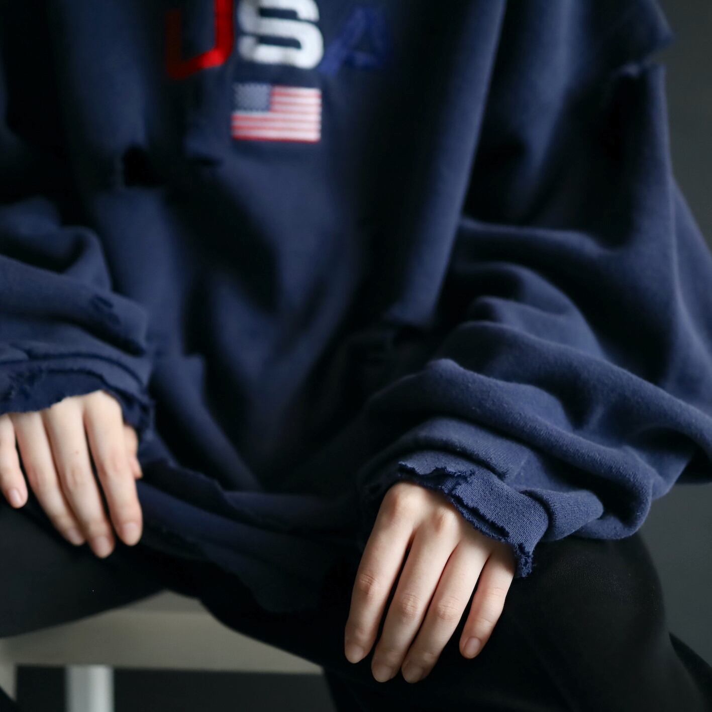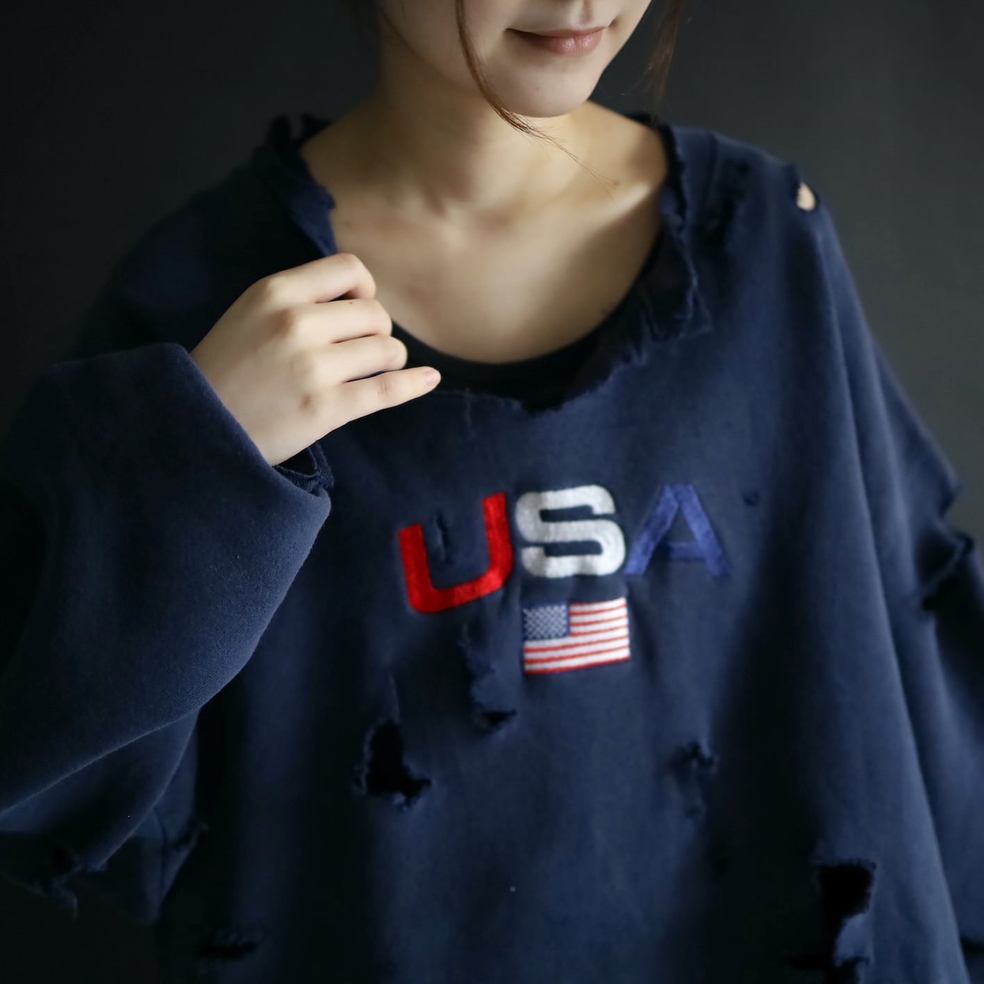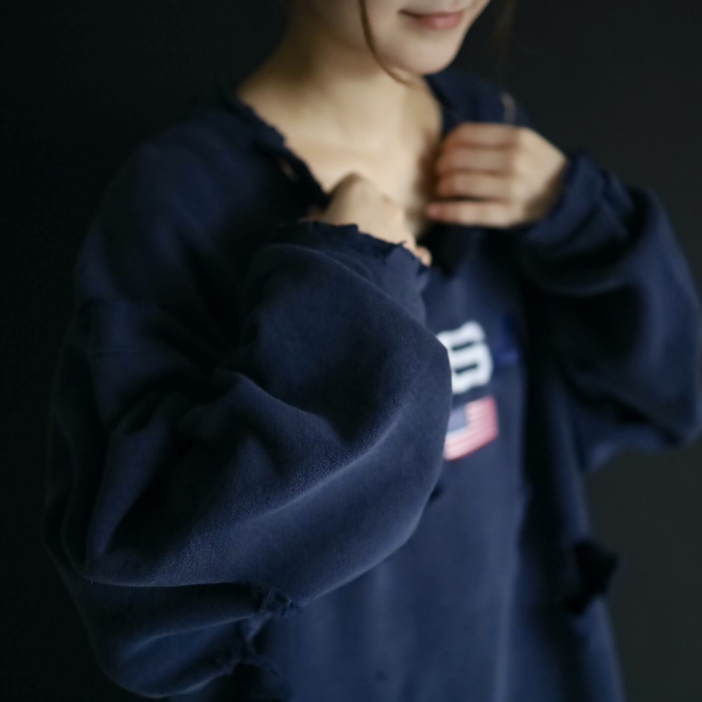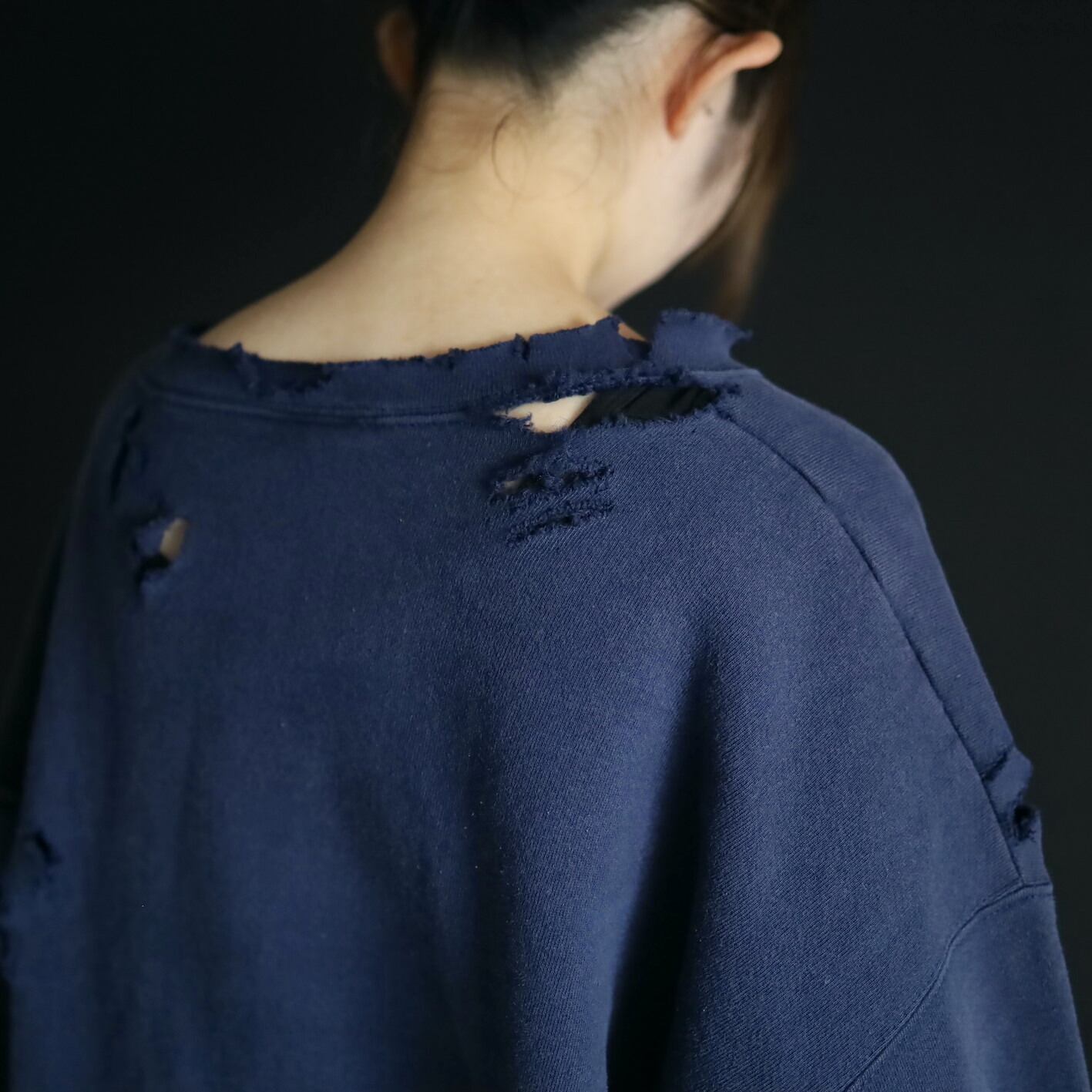 クラッシュ加工デザインのスウェットプルオーバー.