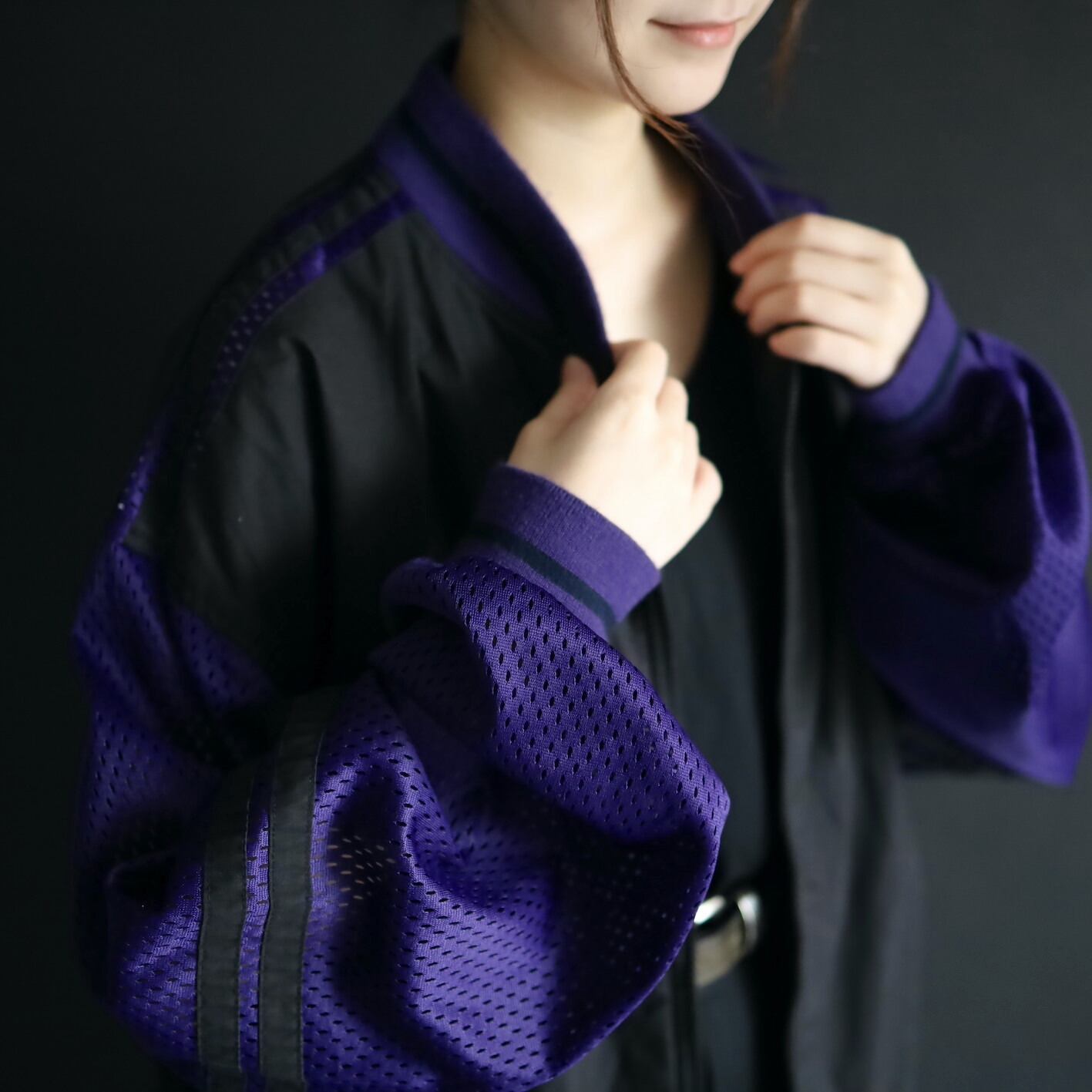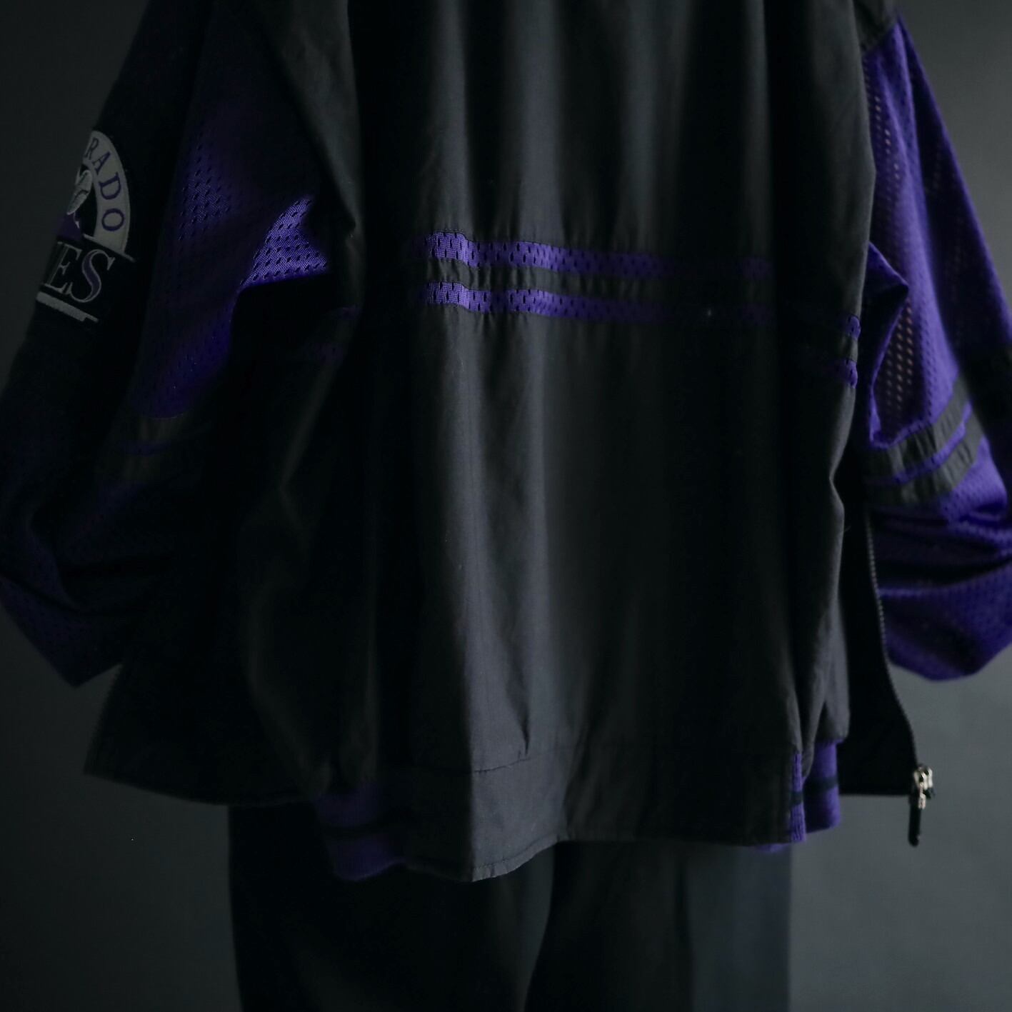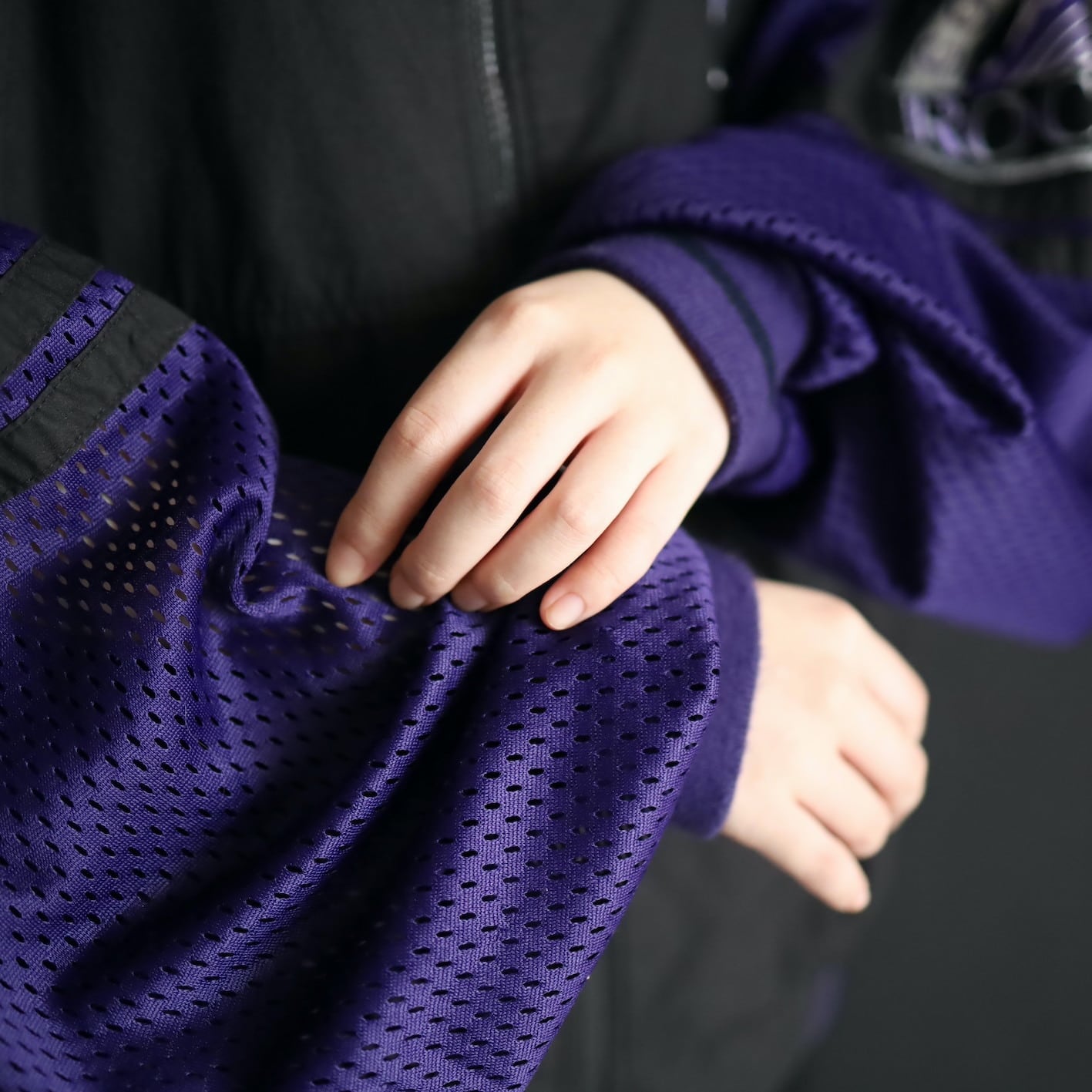 アームとボディのパープル部分はメッシュ生地という,ブルゾンにはなかなか見られないデザイン.