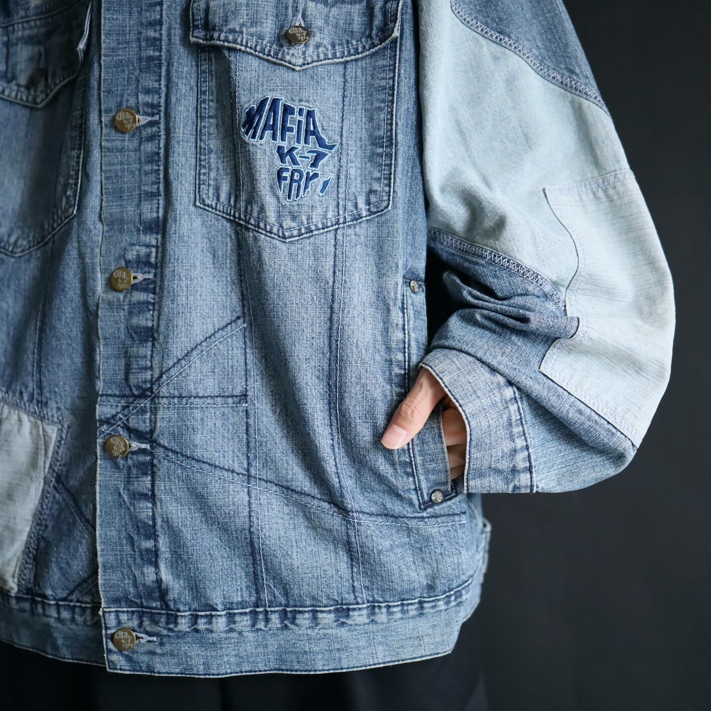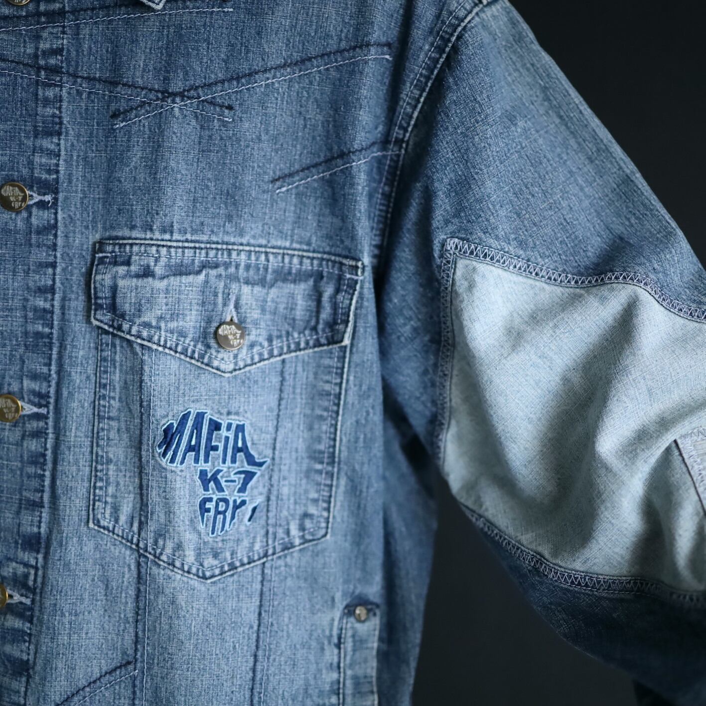 いい感じの色落ち具合のアイスウォッシュデニム.