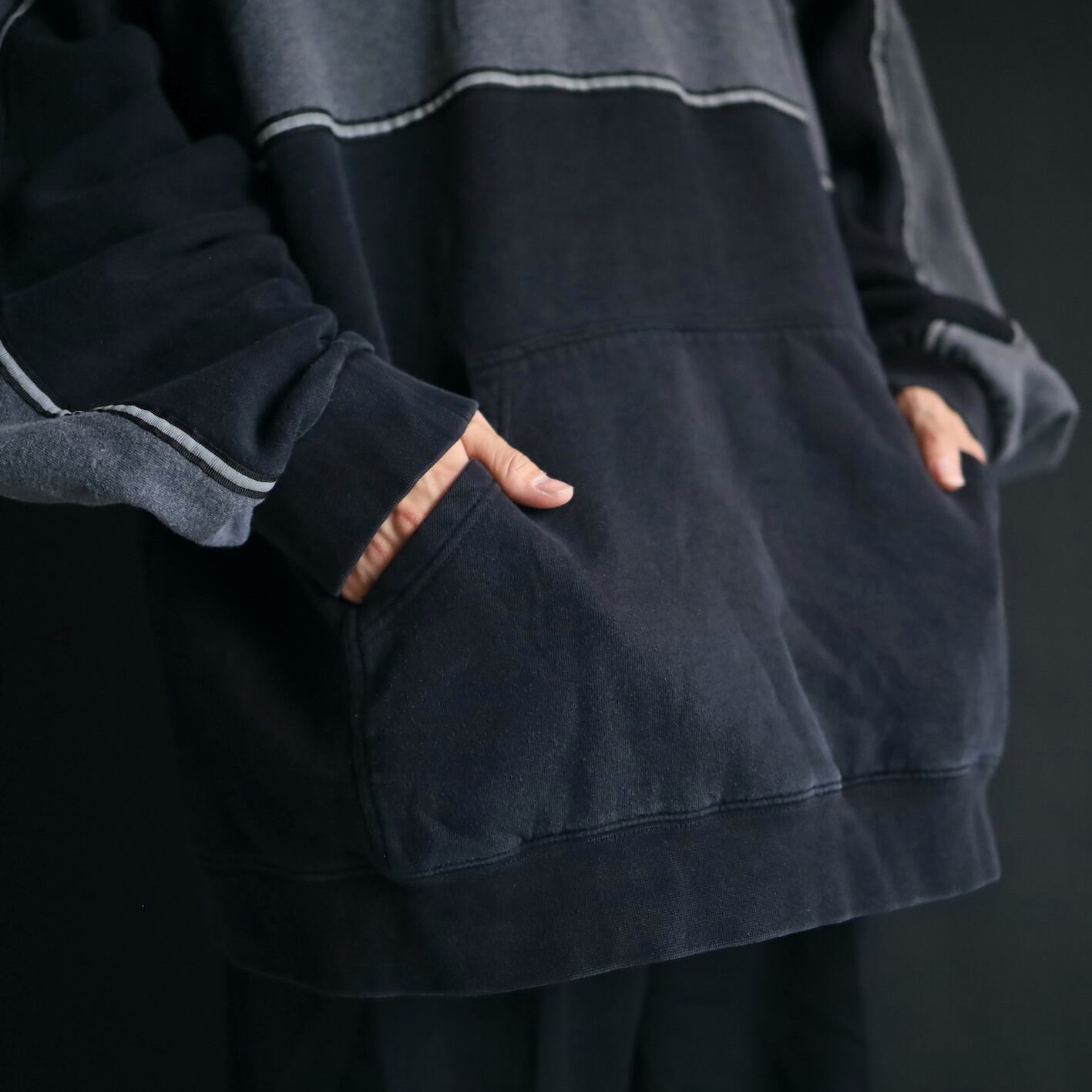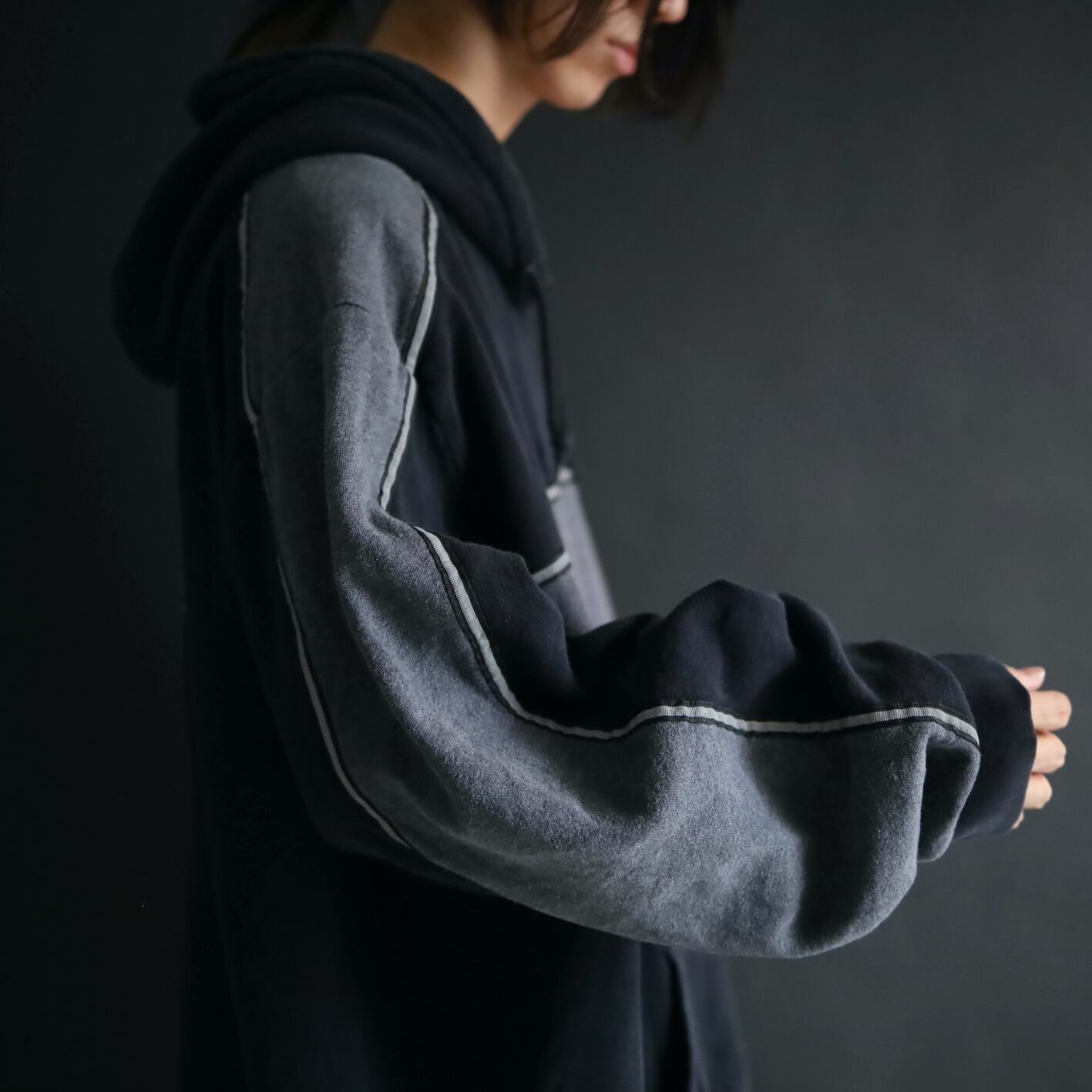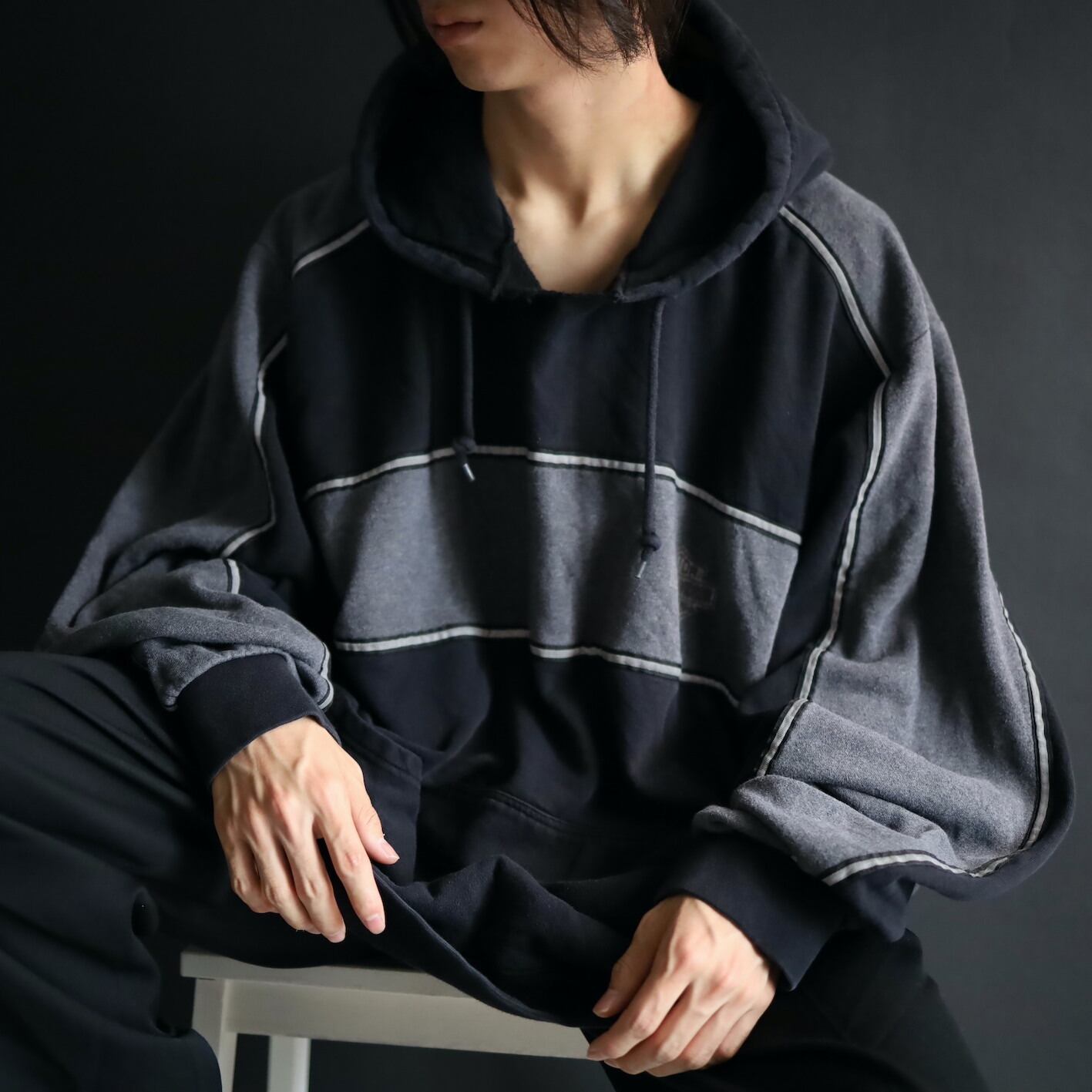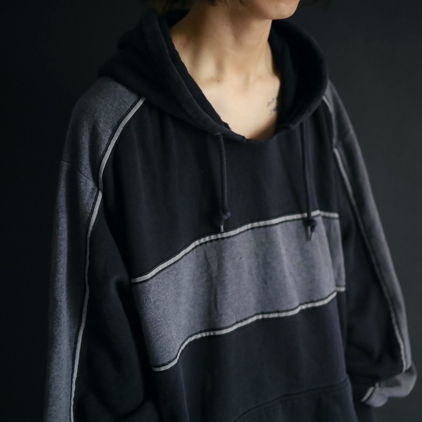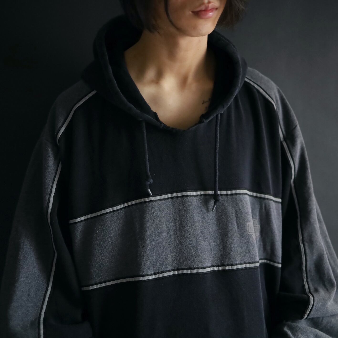 首元,古着のパーカーによく見られる縦裂けがありますが,くたっとしたボディと相まったグランジ感がむしろ◎