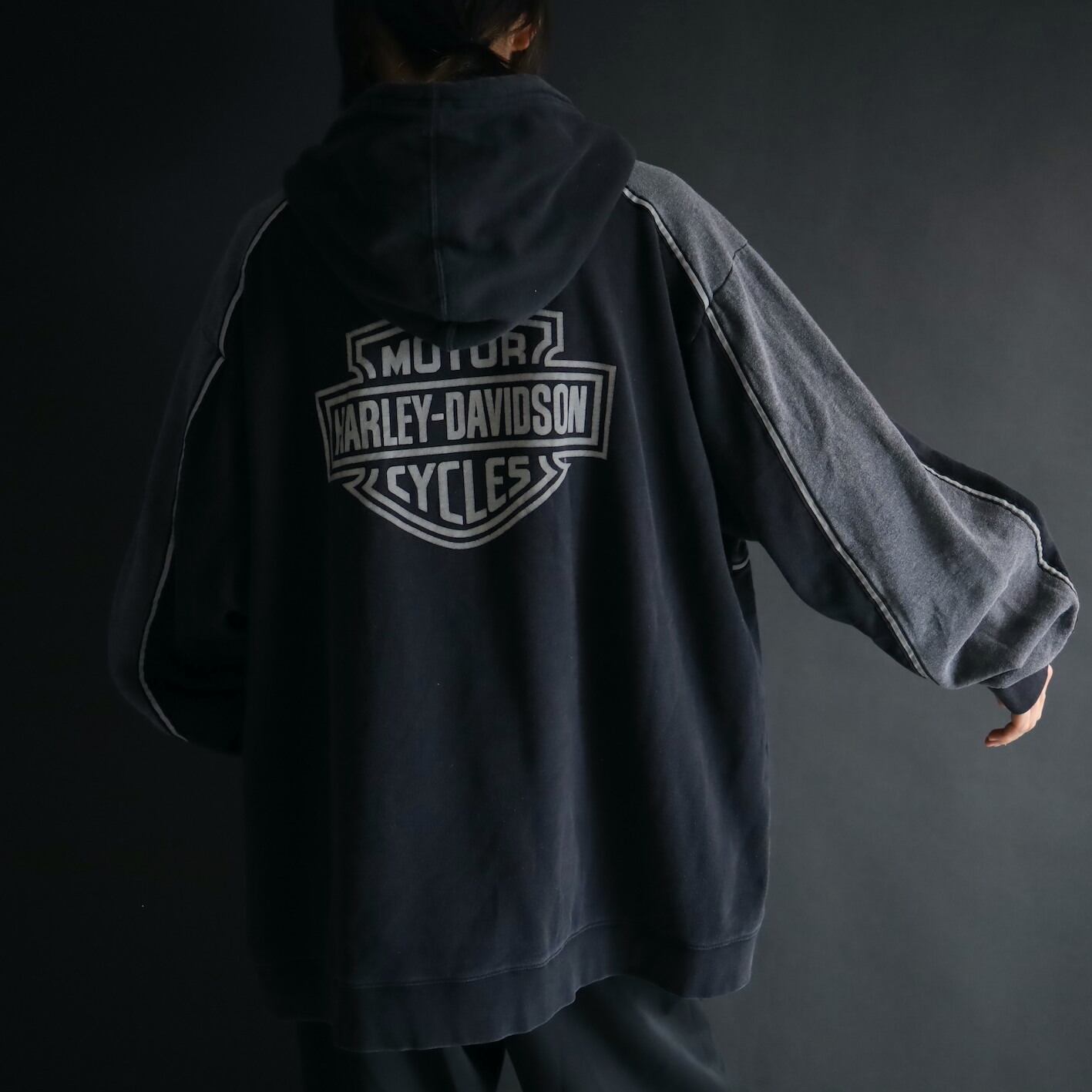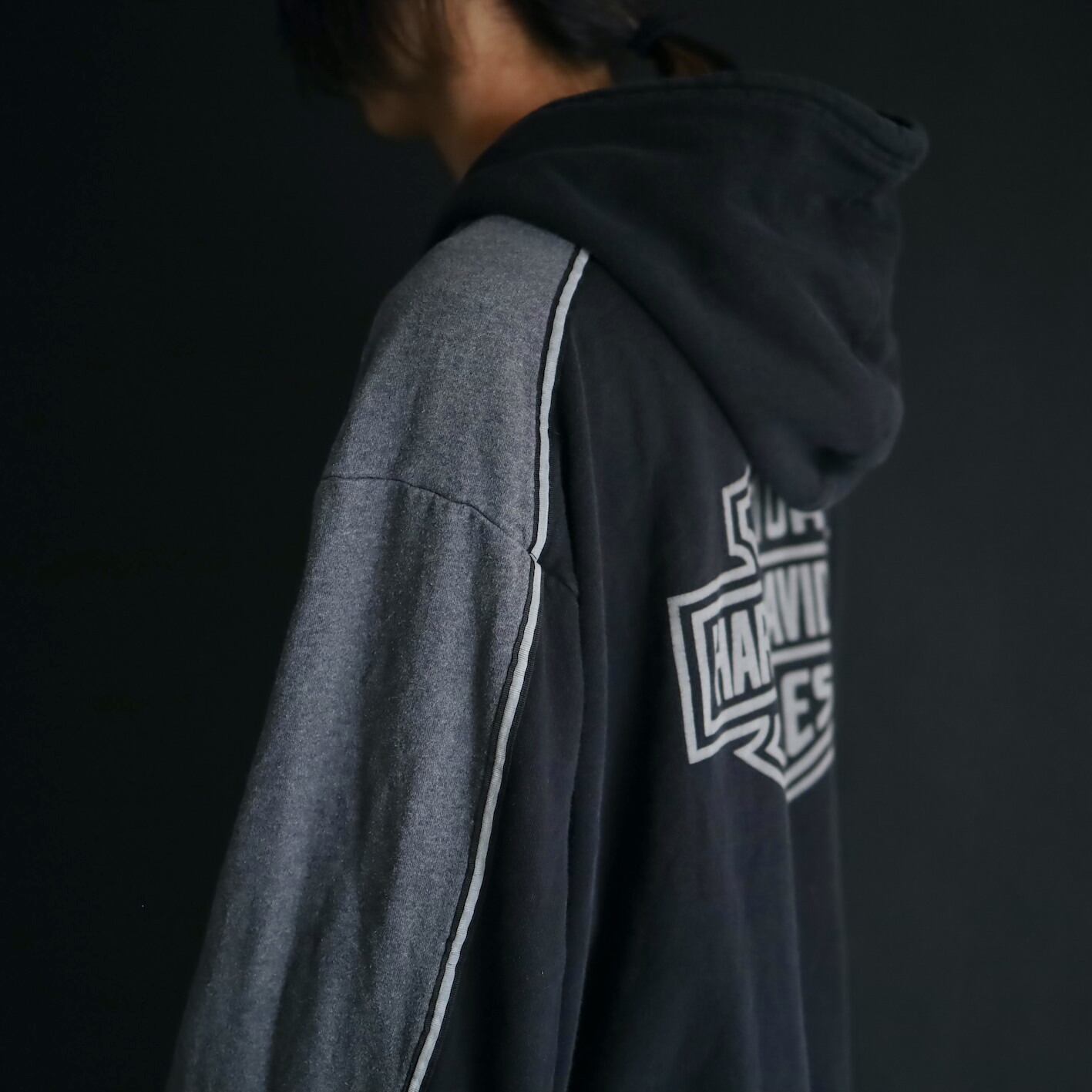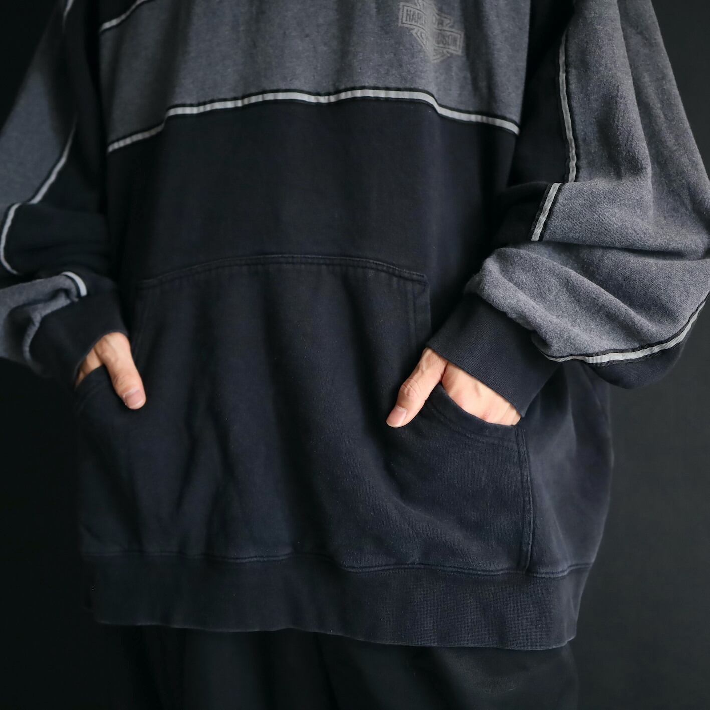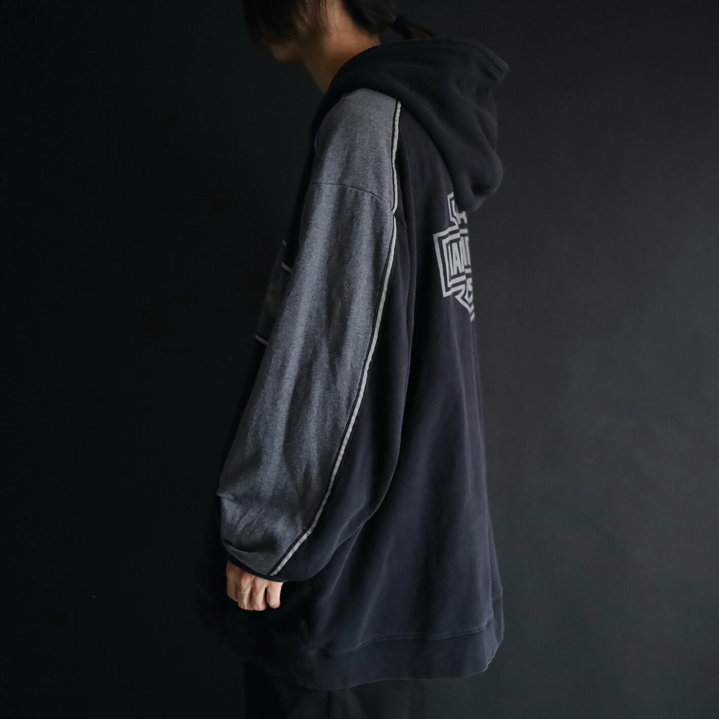 首元,古着のパーカーによく見られる縦裂けがありますが,くたっとしたボディと相まったグランジ感がむしろ◎