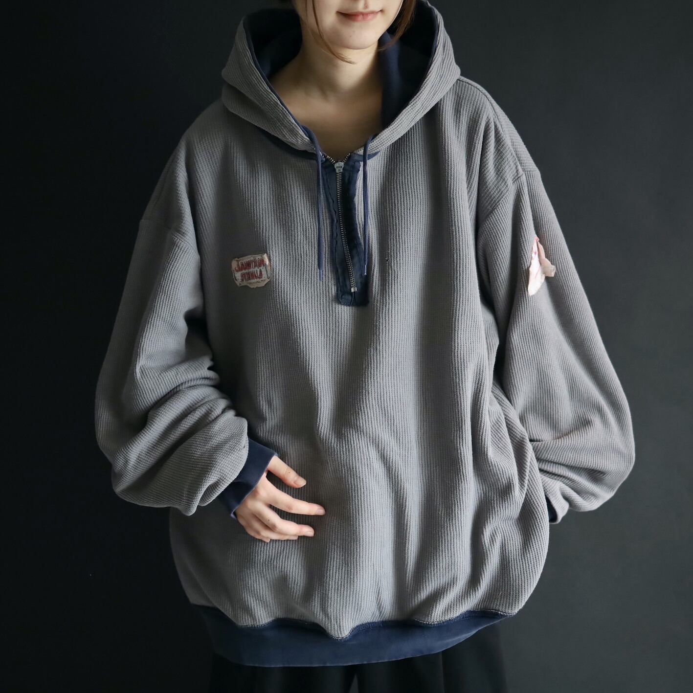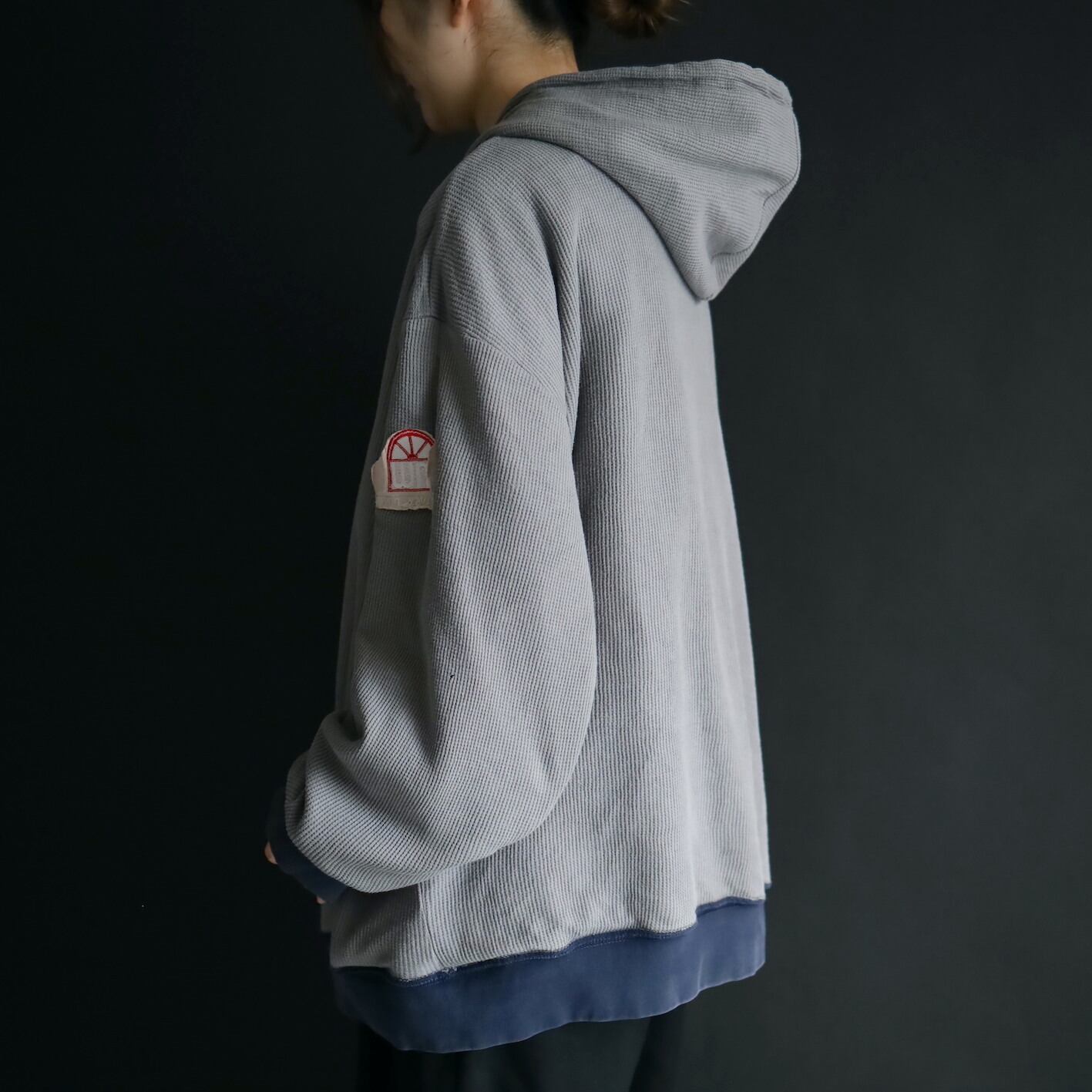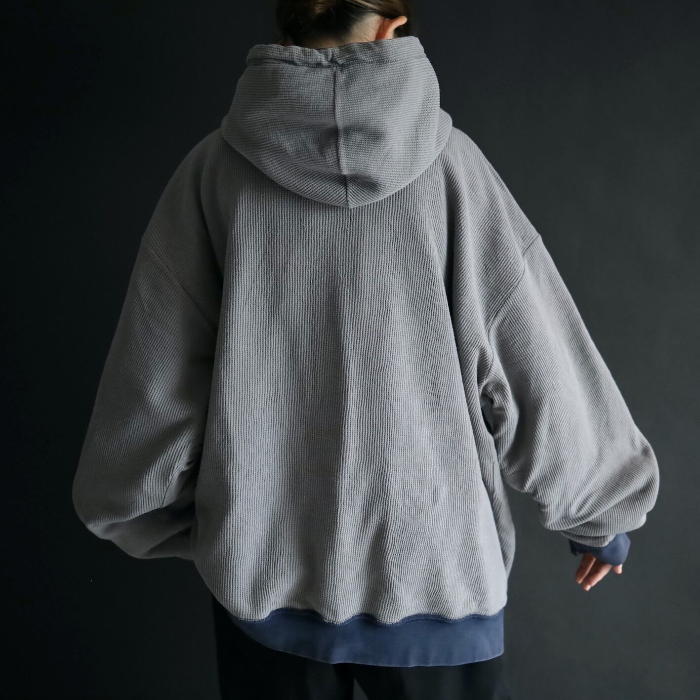 リバーシブルではないものの,あえて裏返しで着てもサーマルとスウェットの切替が現れていい感じに.