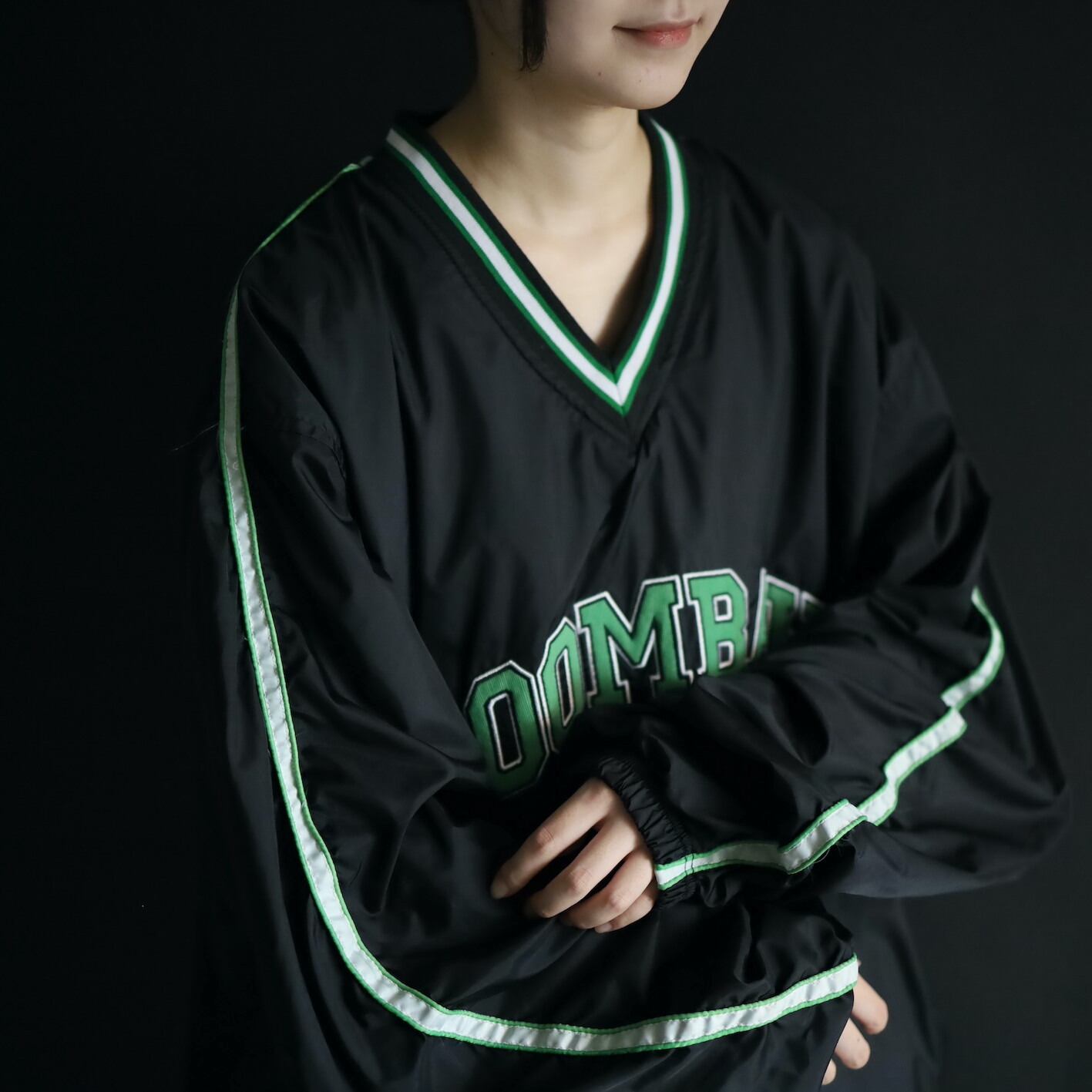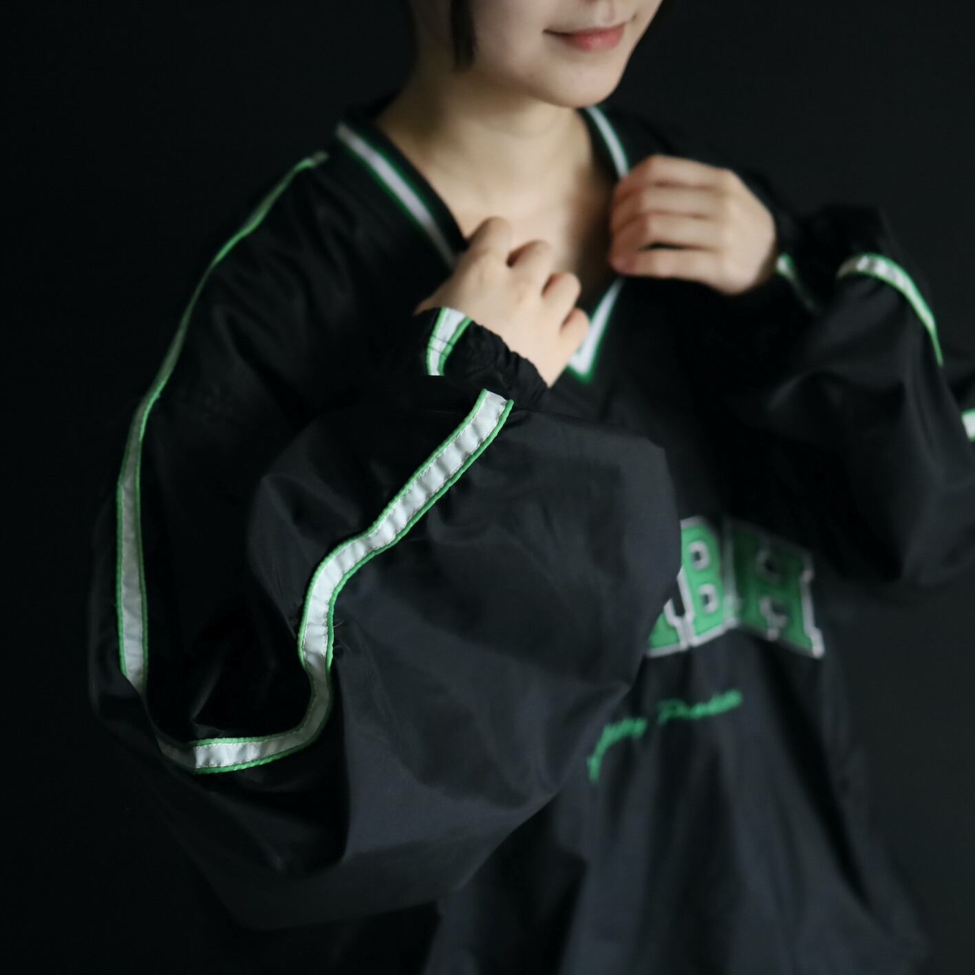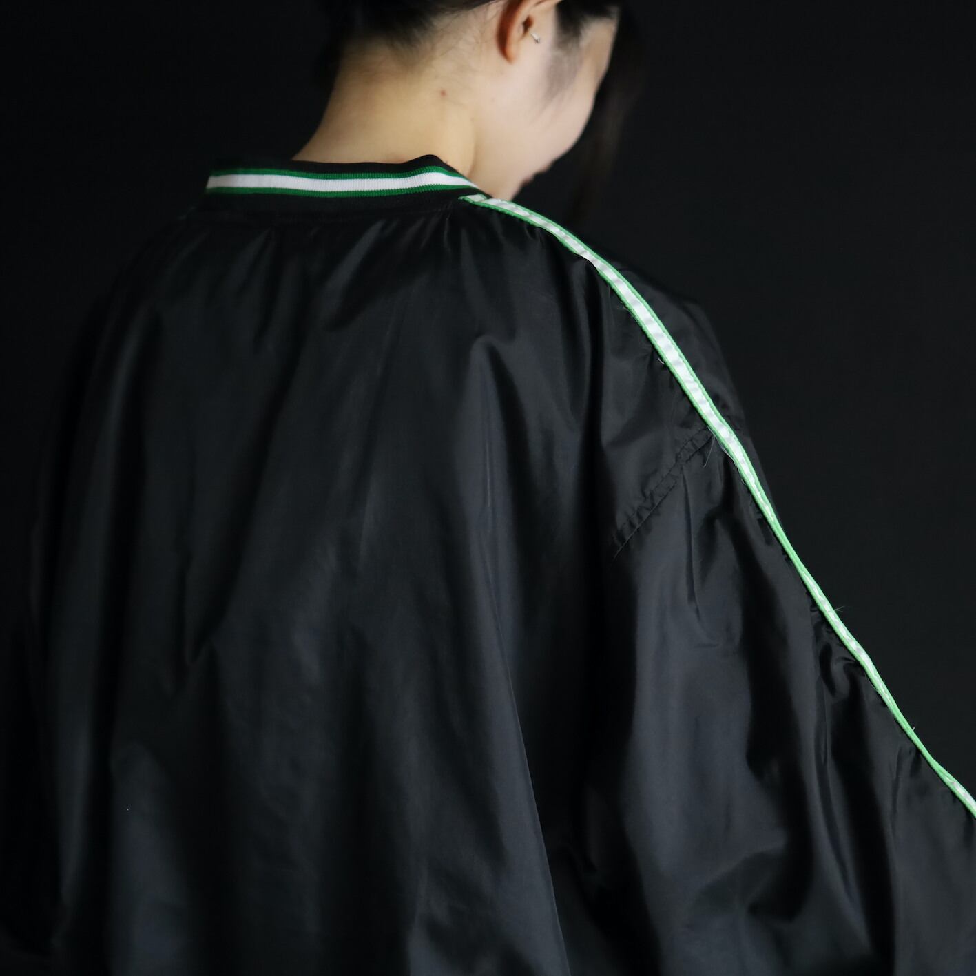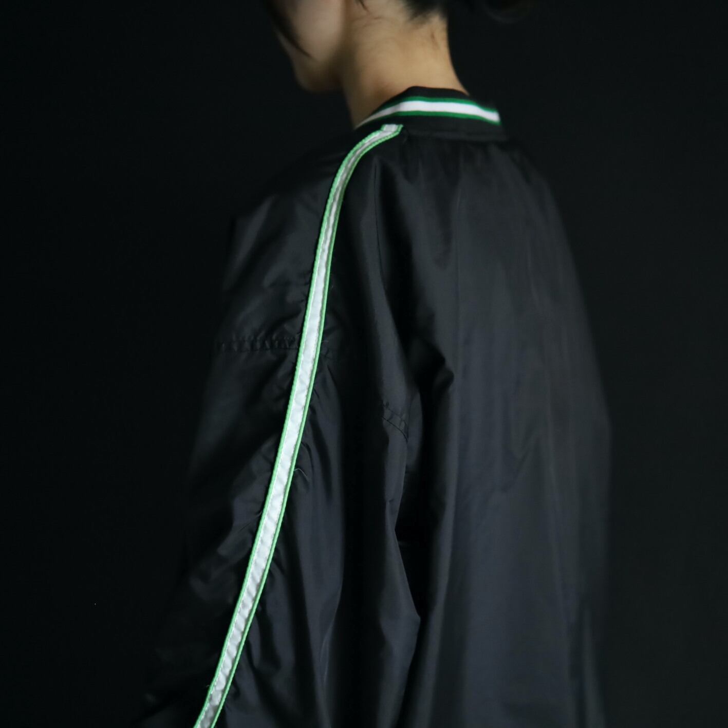 Vネックのリブ,スリーヴがホワイト×グリーンライン切替.