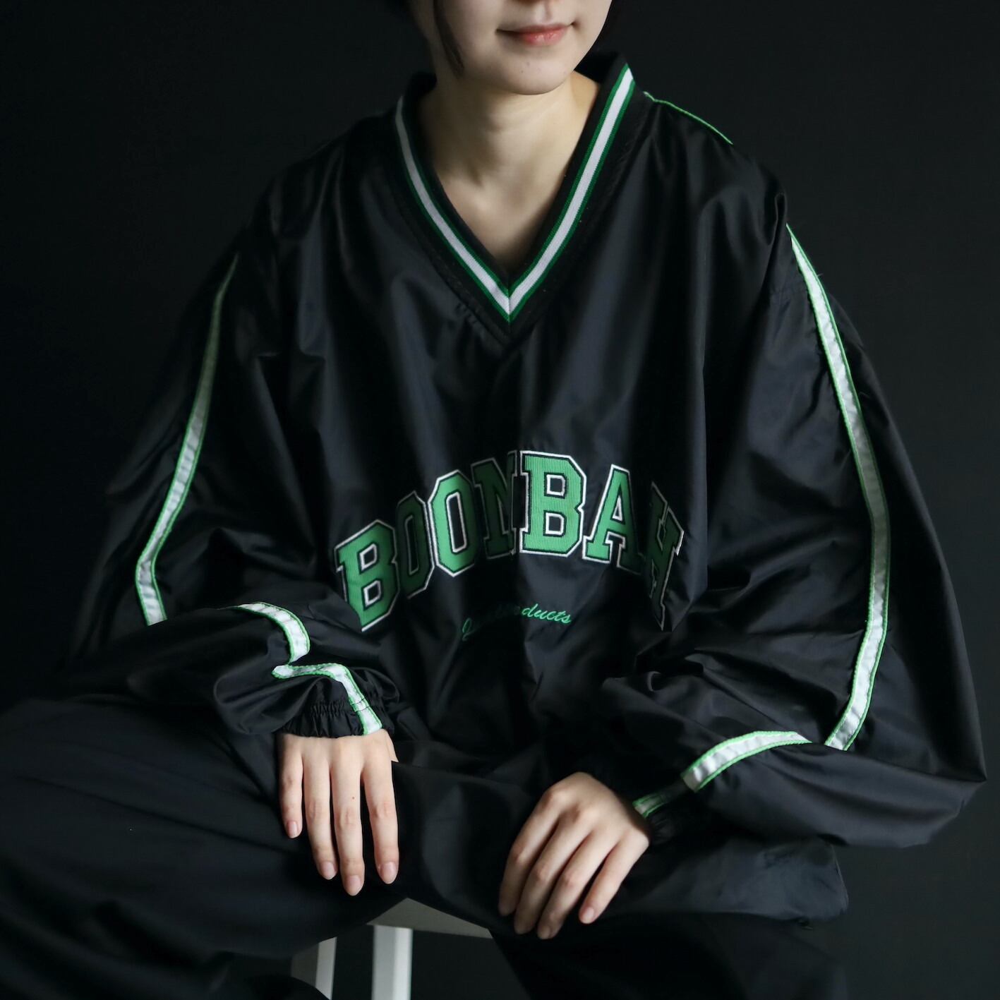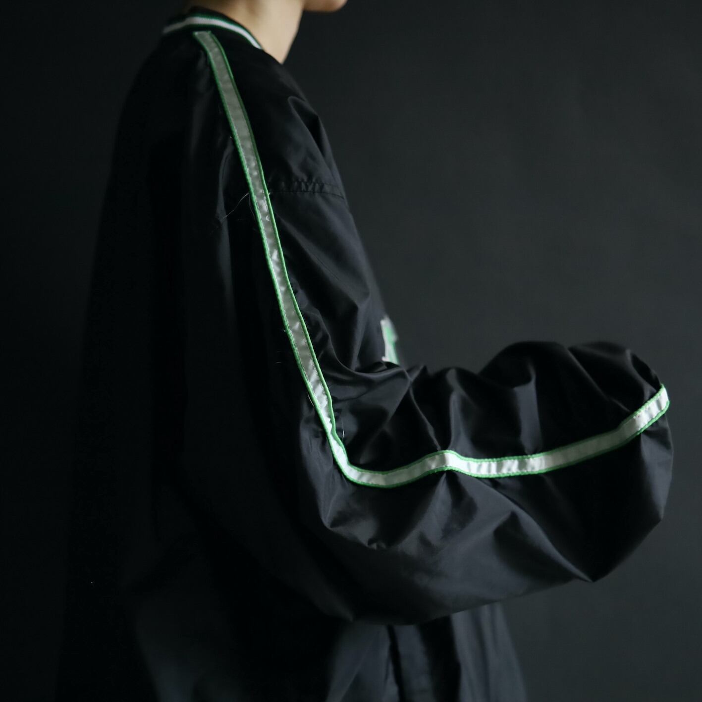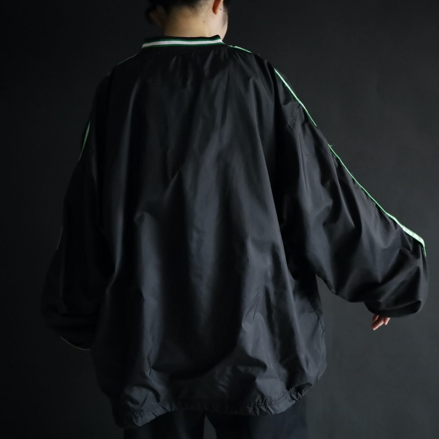 Vネックのリブ,スリーヴがホワイト×グリーンライン切替.