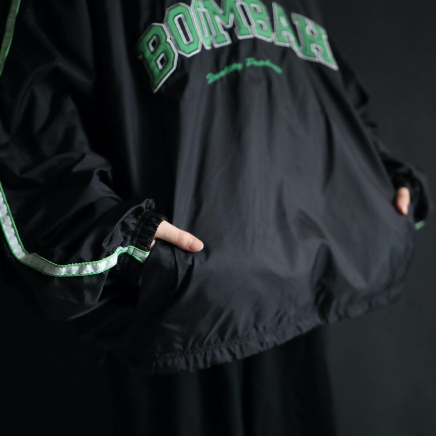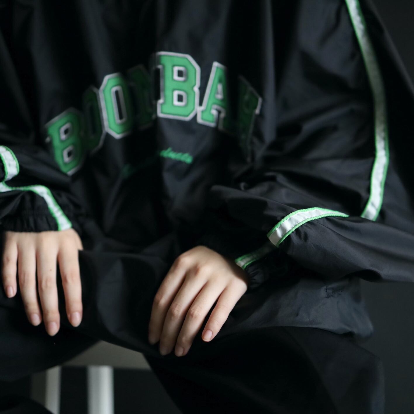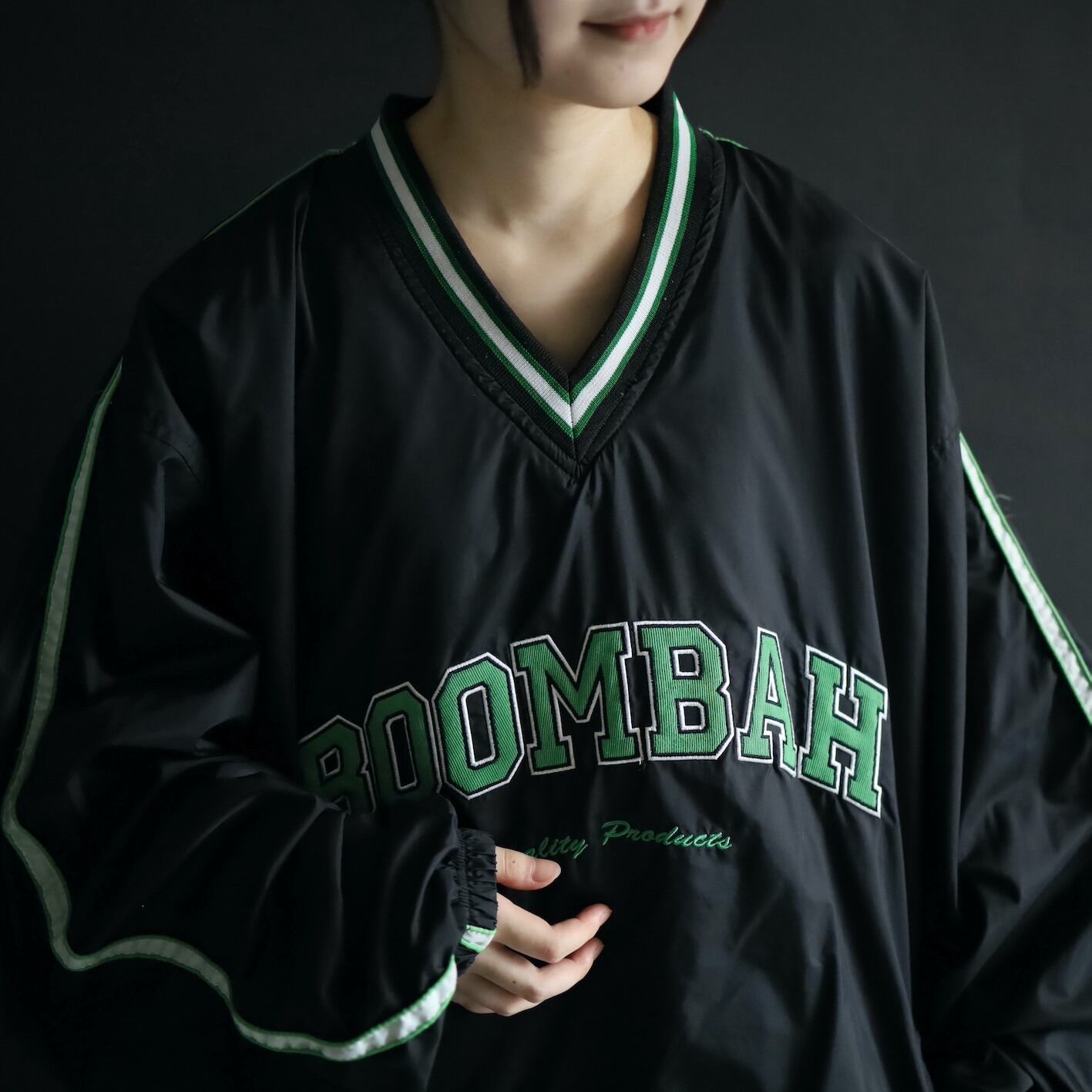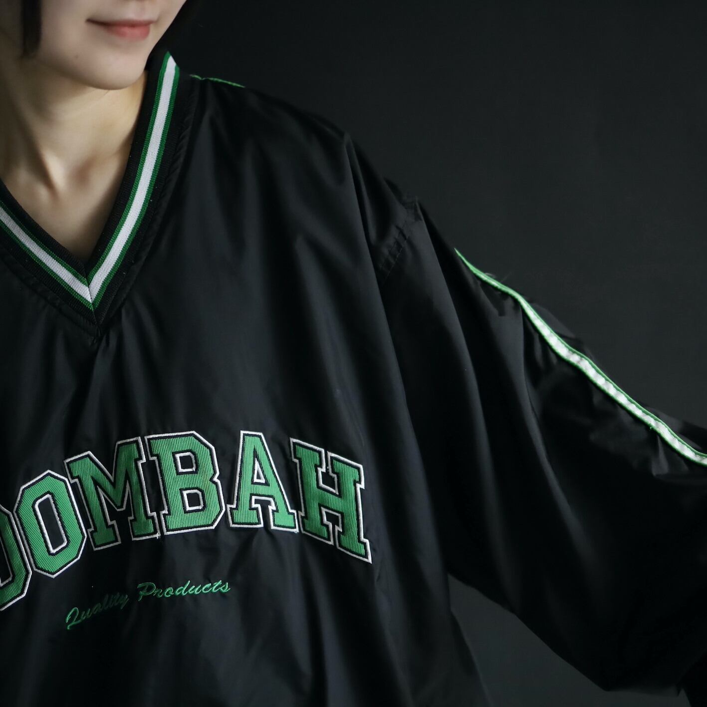 Vネックのリブ,スリーヴがホワイト×グリーンライン切替.