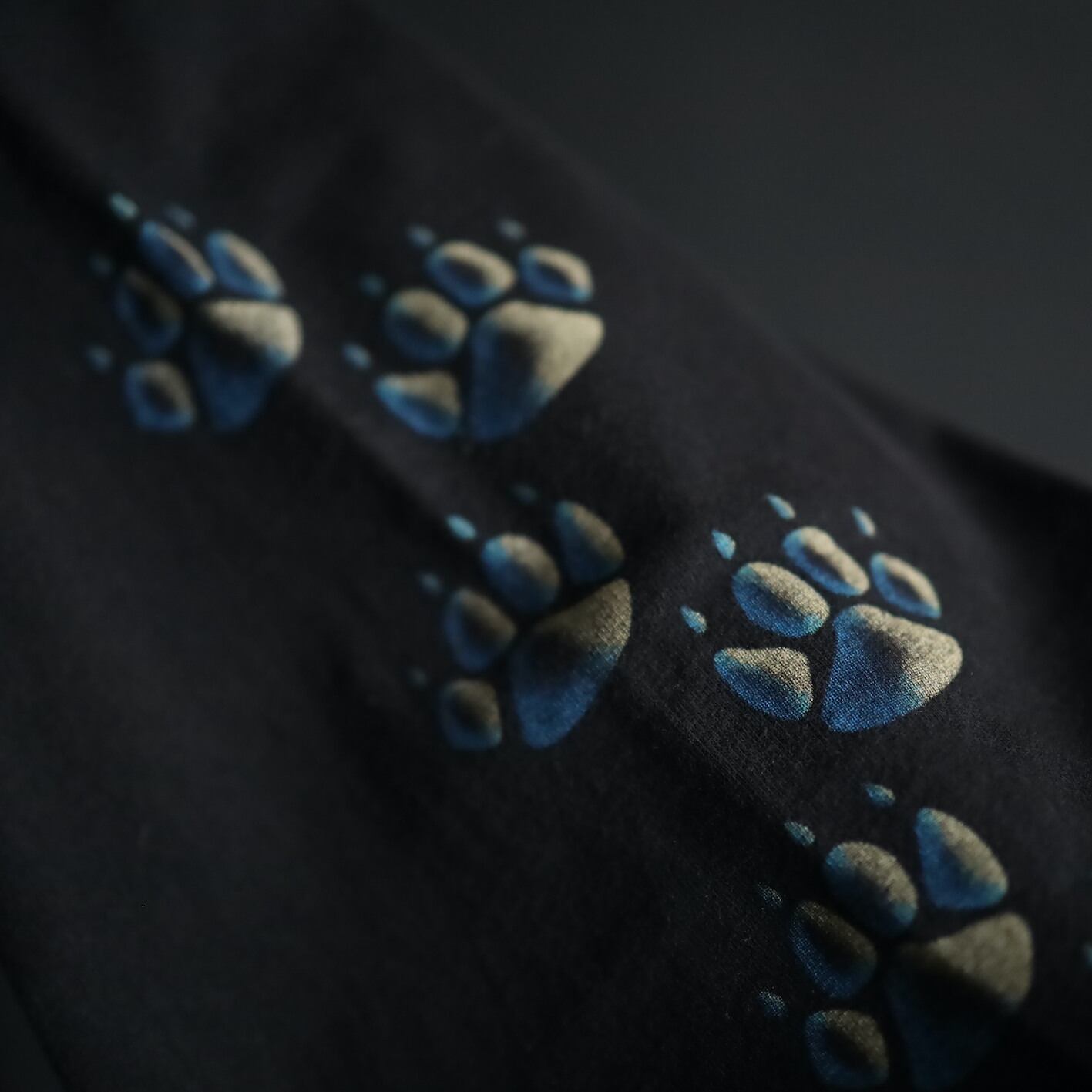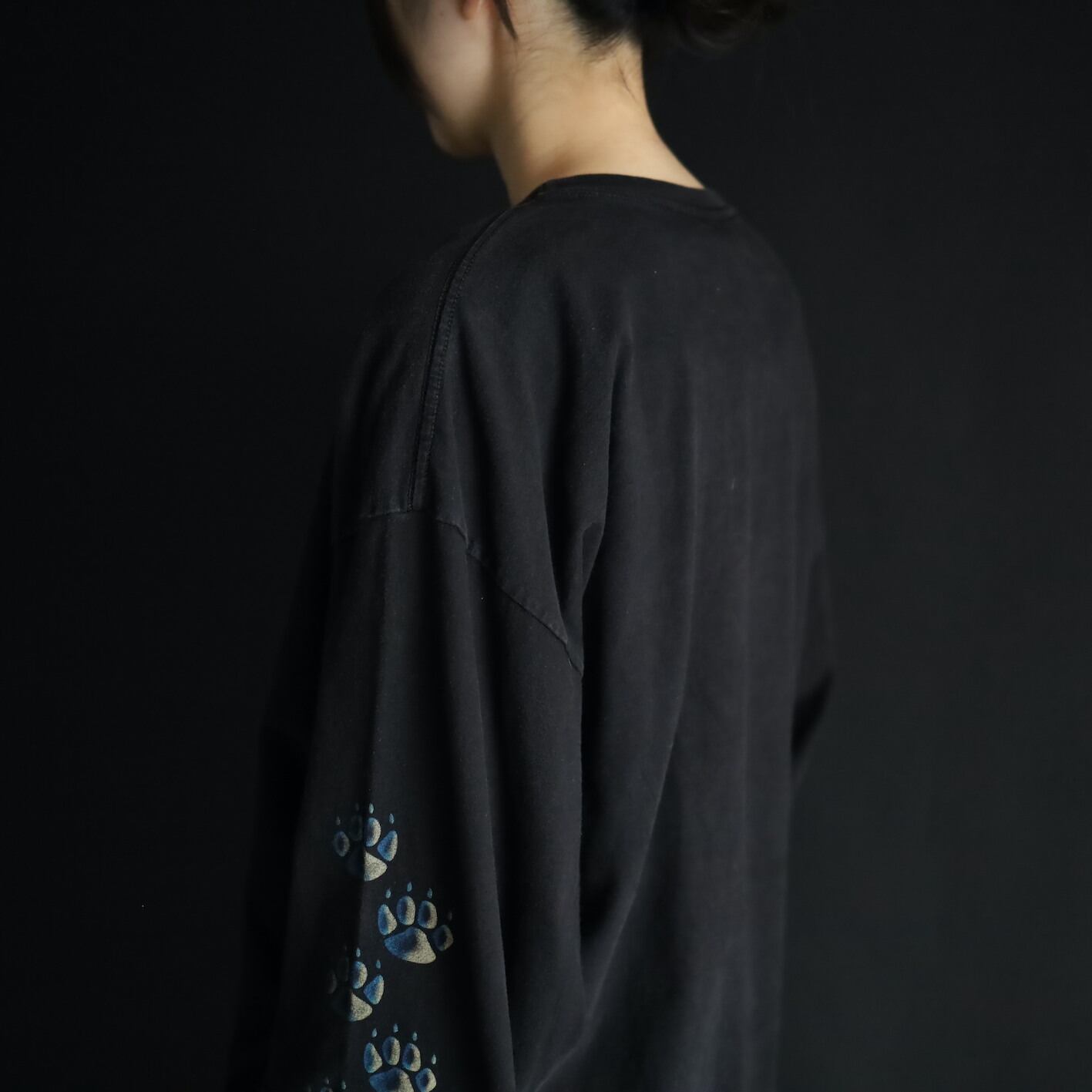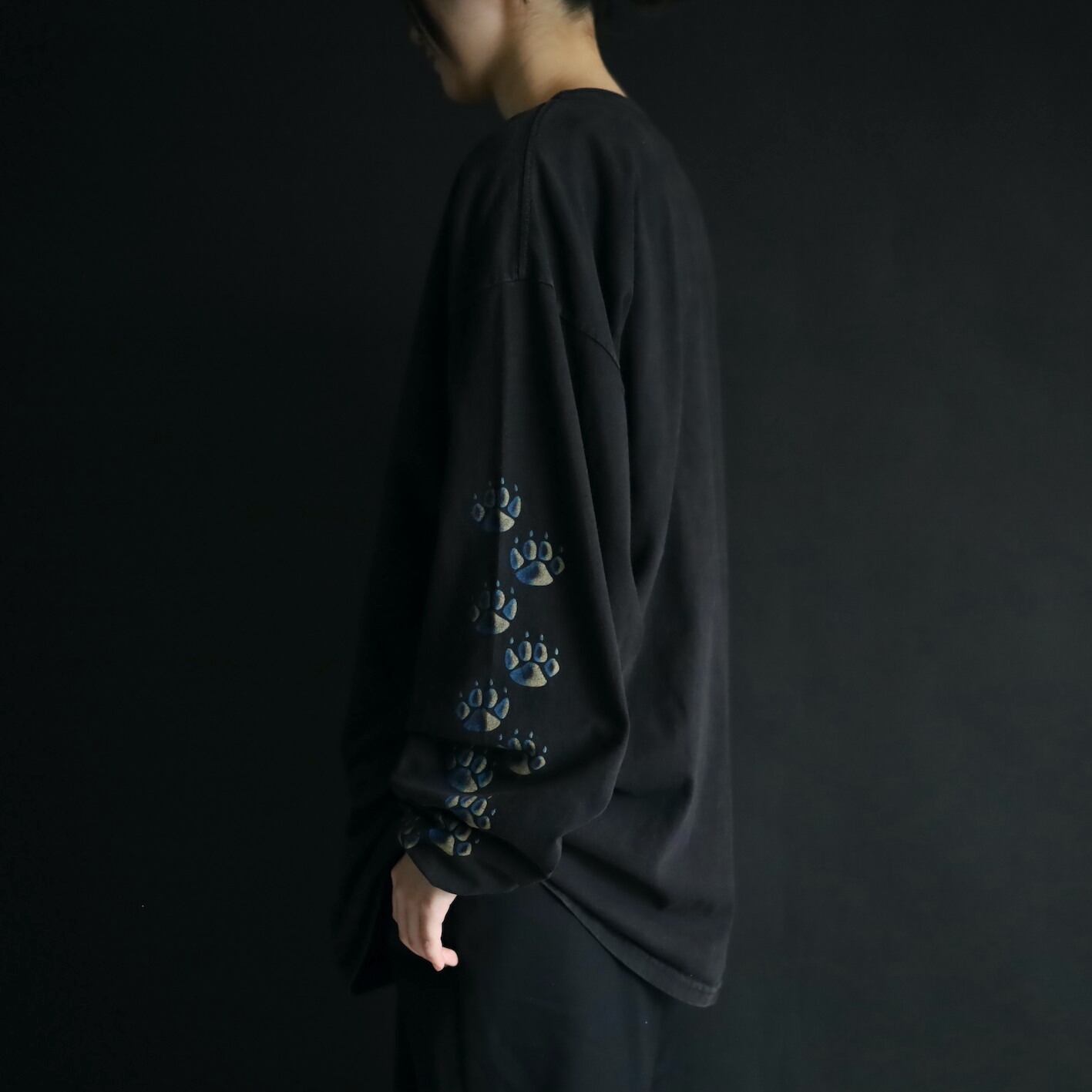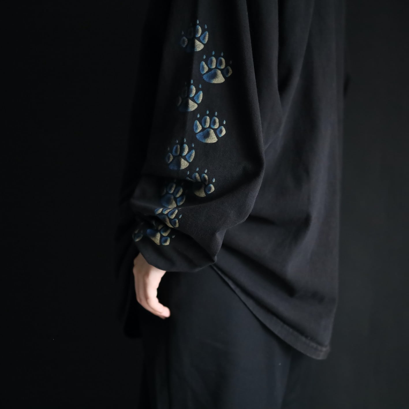 クールな表情でいてインパクト抜群のプリントに対して,袖の足跡のプリントが超可愛いです〜.