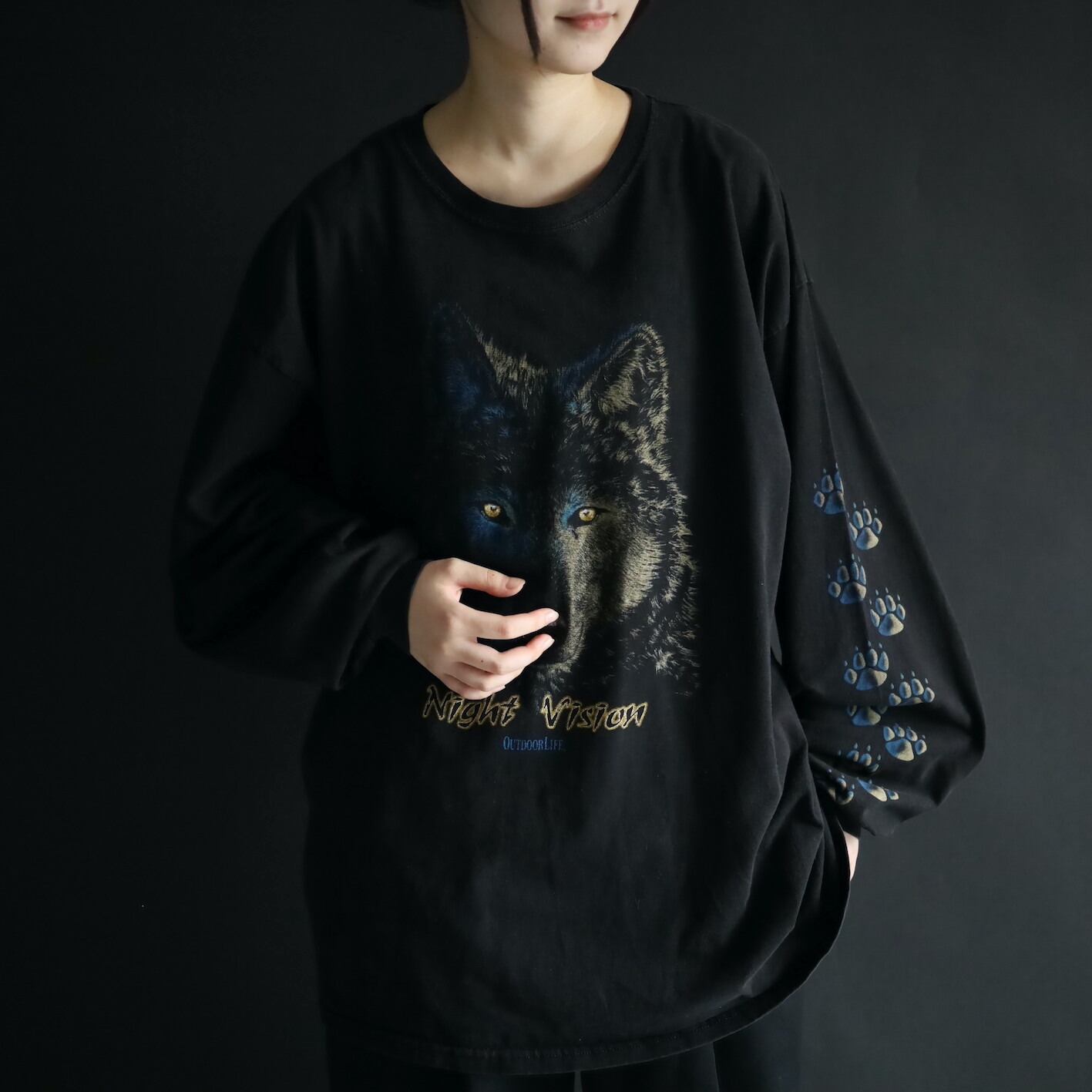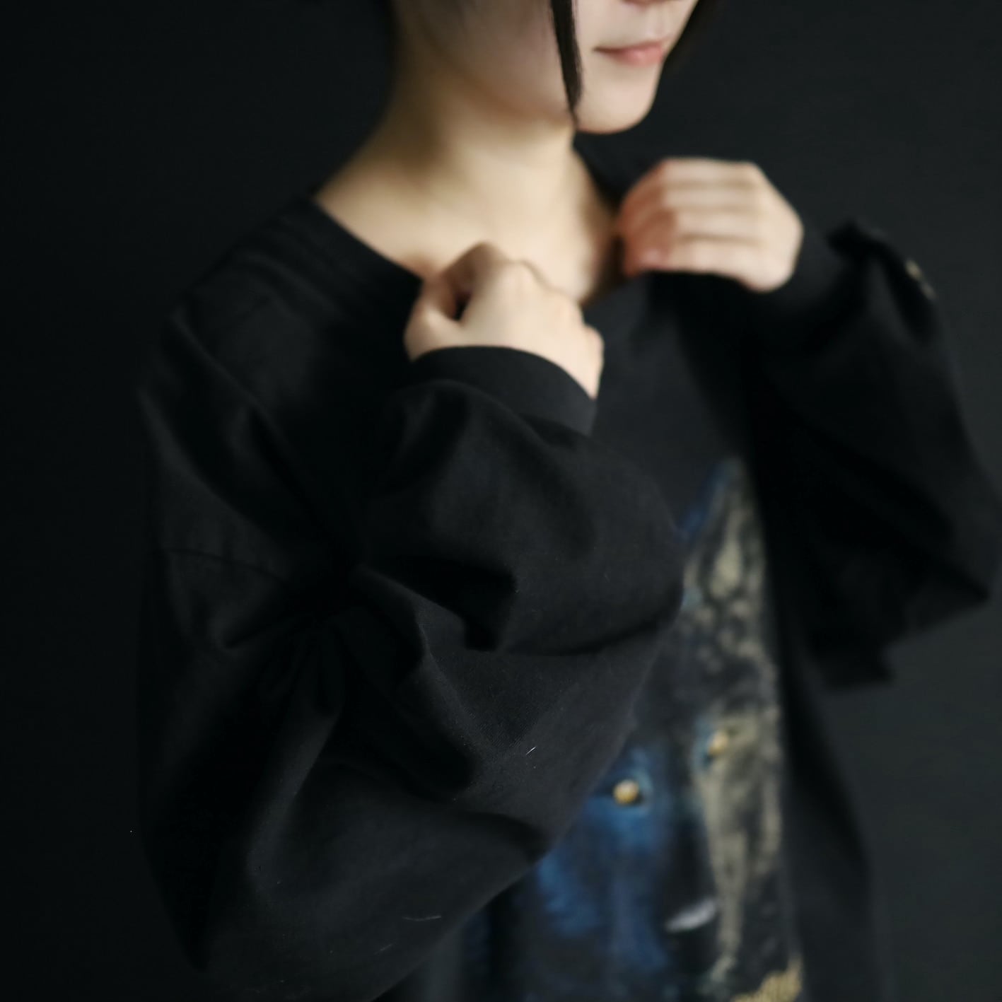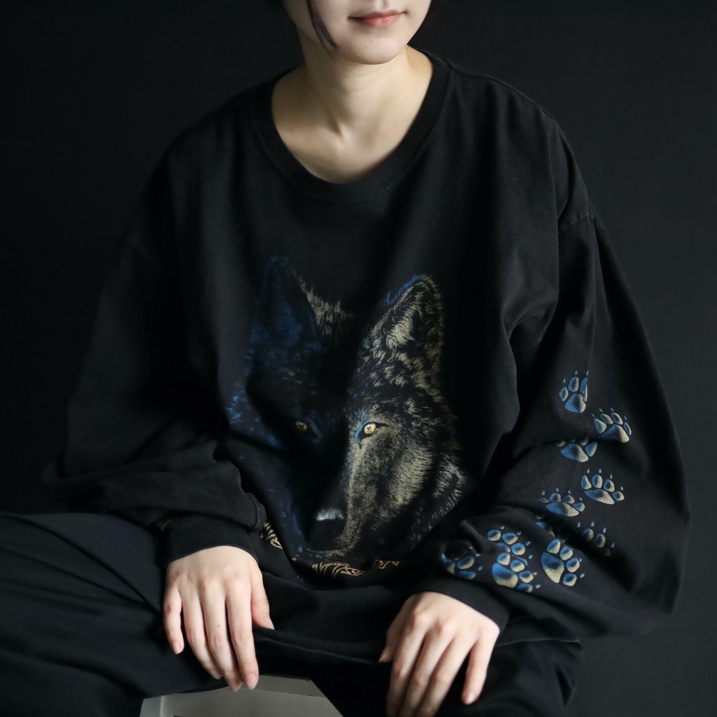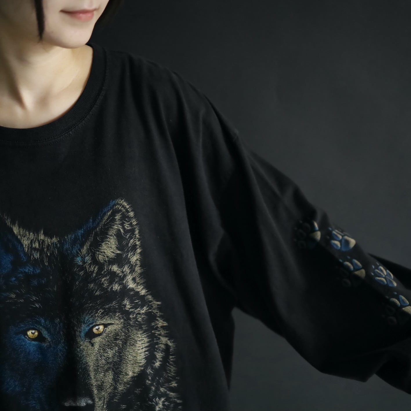 クールな表情でいてインパクト抜群のプリントに対して,袖の足跡のプリントが超可愛いです〜.