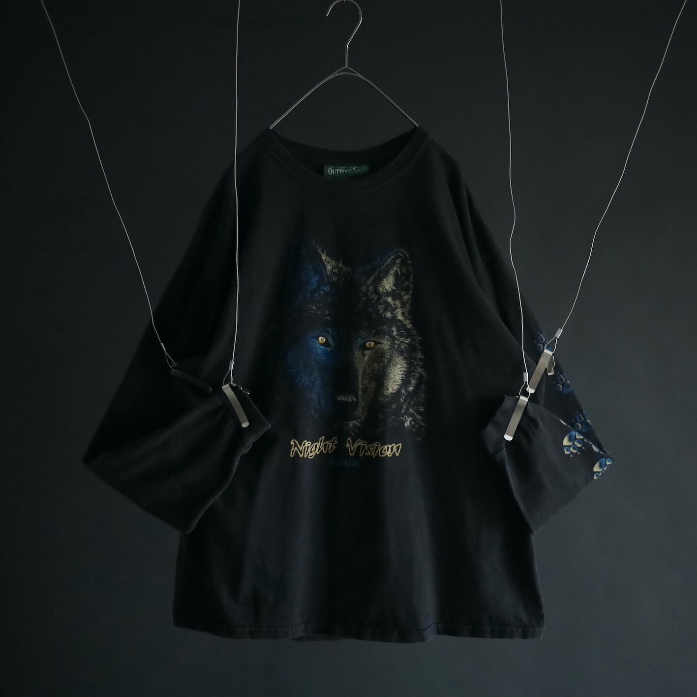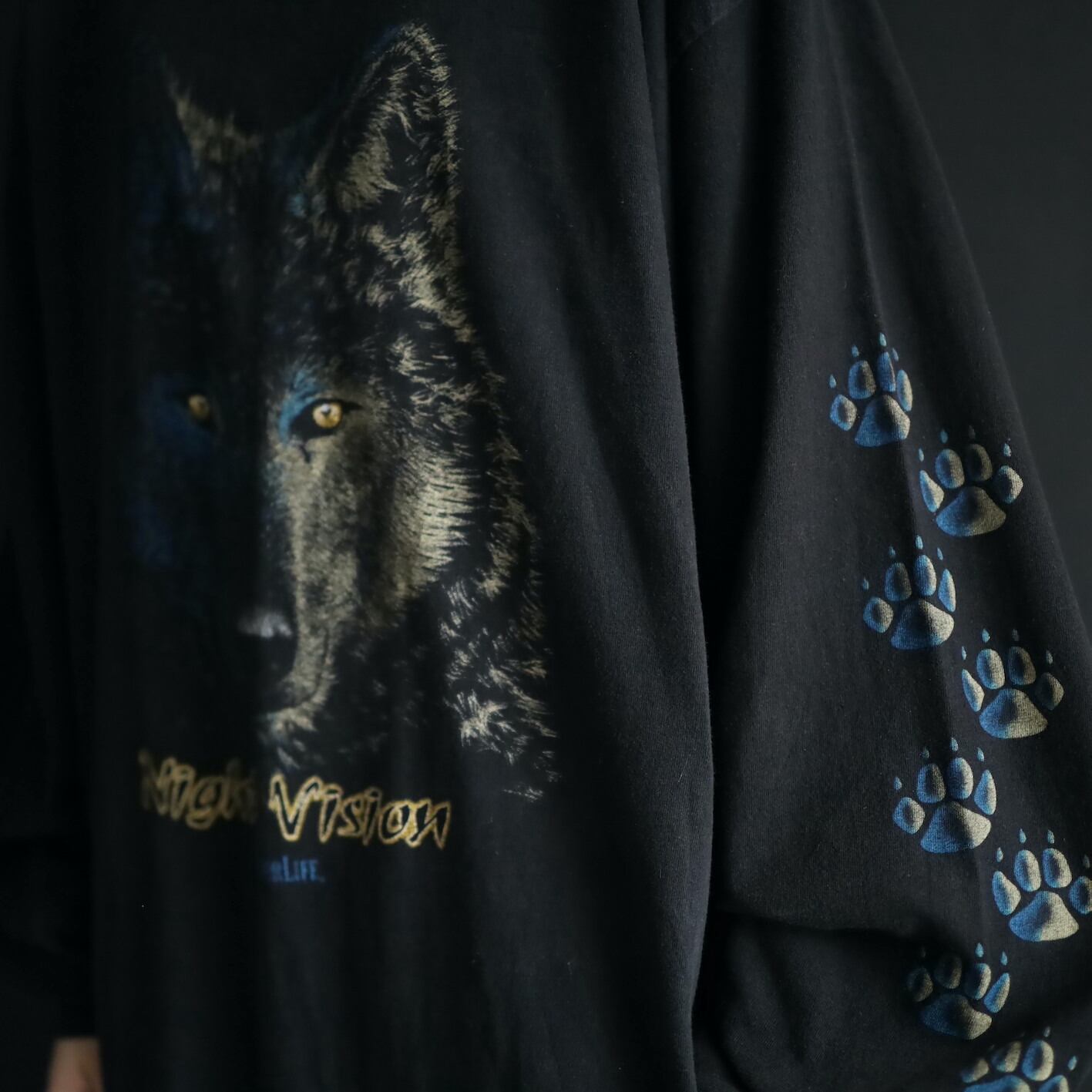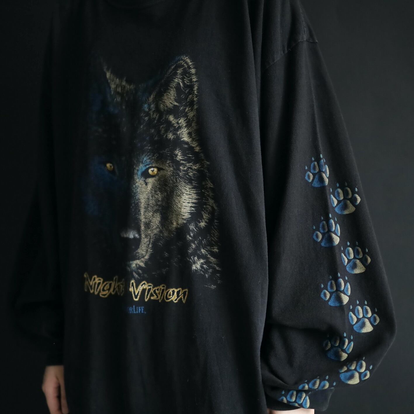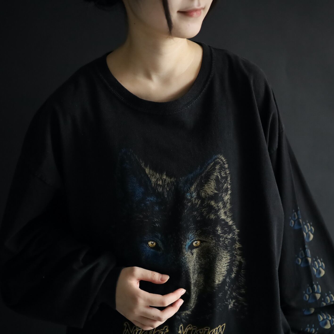 クールな表情でいてインパクト抜群のプリントに対して,袖の足跡のプリントが超可愛いです〜.