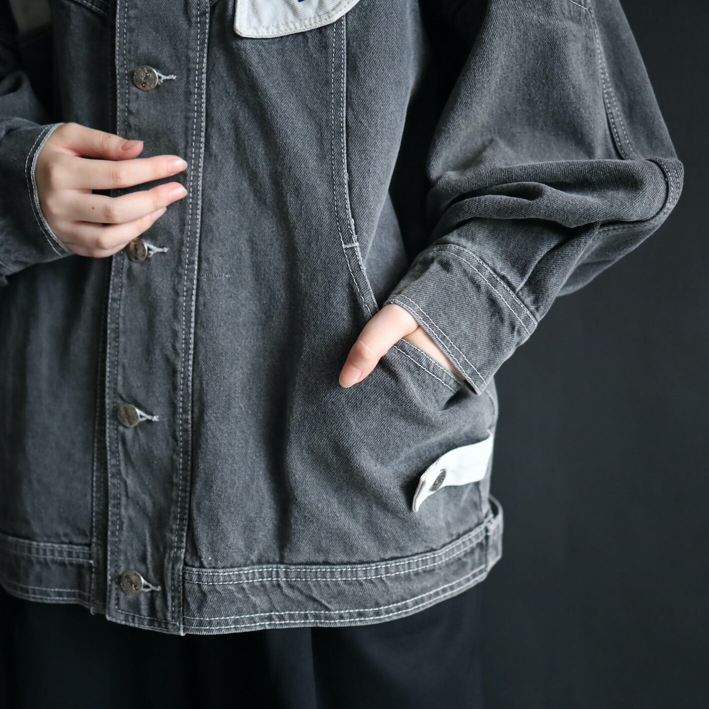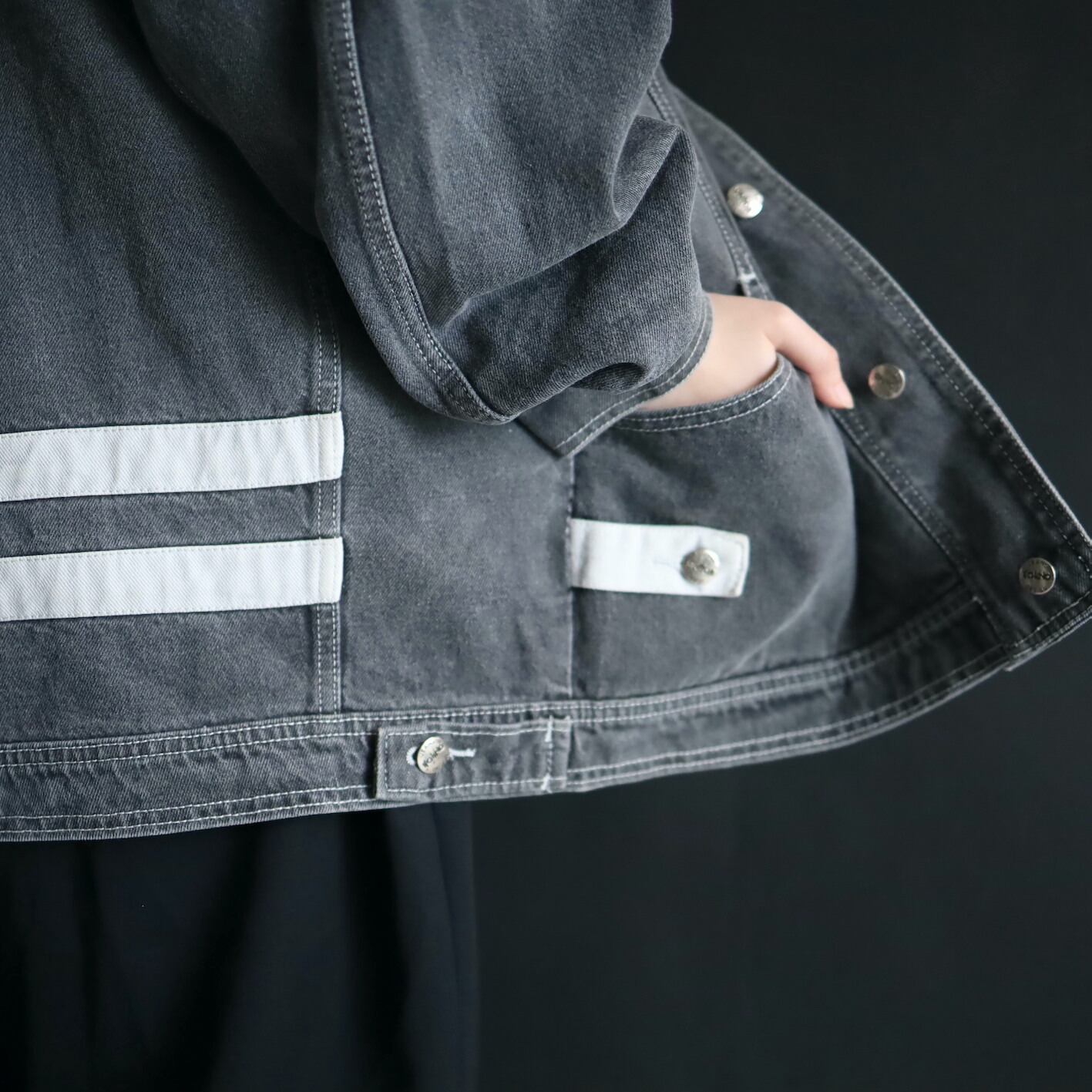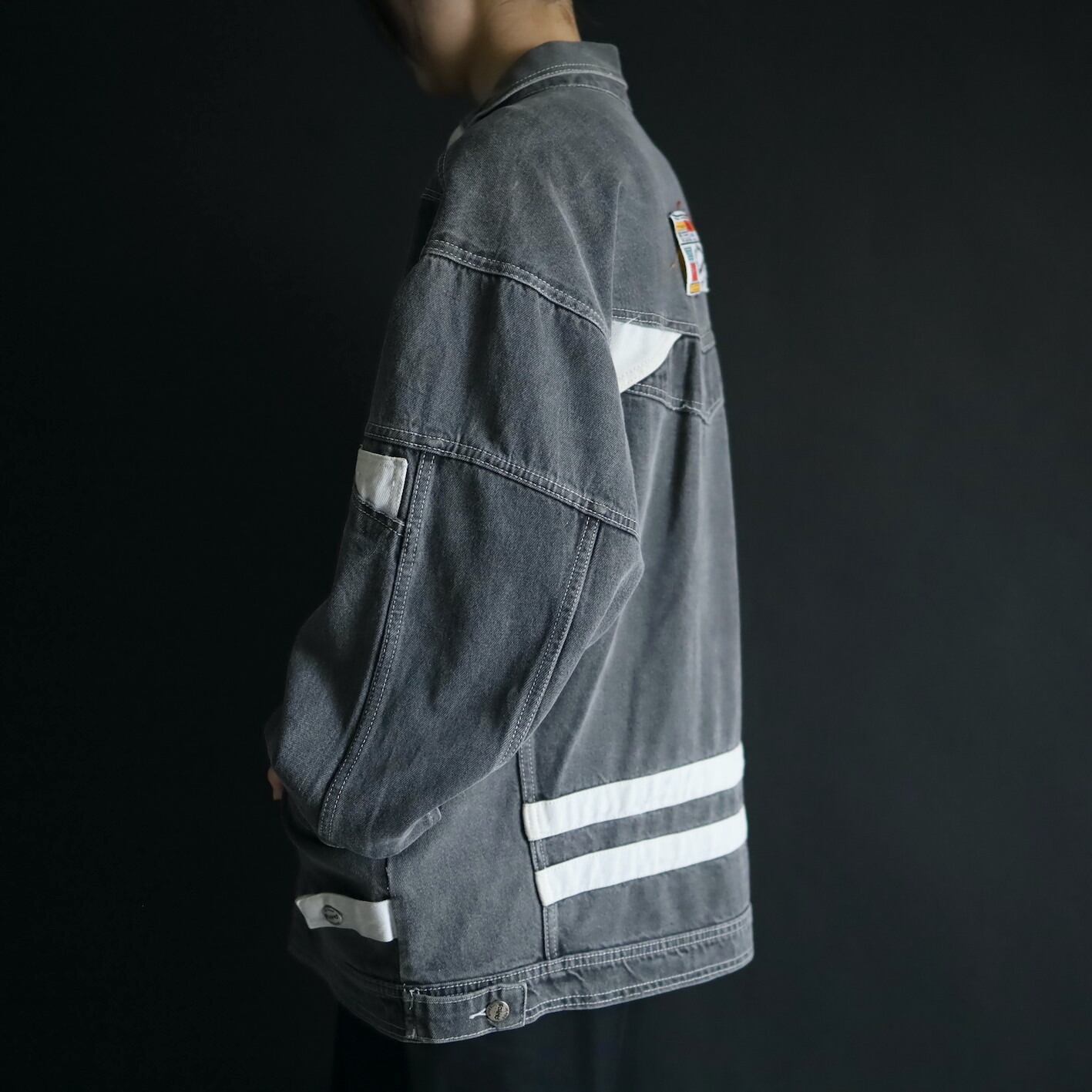 襟やポケット,バックのラインテープ,アジャスターなどがホワイト切替のユーモアな一枚です.
