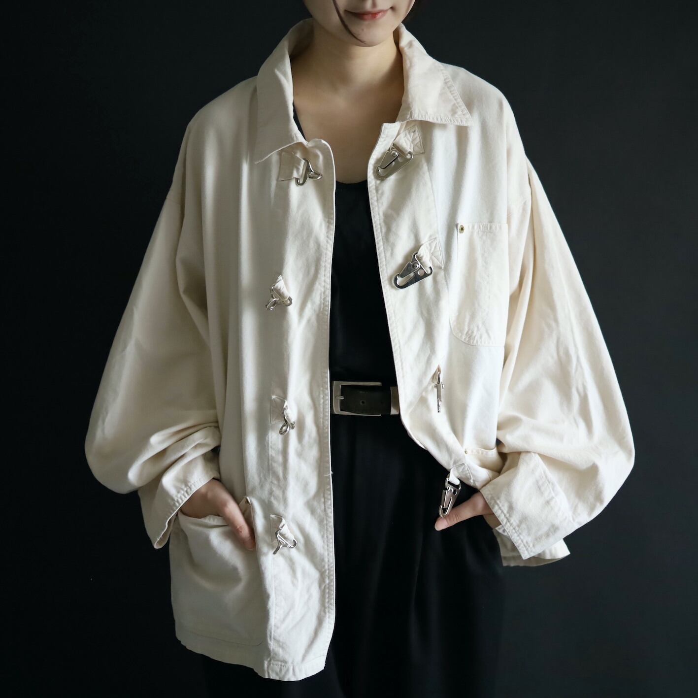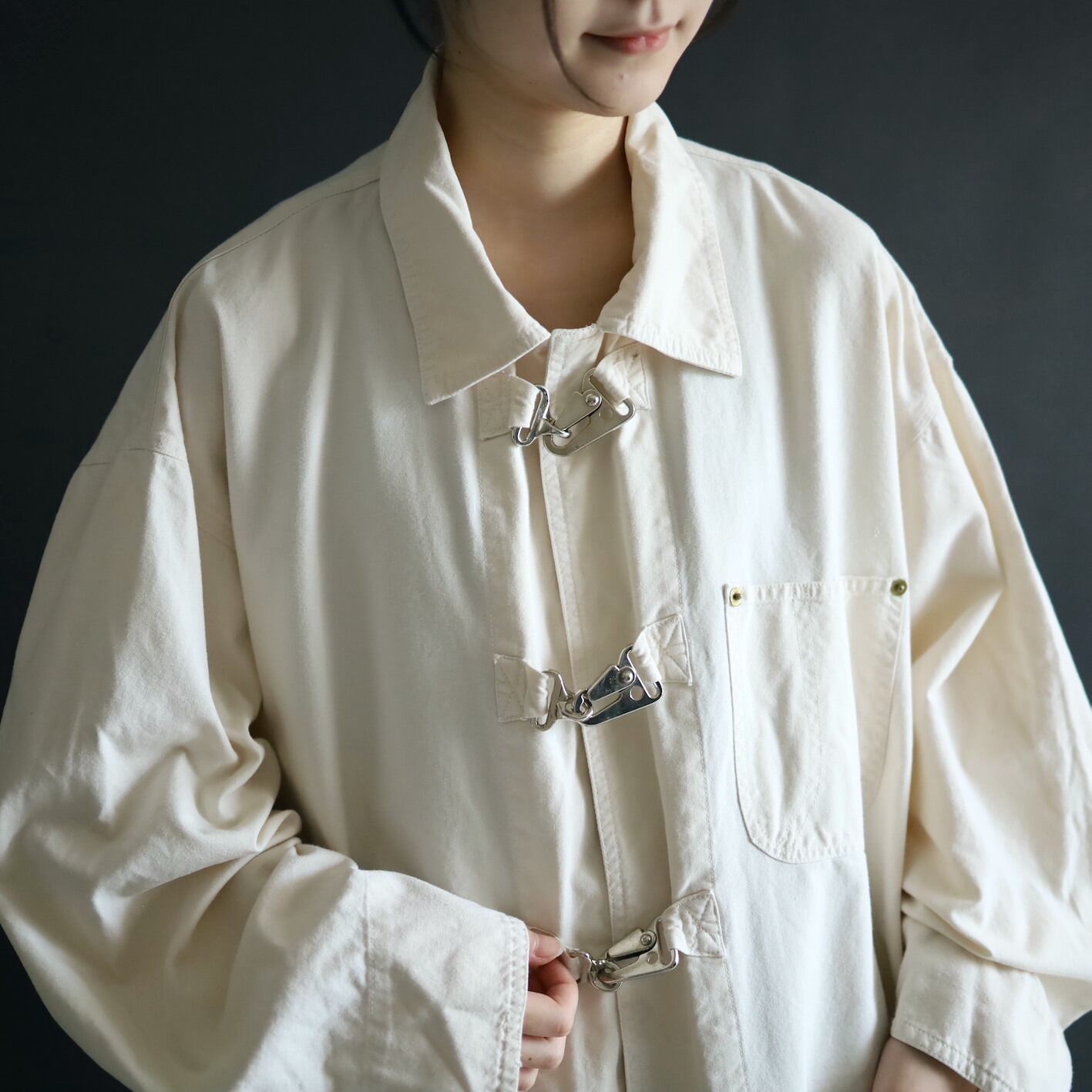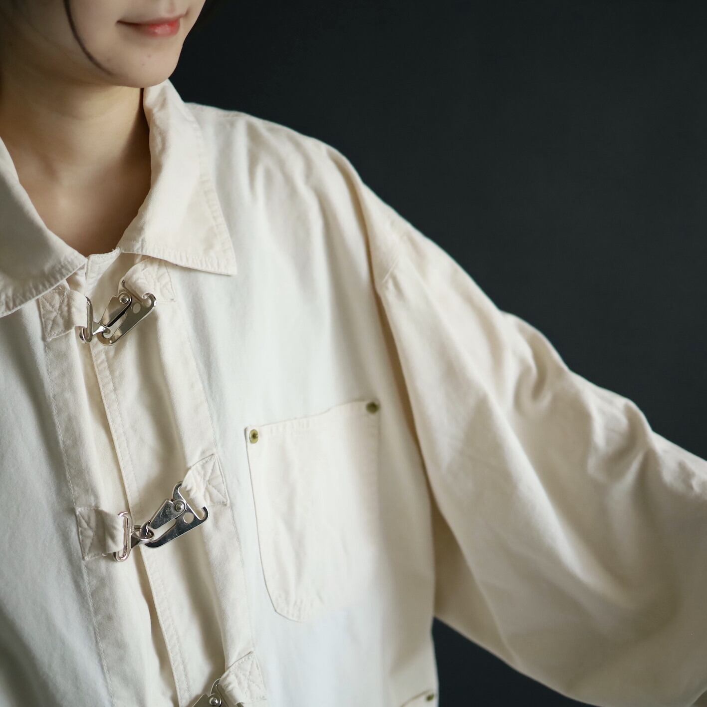 そしてファイアマンジャケットには欠かせない,メタル製のバックルボタン.