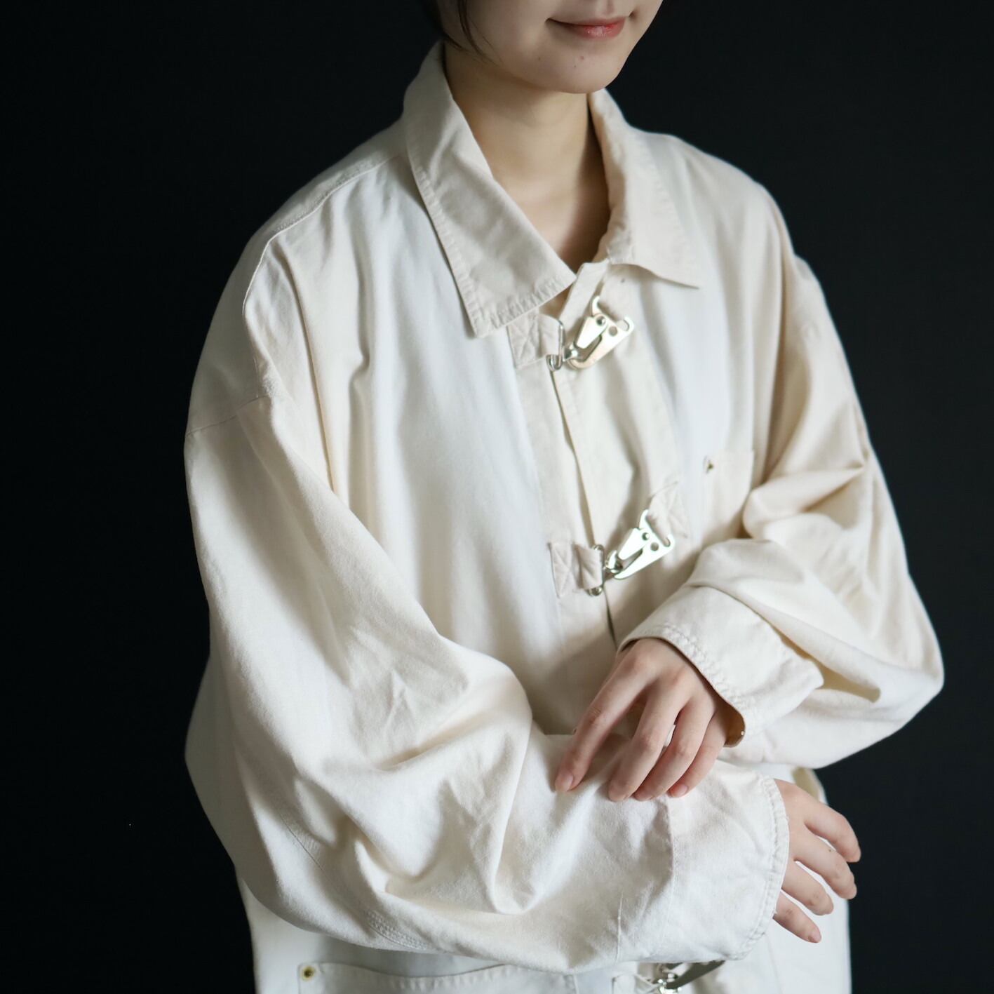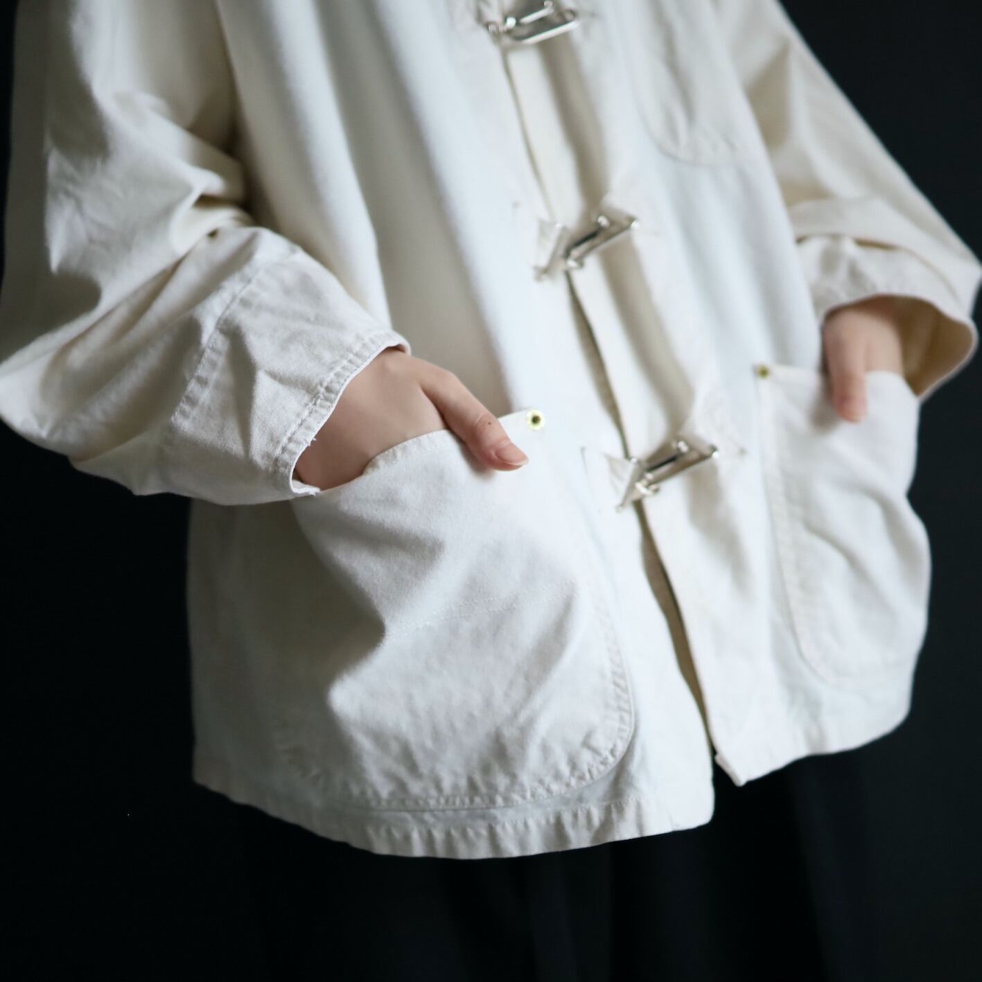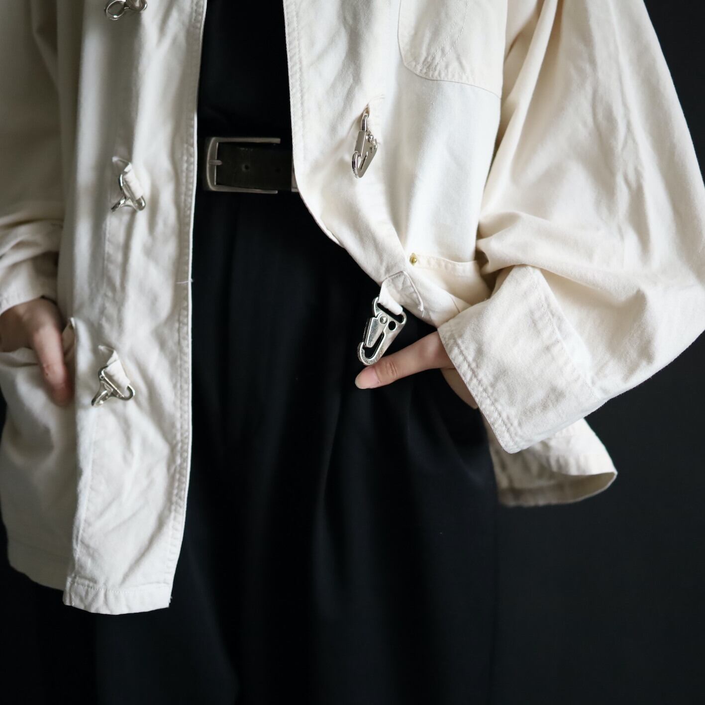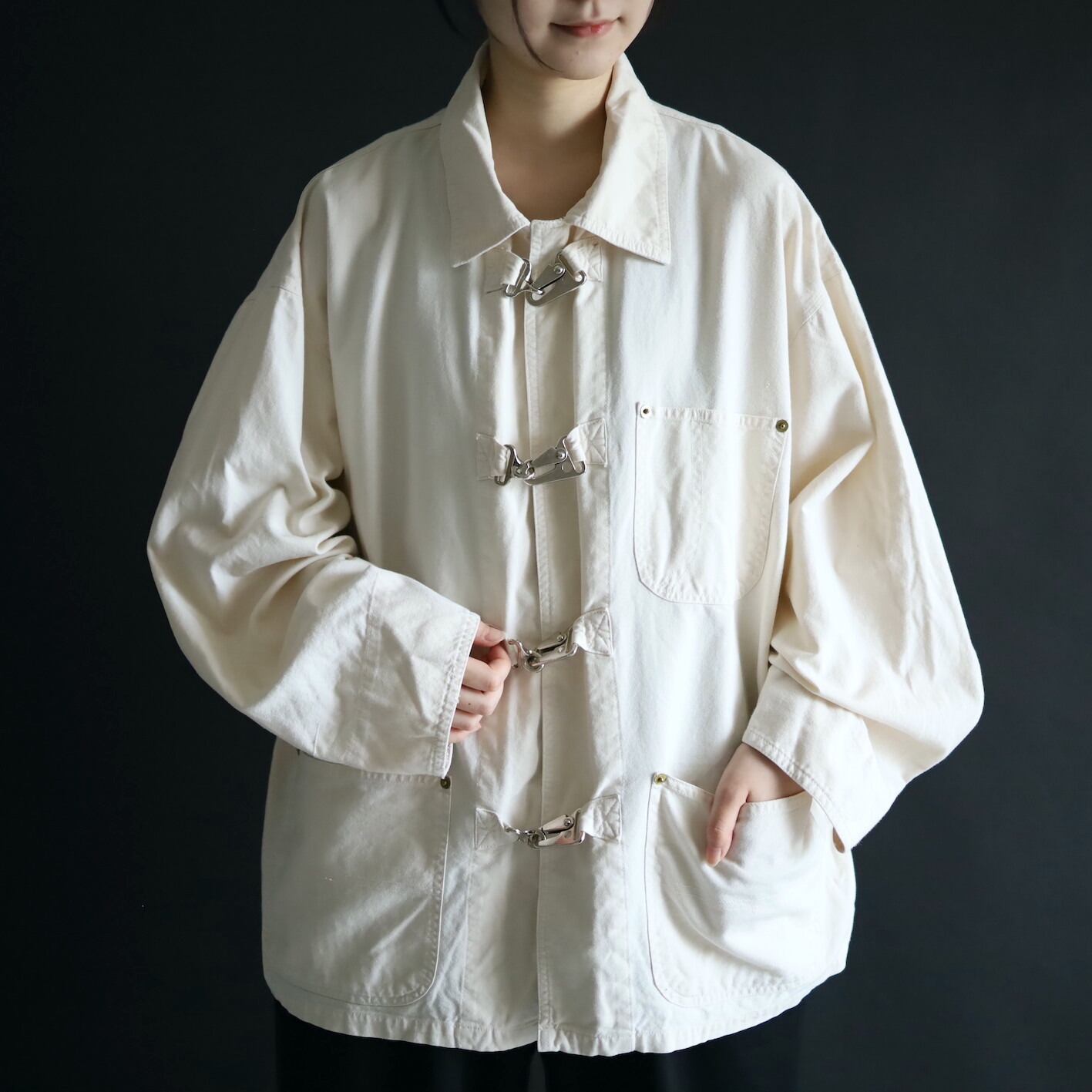 そしてファイアマンジャケットには欠かせない,メタル製のバックルボタン.