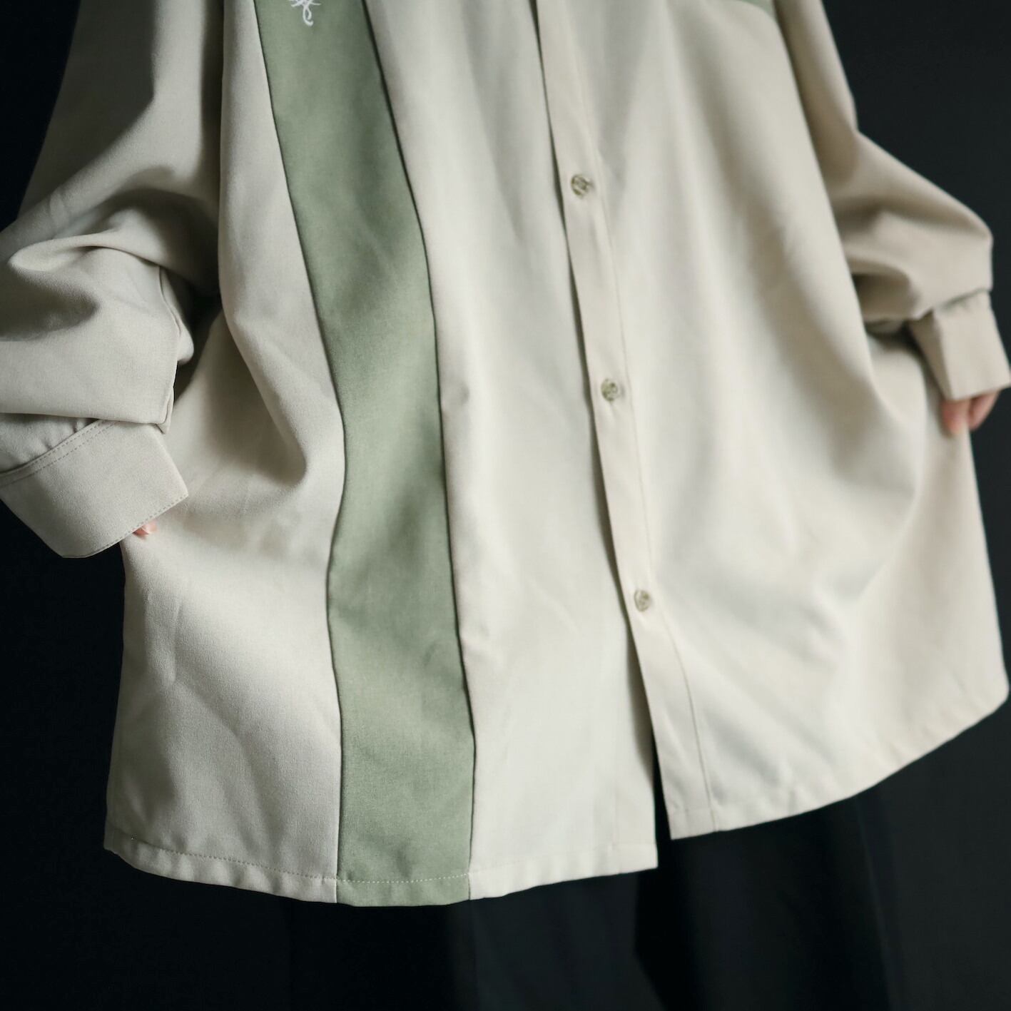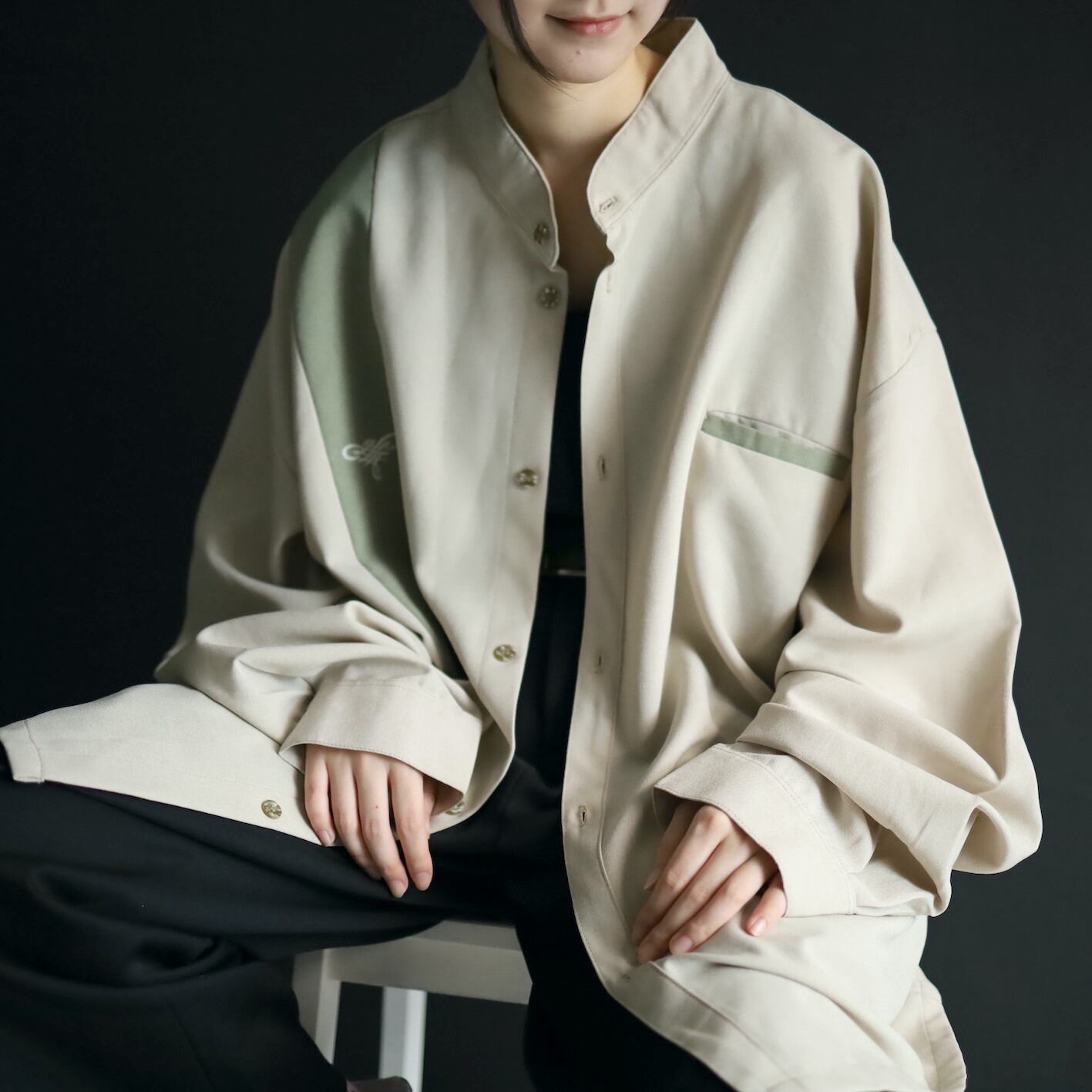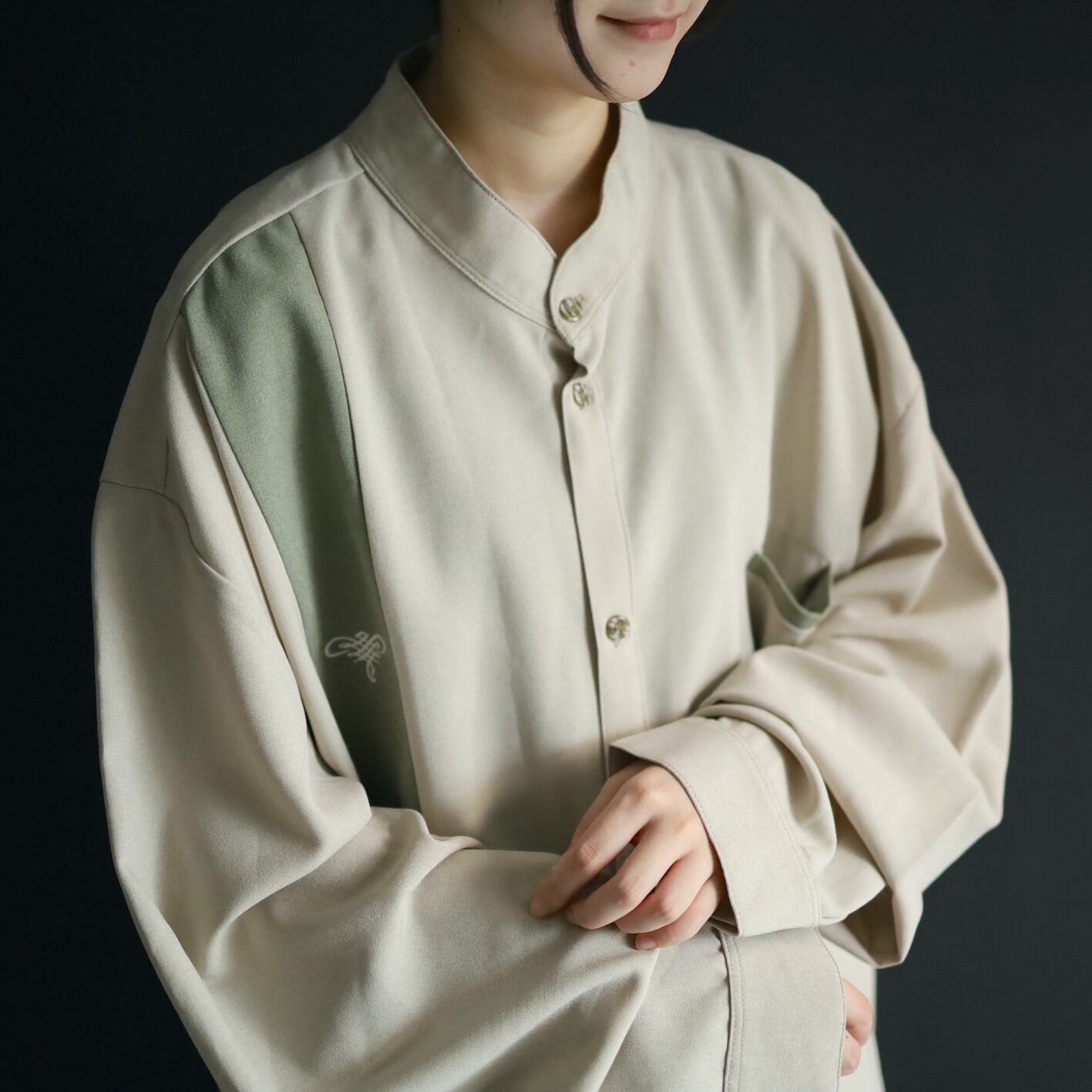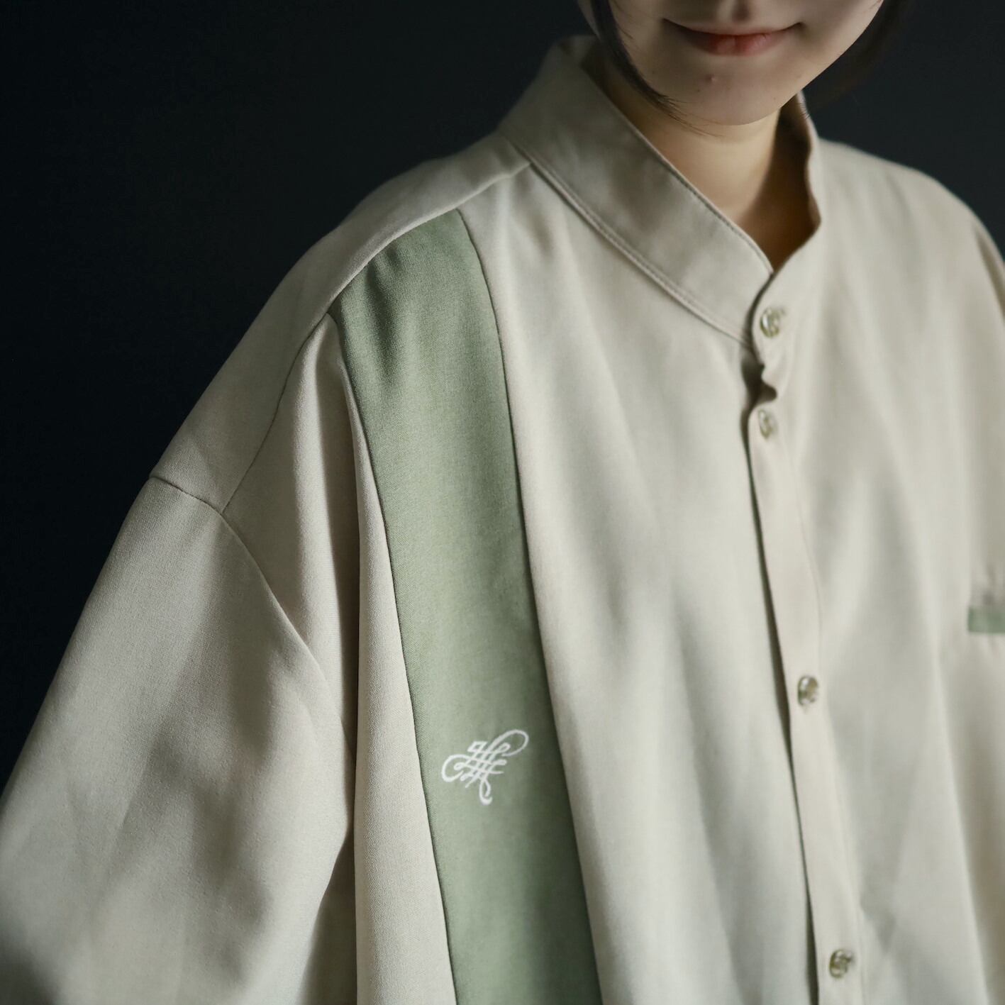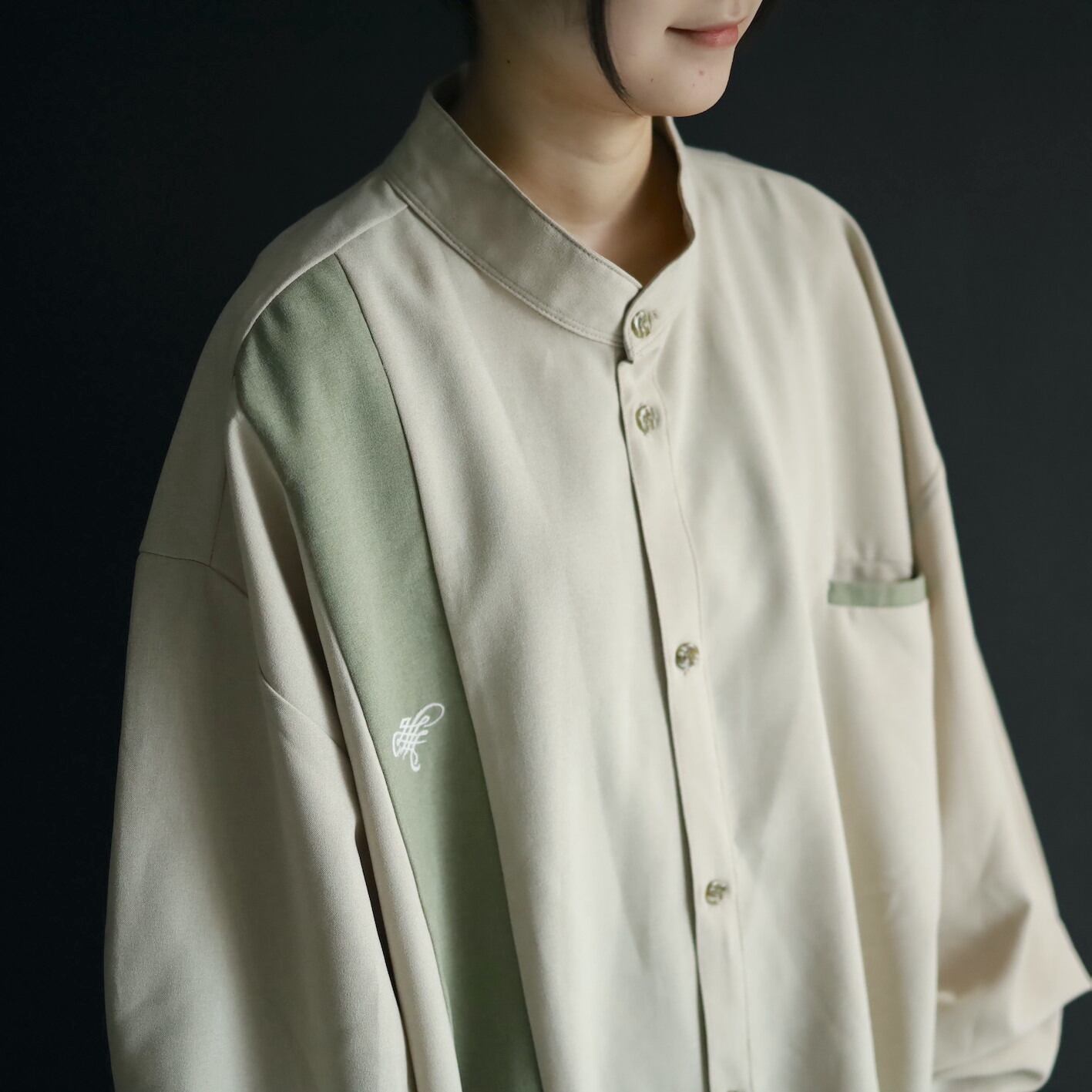 ベージュをメインに,右肩から裾にかけての抹茶のライン.