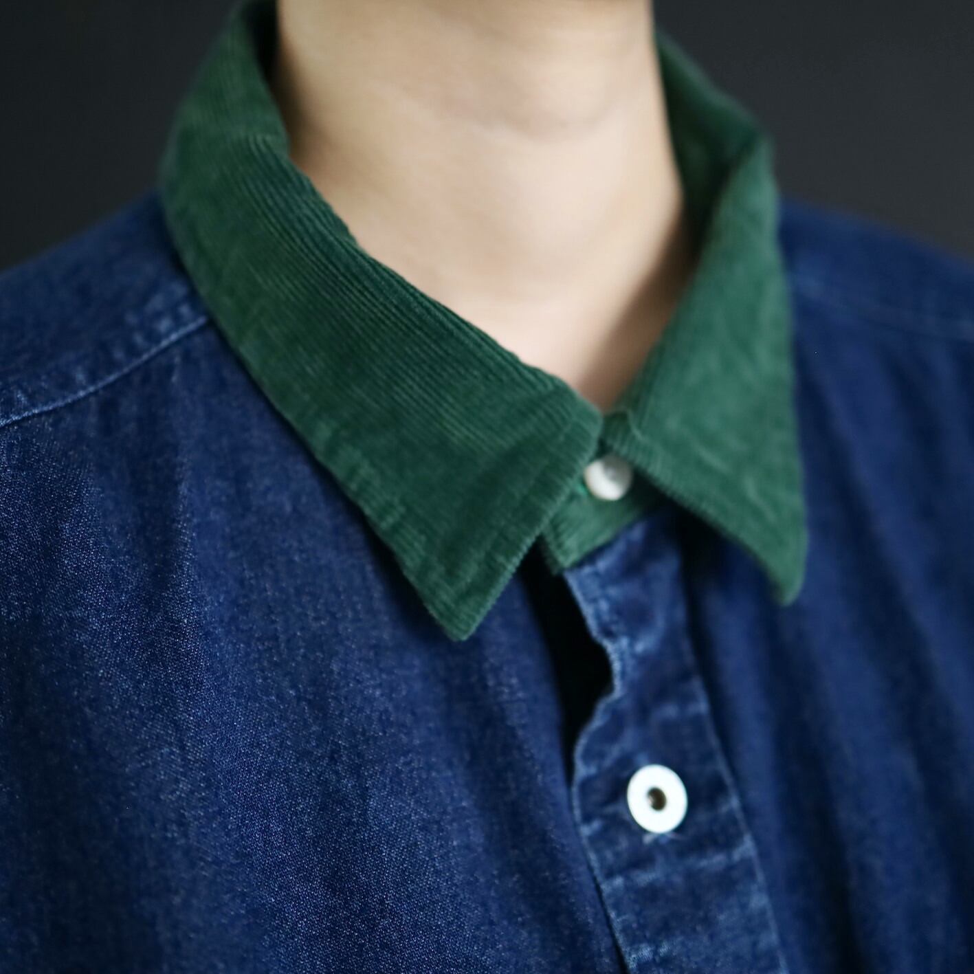 デニムの色味も綺麗で注目ポイントですが,襟がコーデュロイ切替というのも渋い.