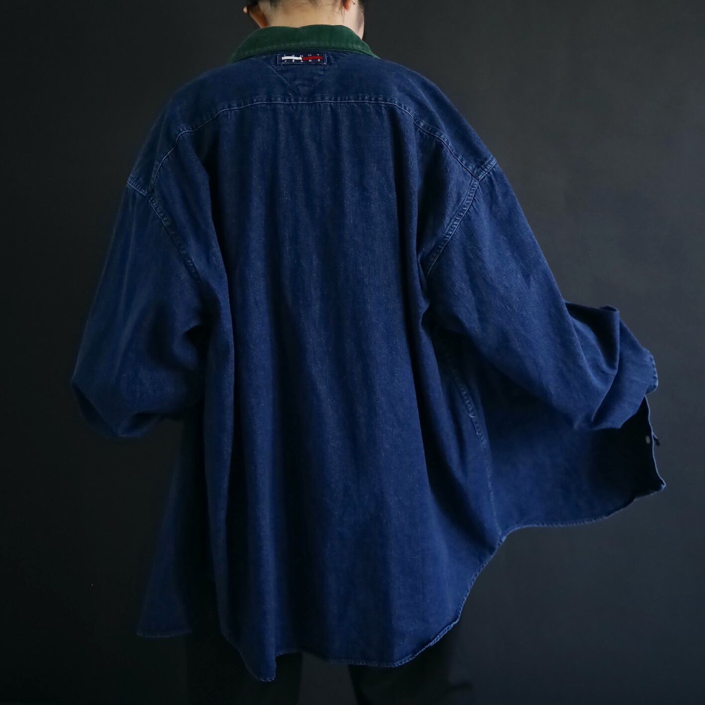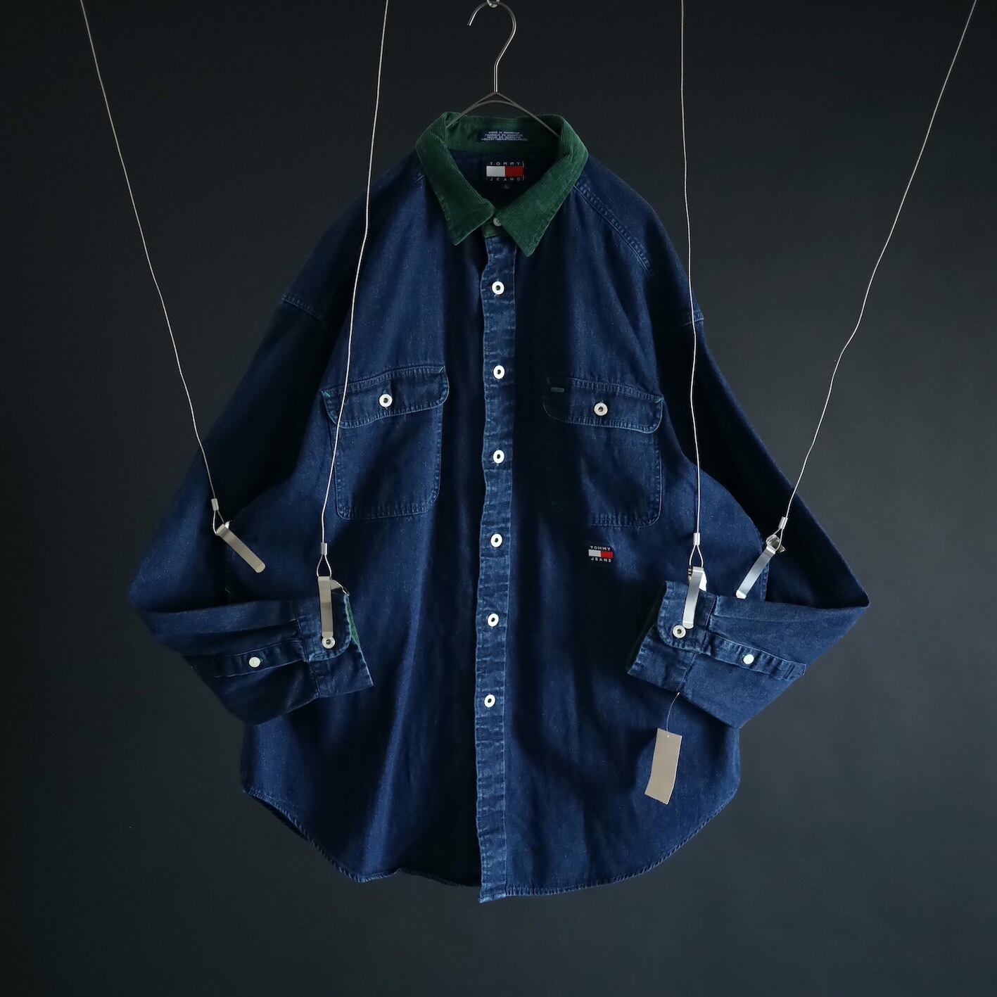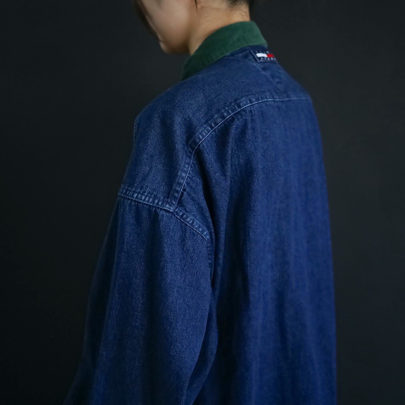 TOMMY JEANSより,濃いインディゴカラーデニムシャツ.