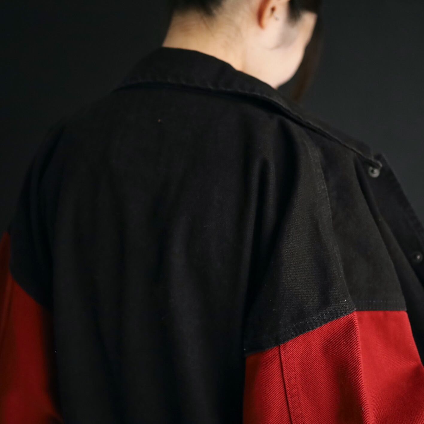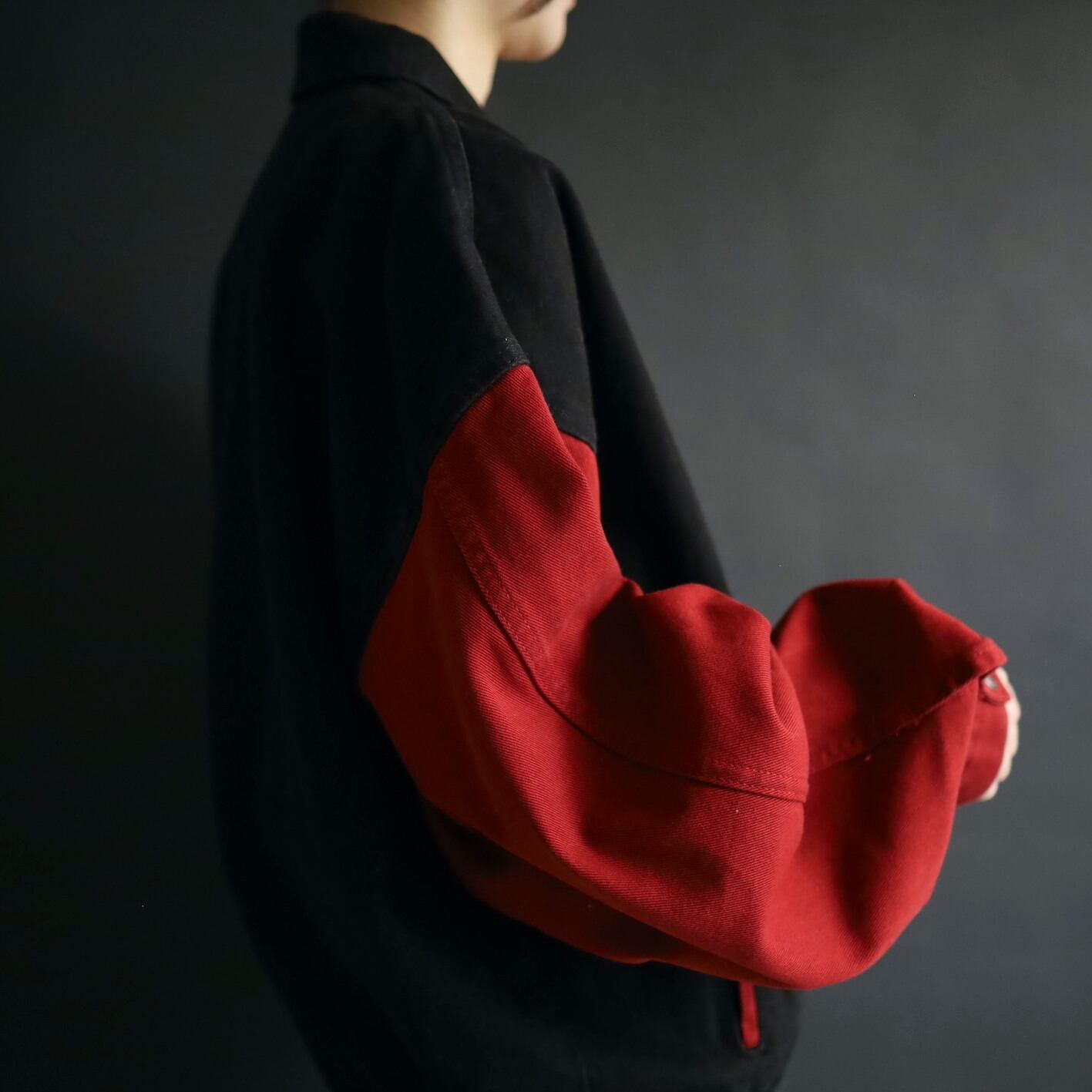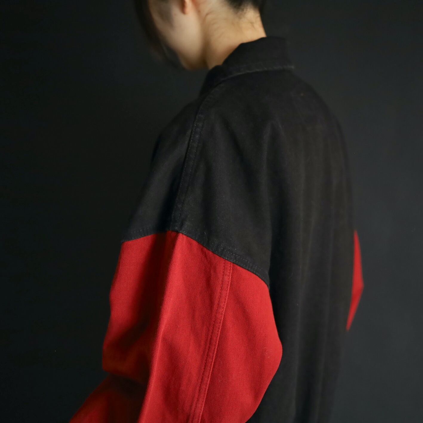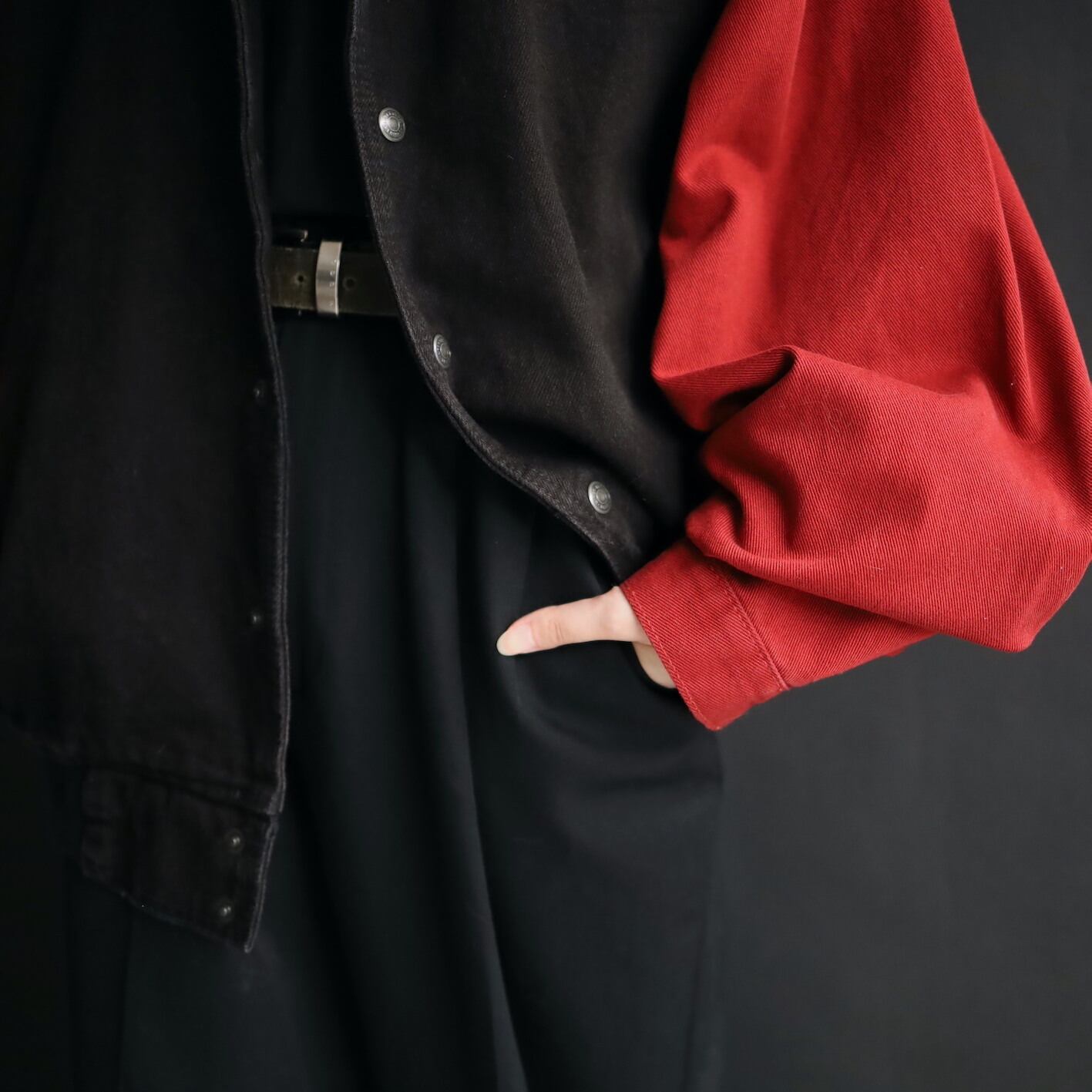 ボディブラック,アームはレッドデニム.