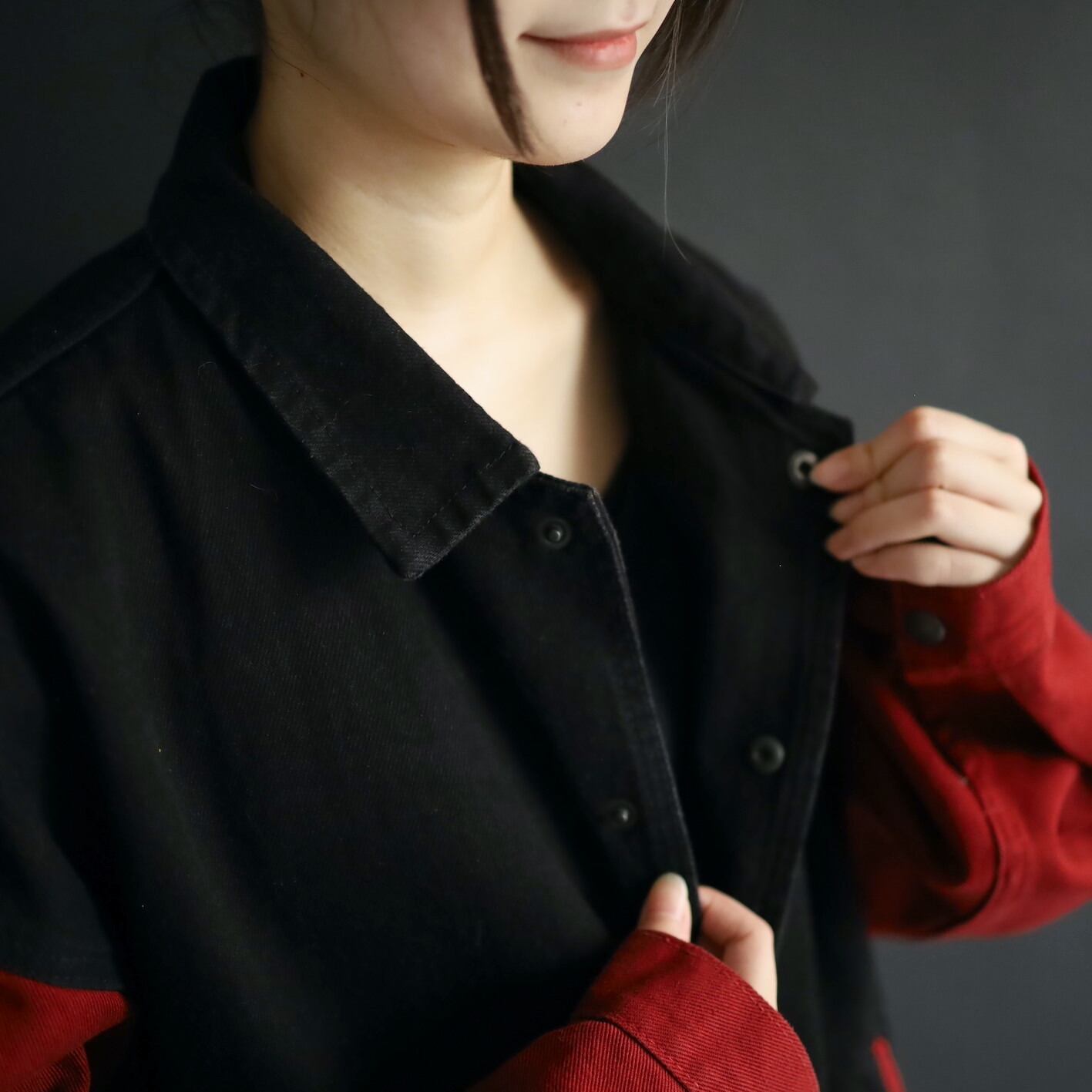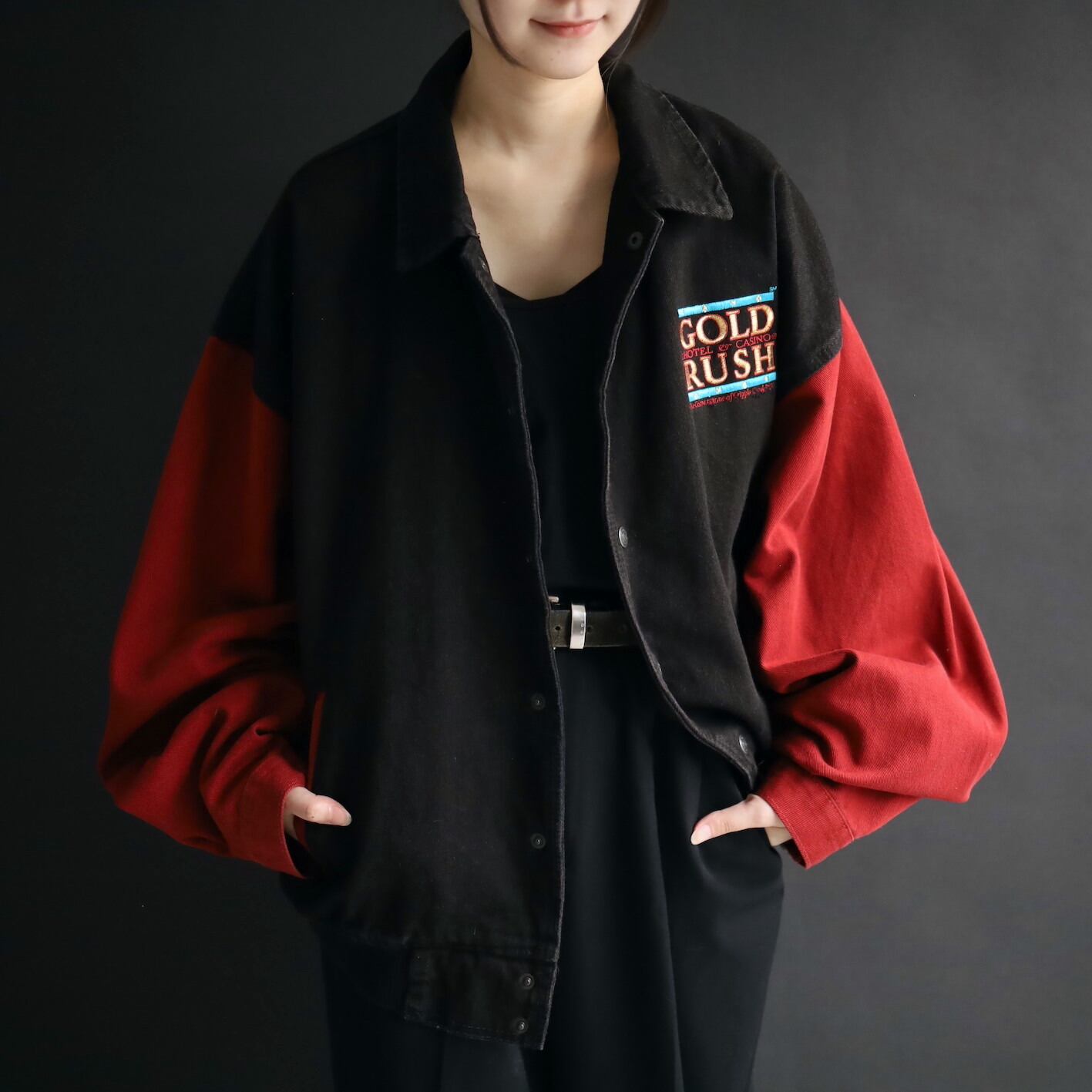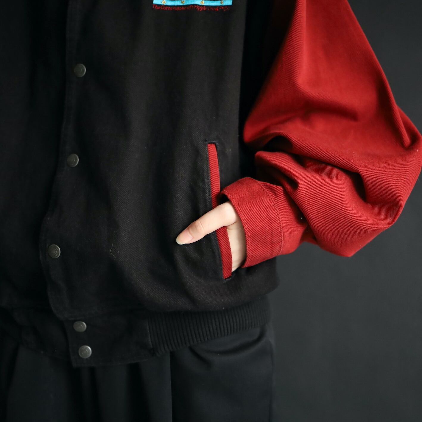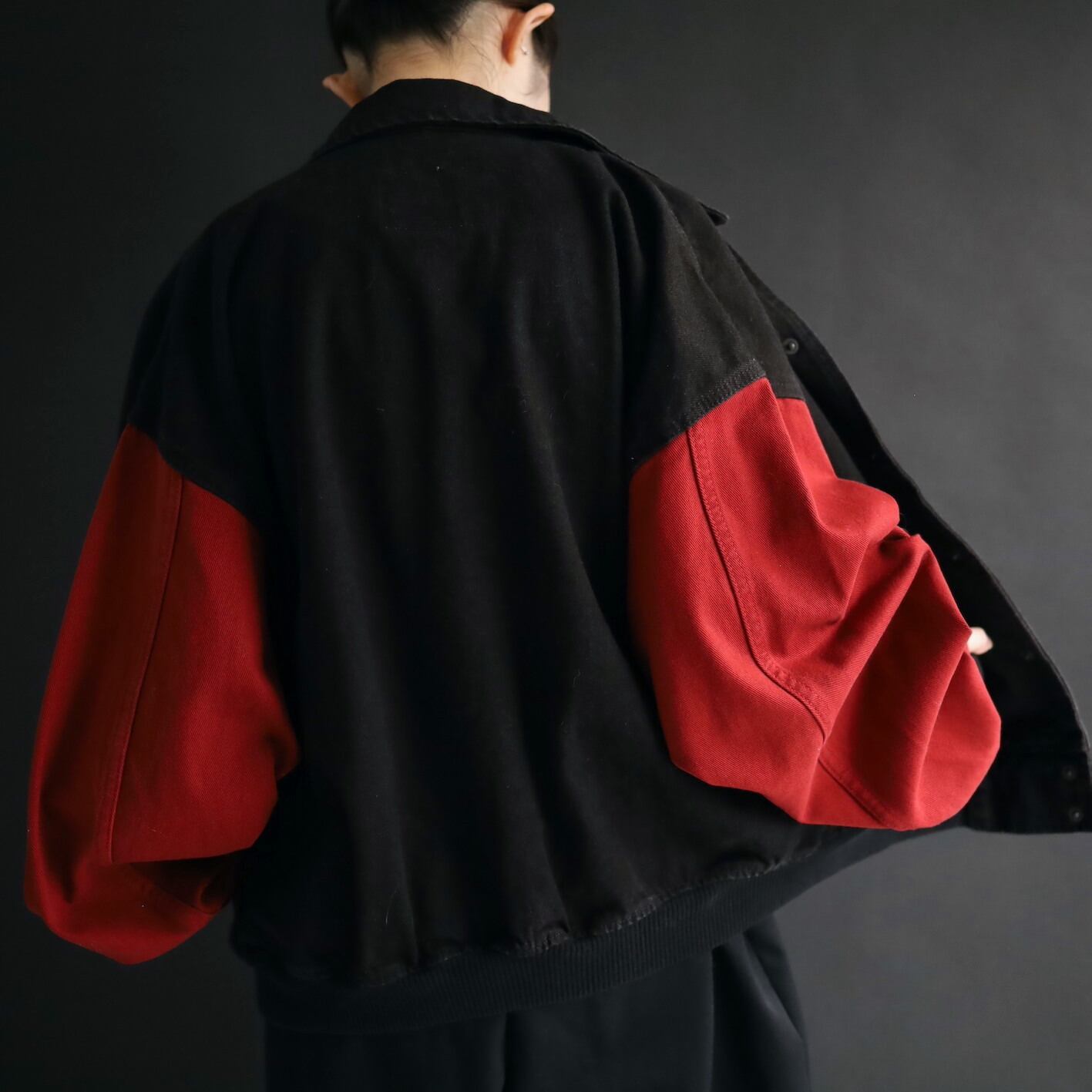 ボディブラック,アームはレッドデニム.