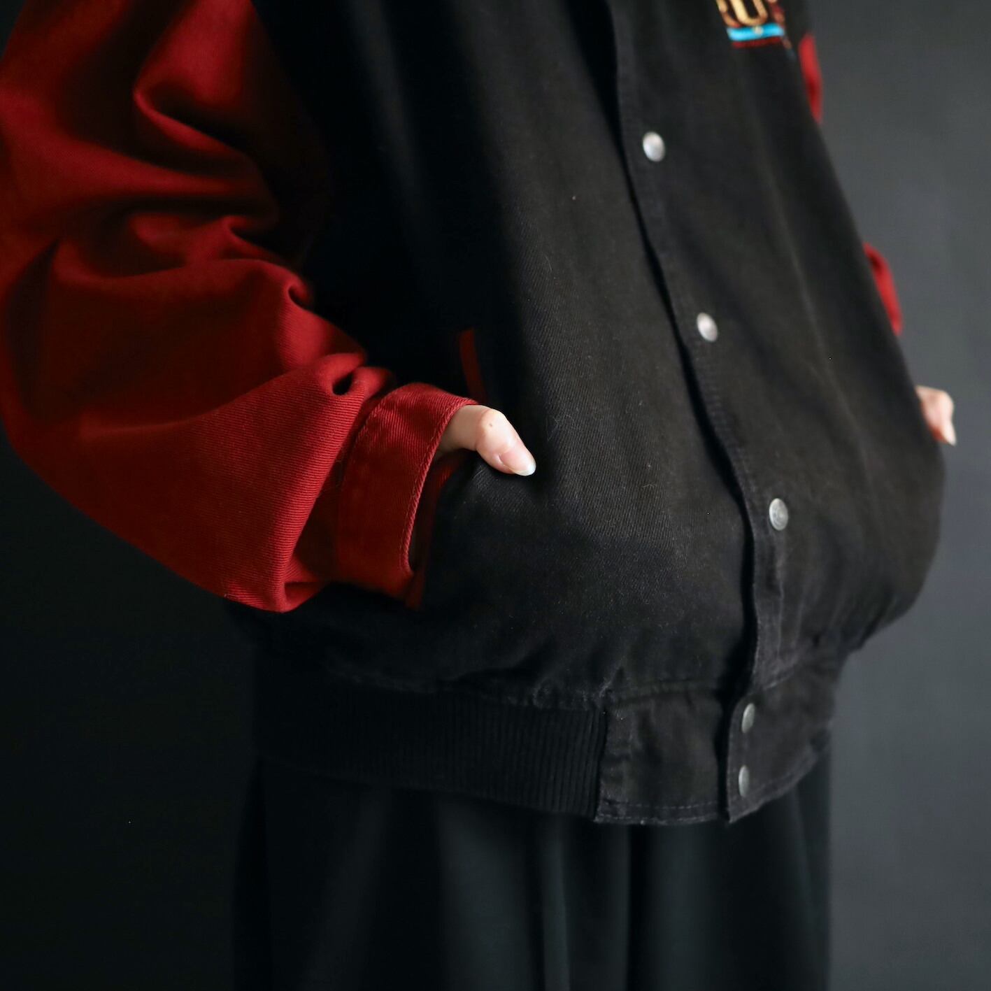 ブルーデニムとは全く違った印象に仕上がるスタジャン,お好きな方ぜひどーぞー.