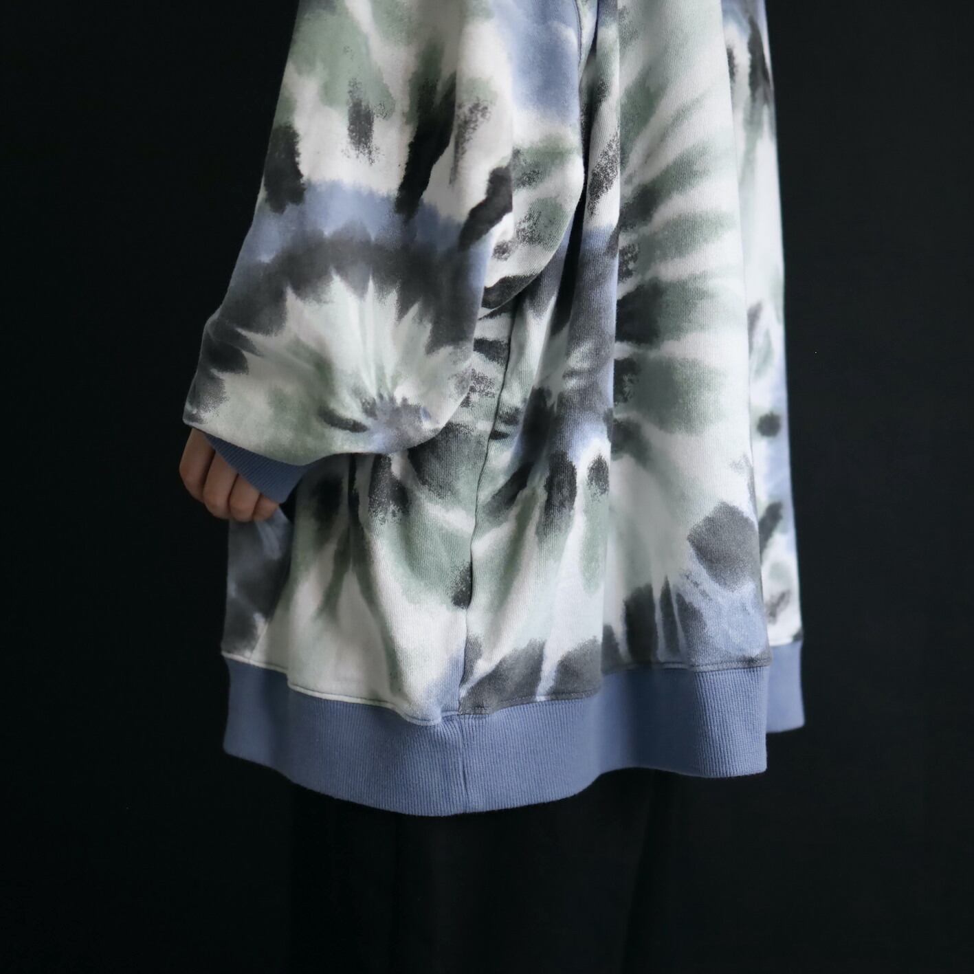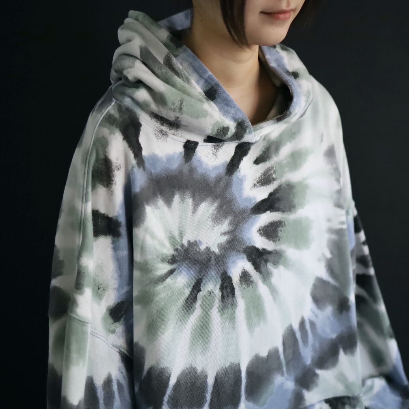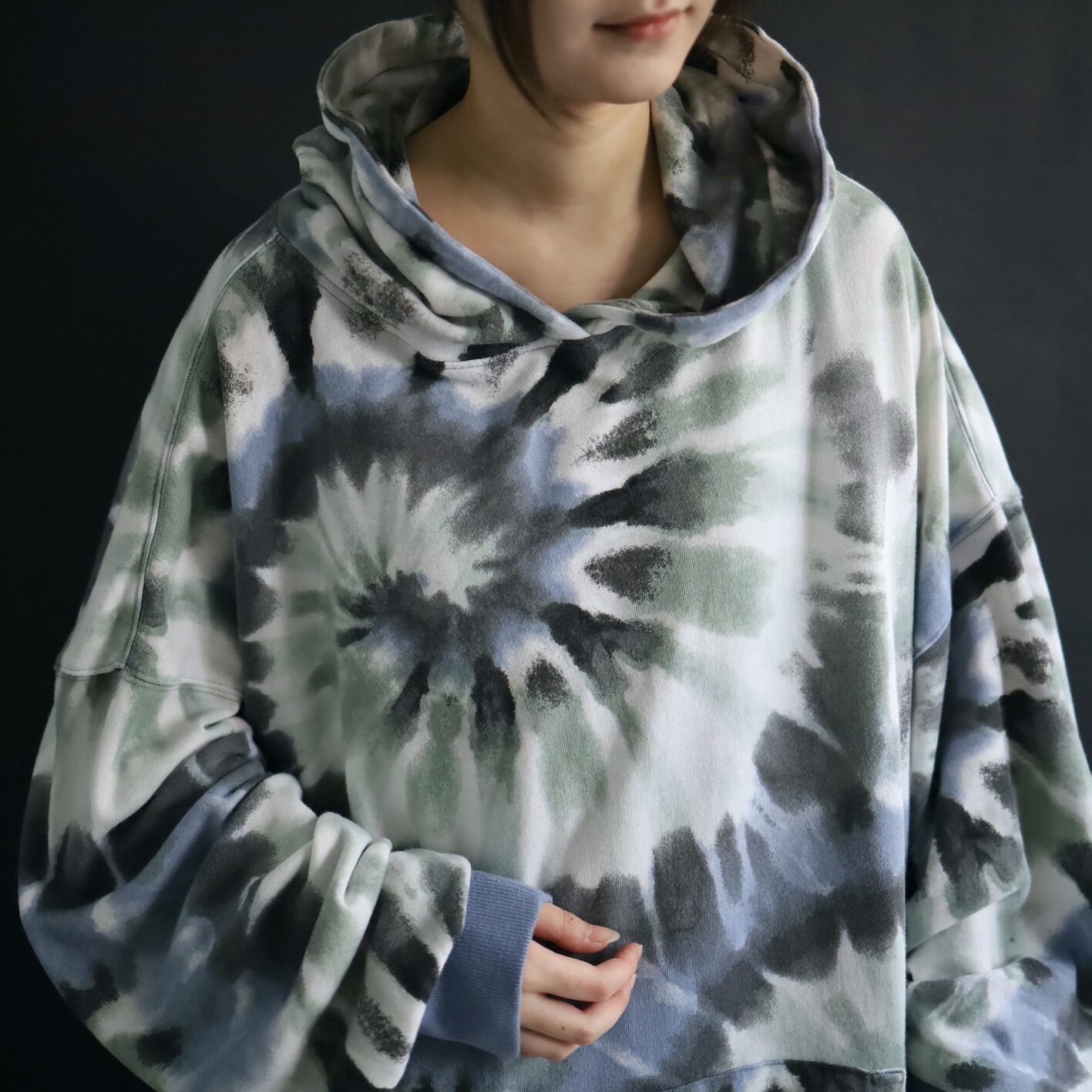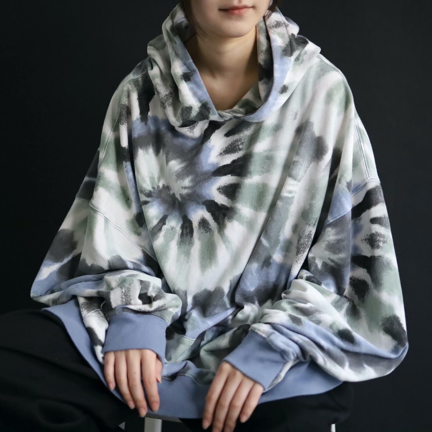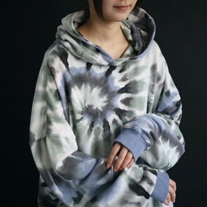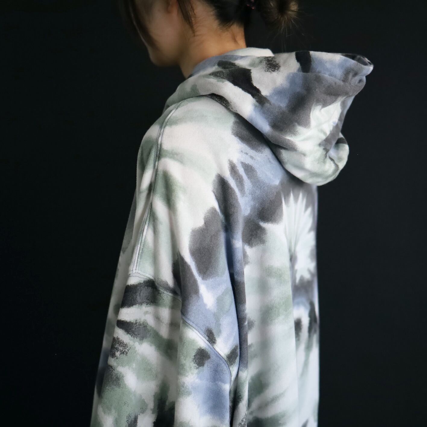 淡いグリーンとブルー,墨黒,ホワイトのタイダイ.