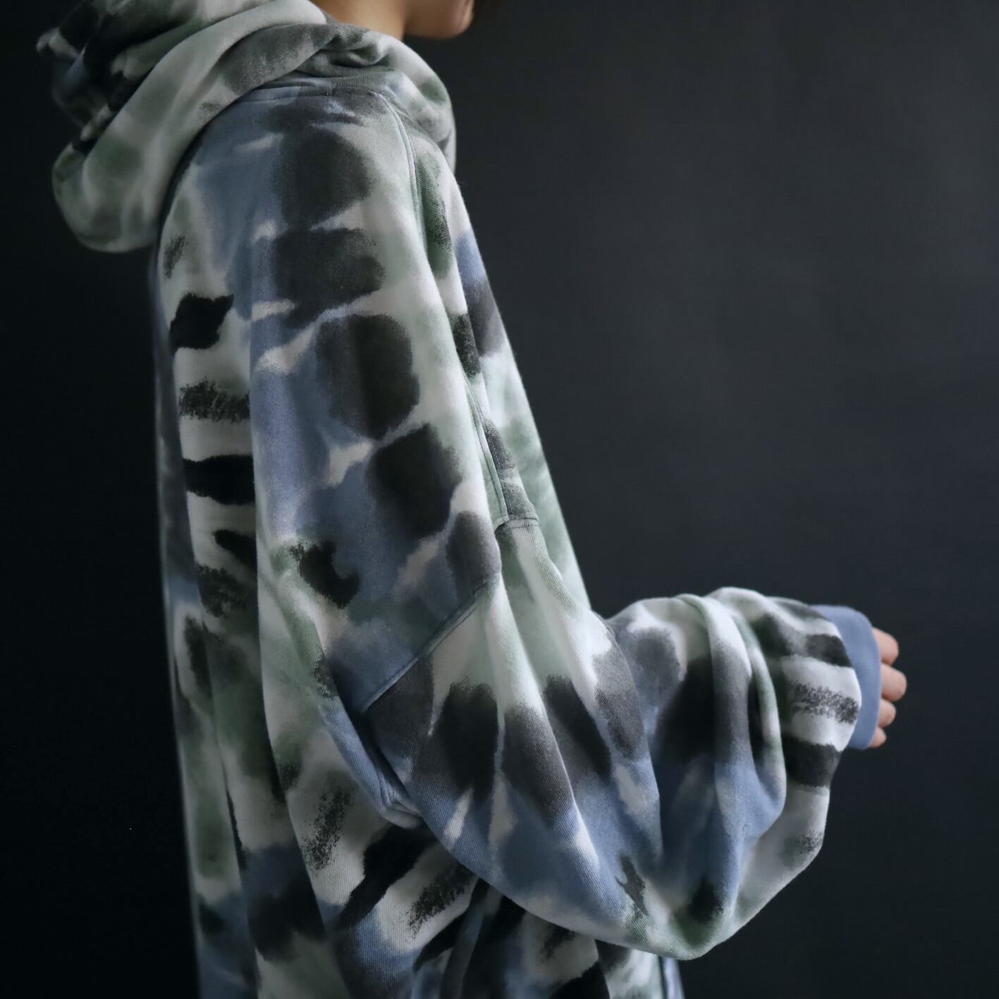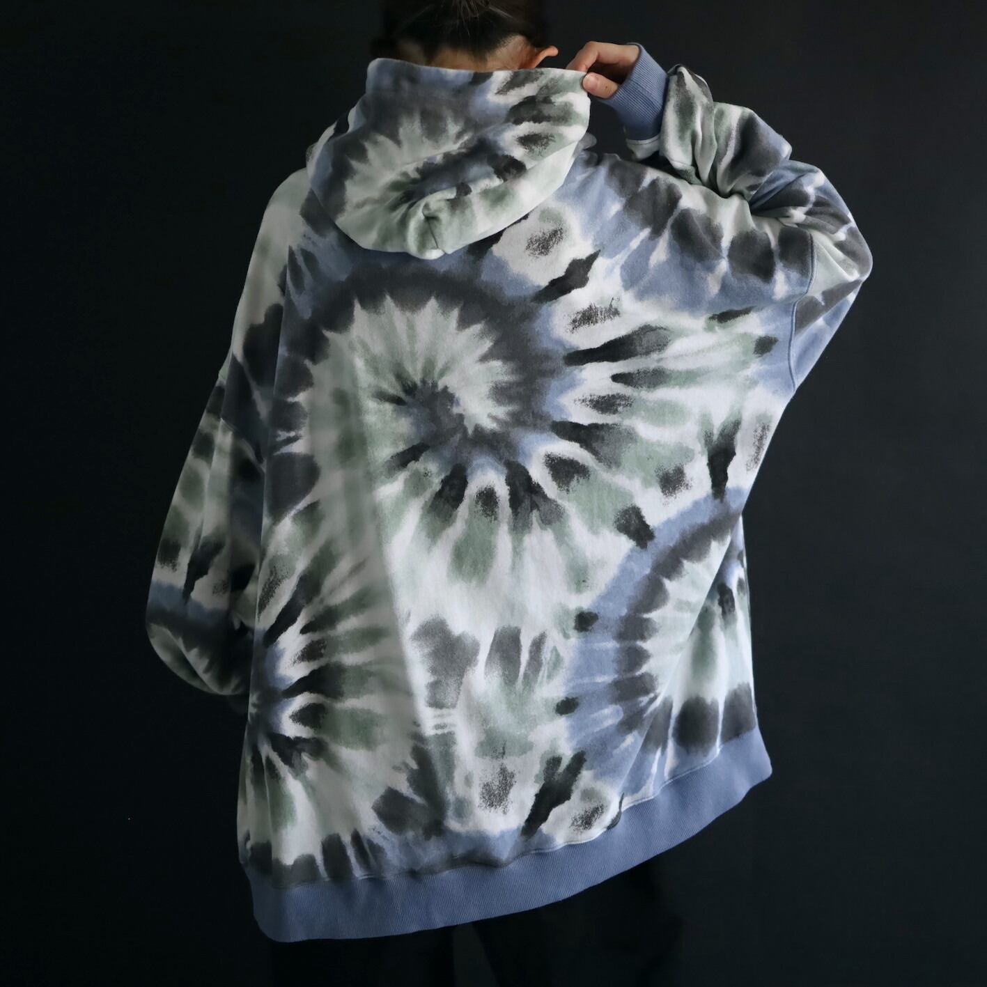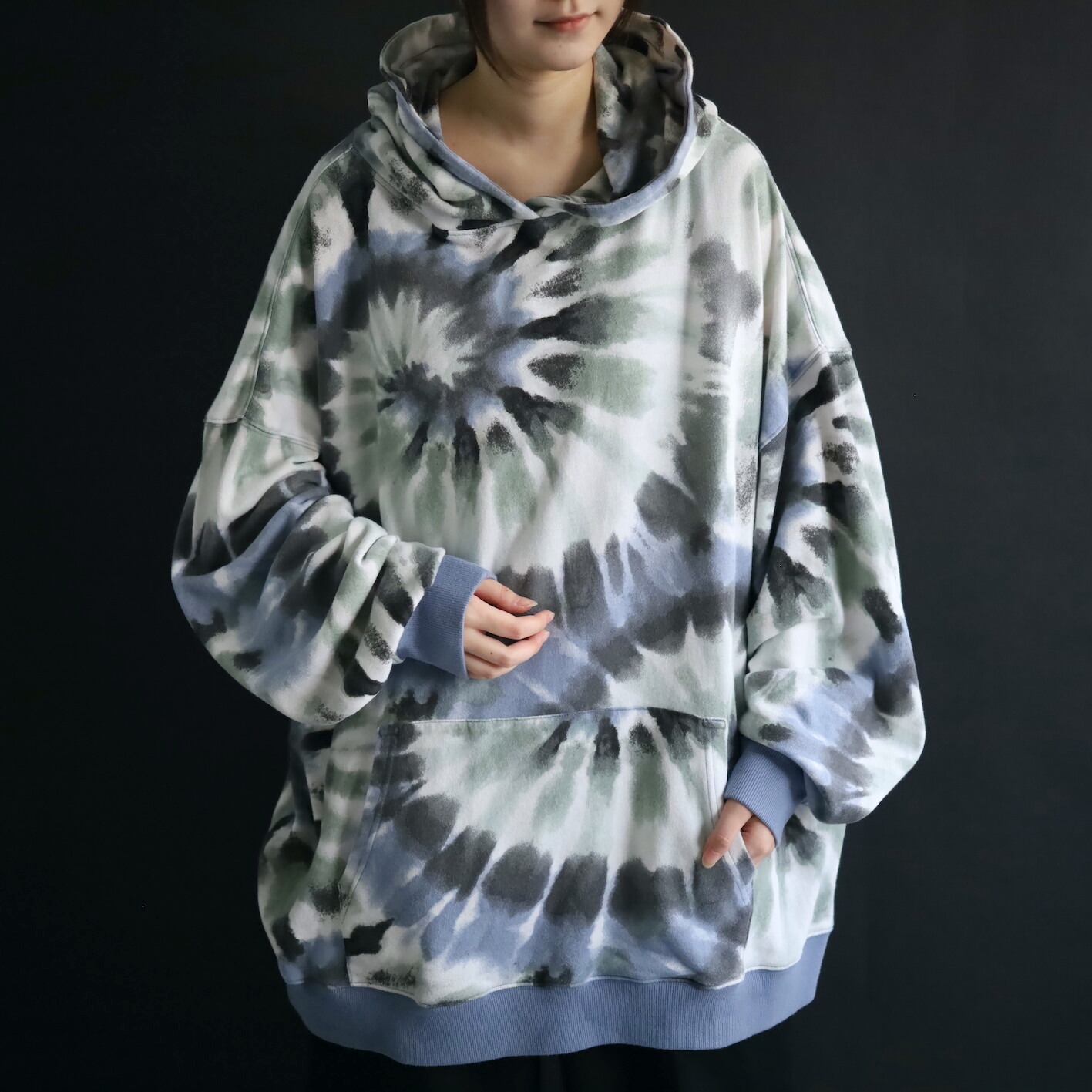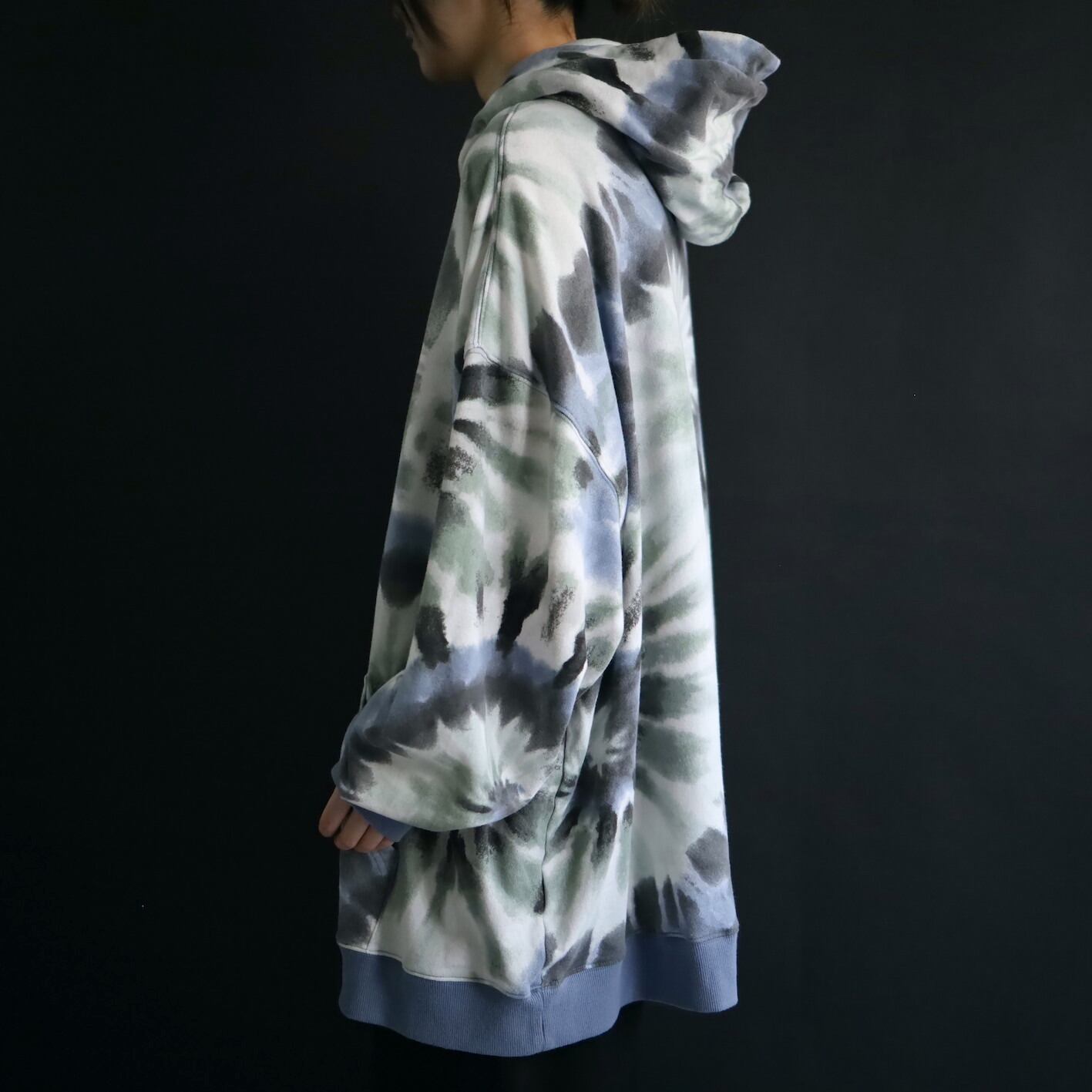 淡いグリーンとブルー,墨黒,ホワイトのタイダイ.