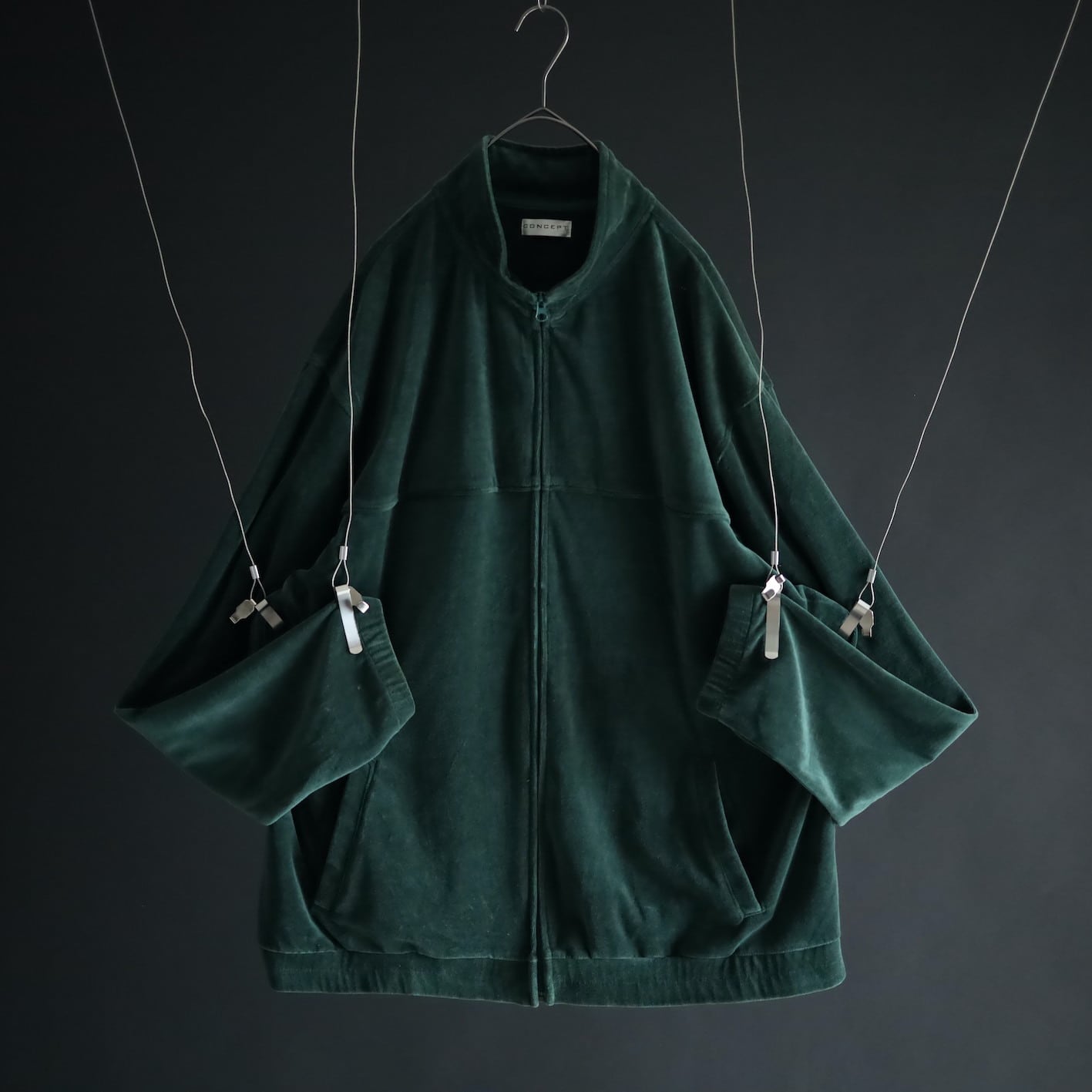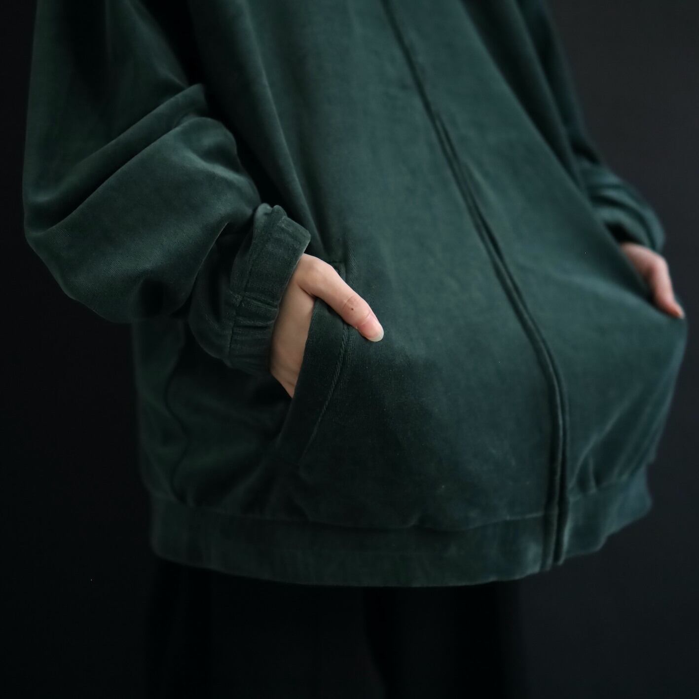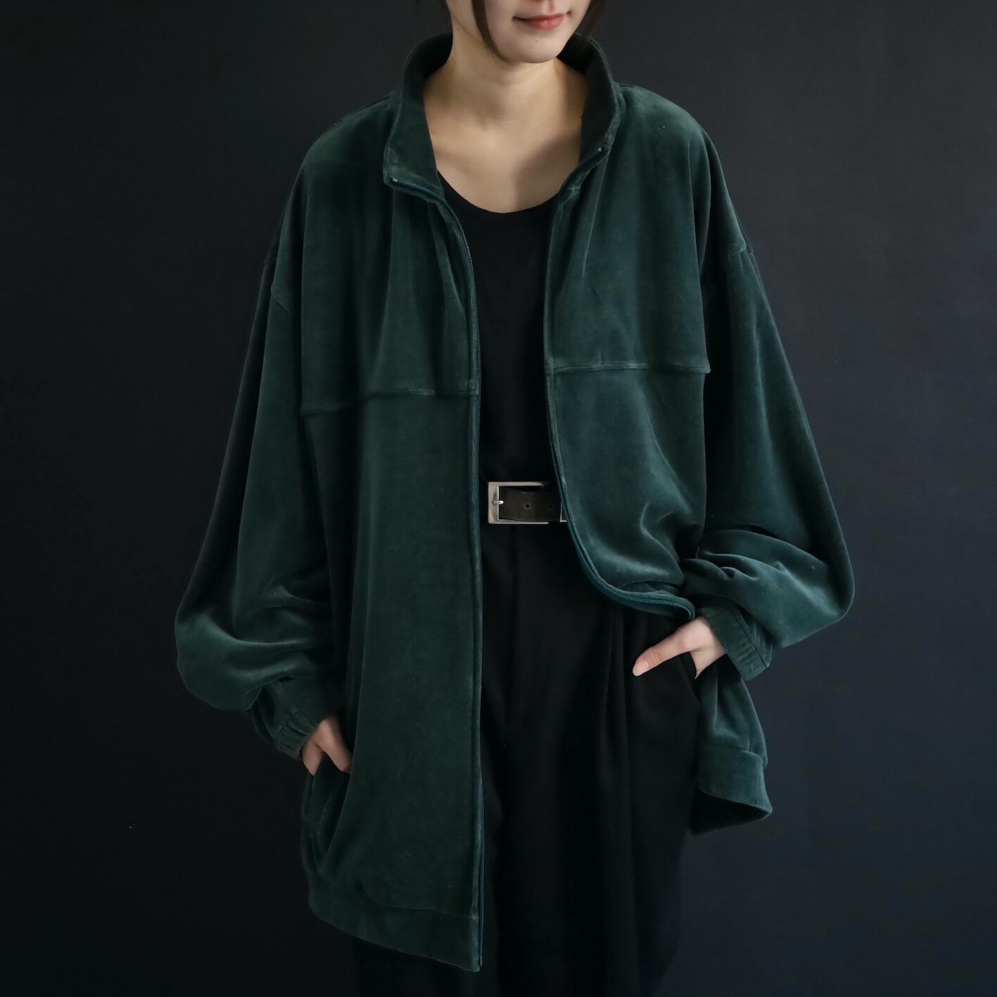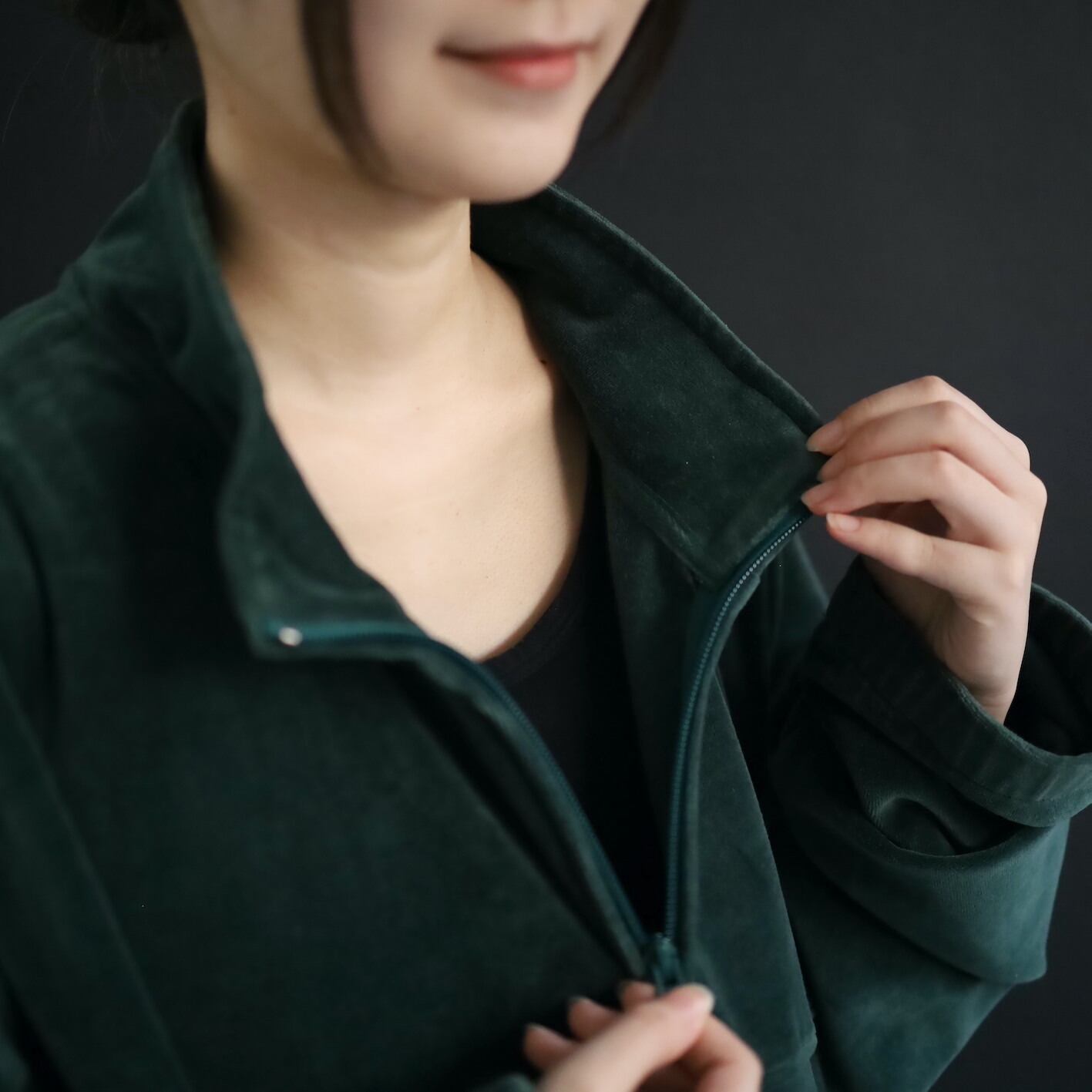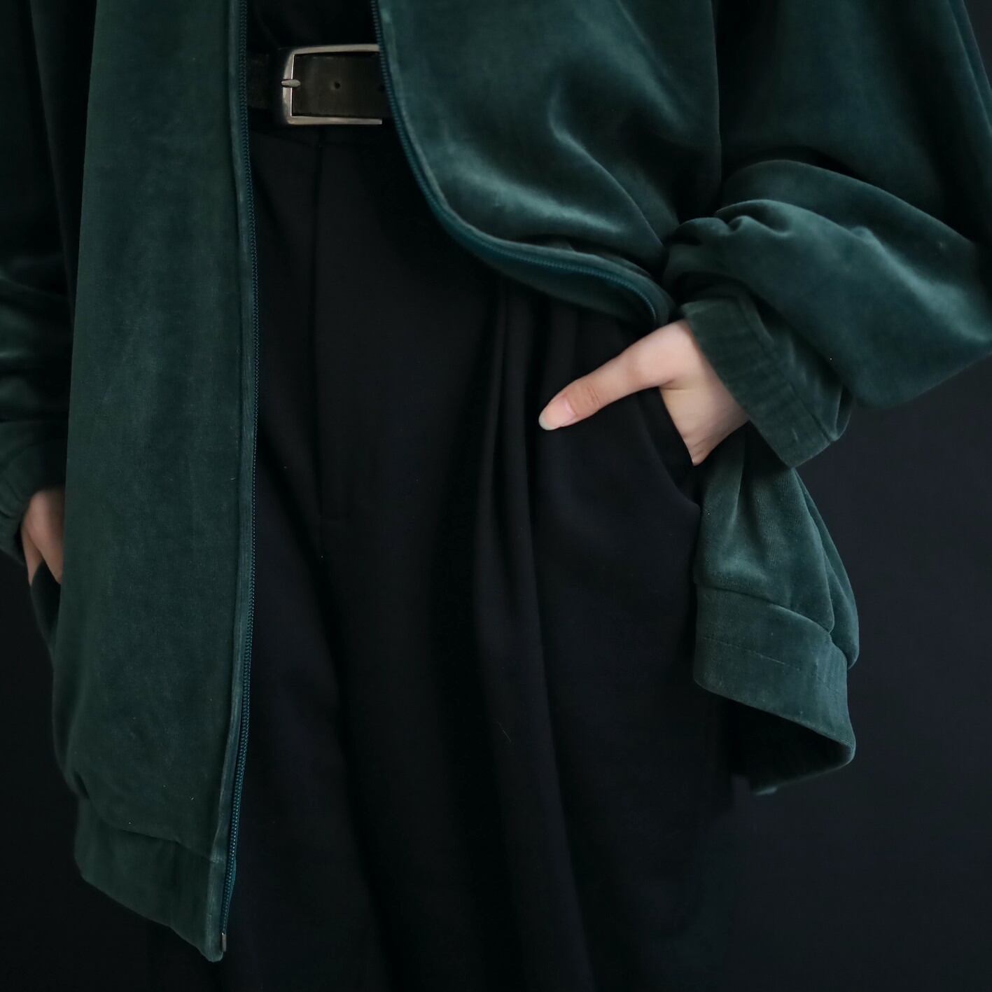 異素材系,ベロアのジップアップブルゾン.