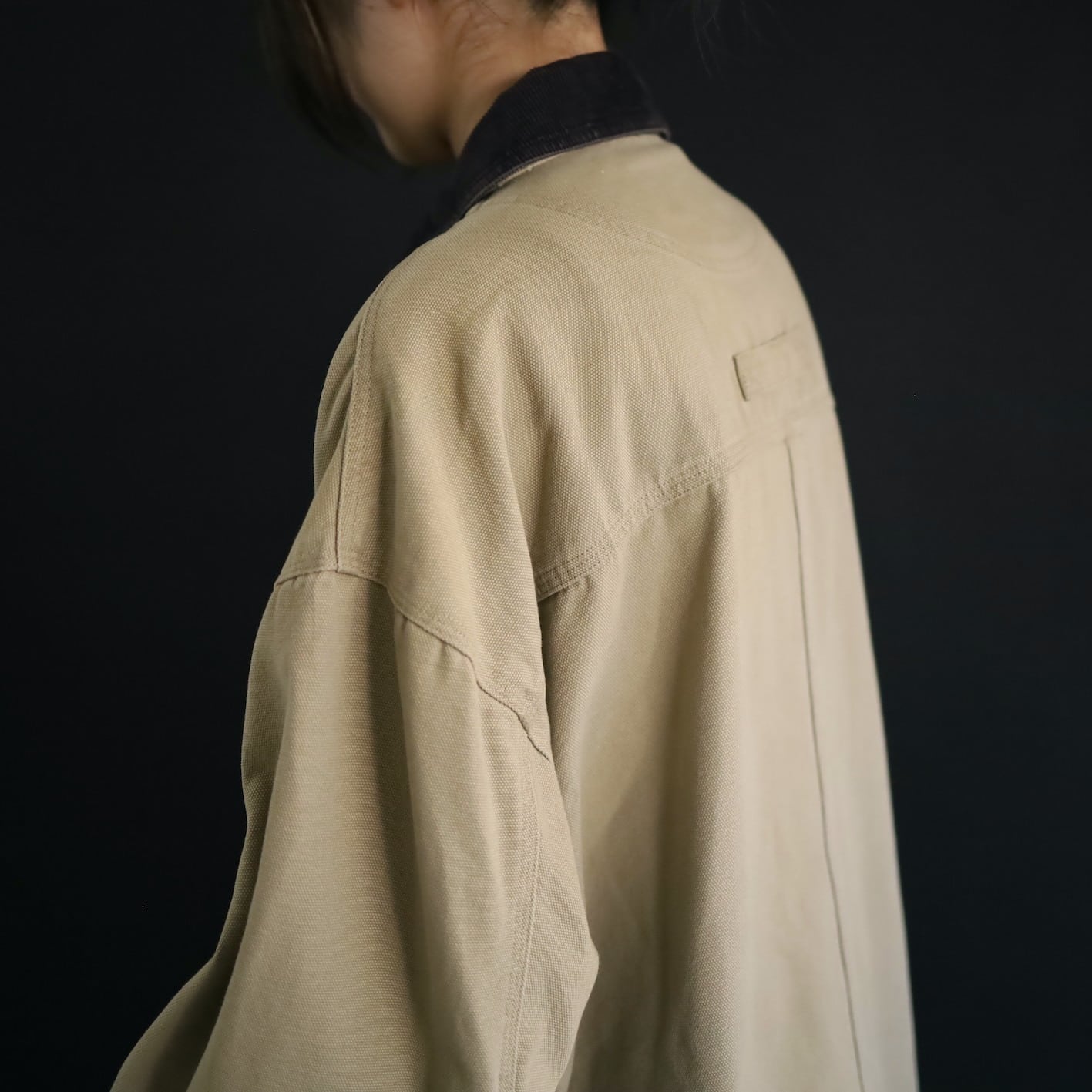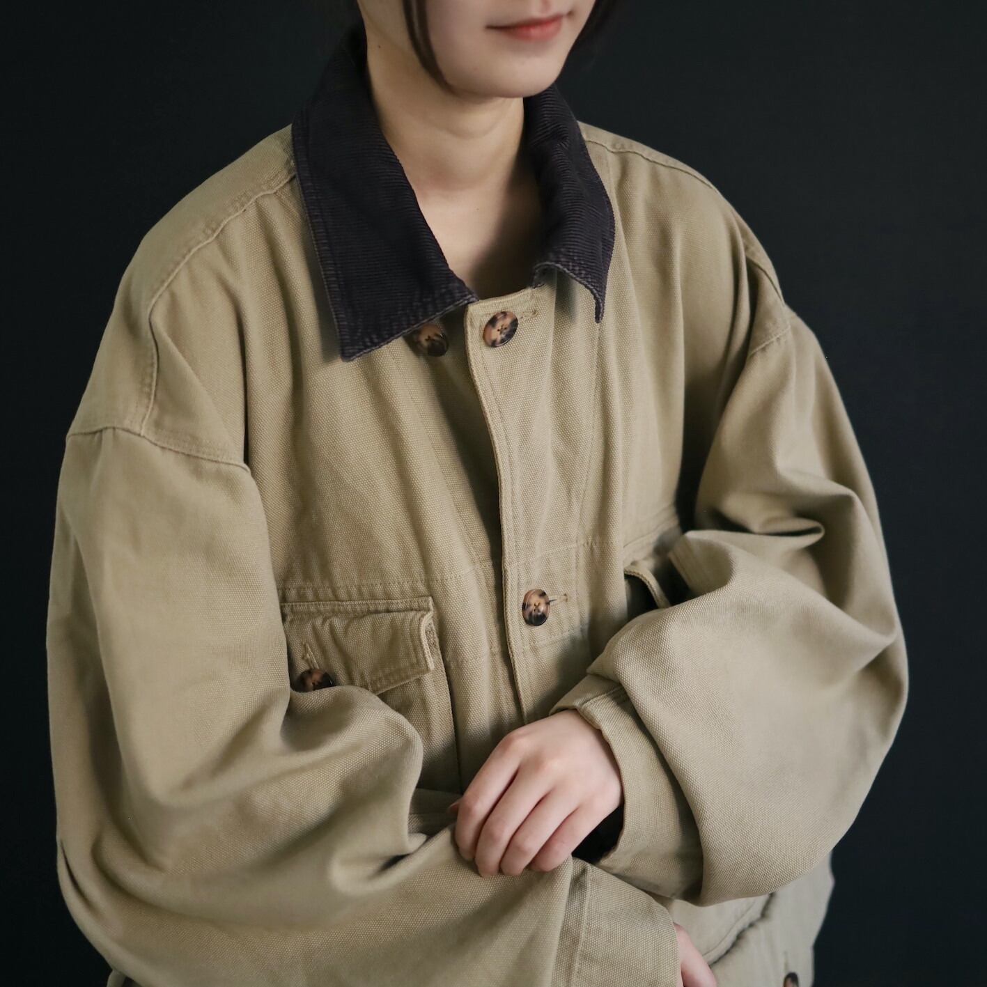 襟のみ墨黒のコーデュロイ切替で,引き締まるところは引き締まったいいバランス.