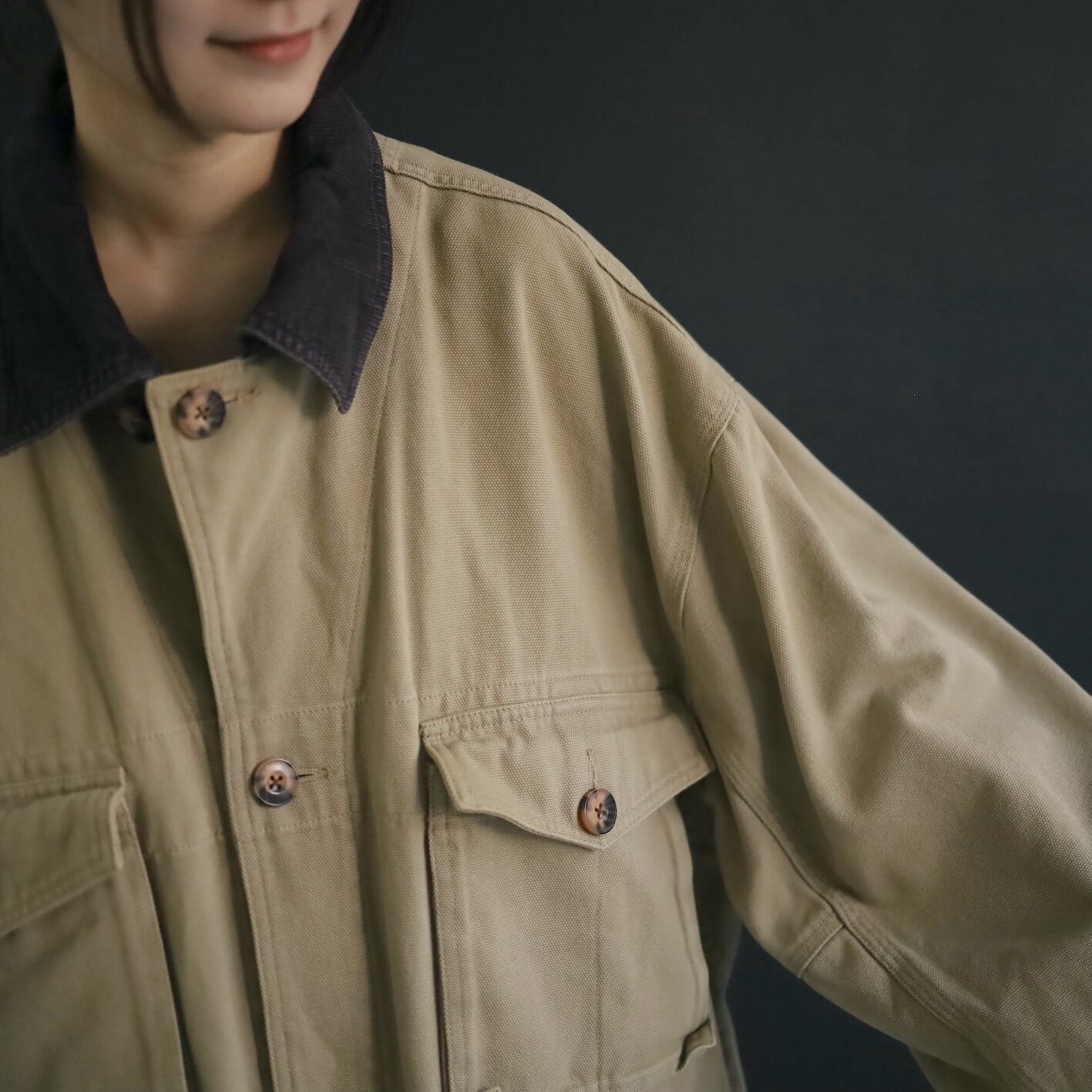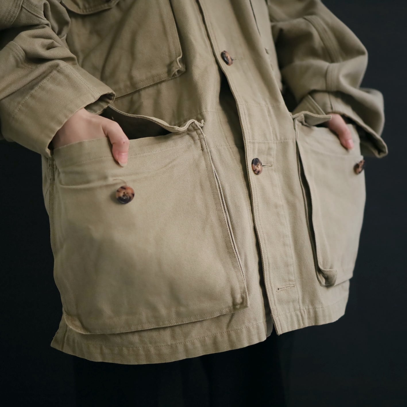 ハンティング系は元来なかなかゴツゴツしい印象ですが,こちらはコットン生地が比較的柔らかく,シルエットも同様に落ち着いてくれてます.