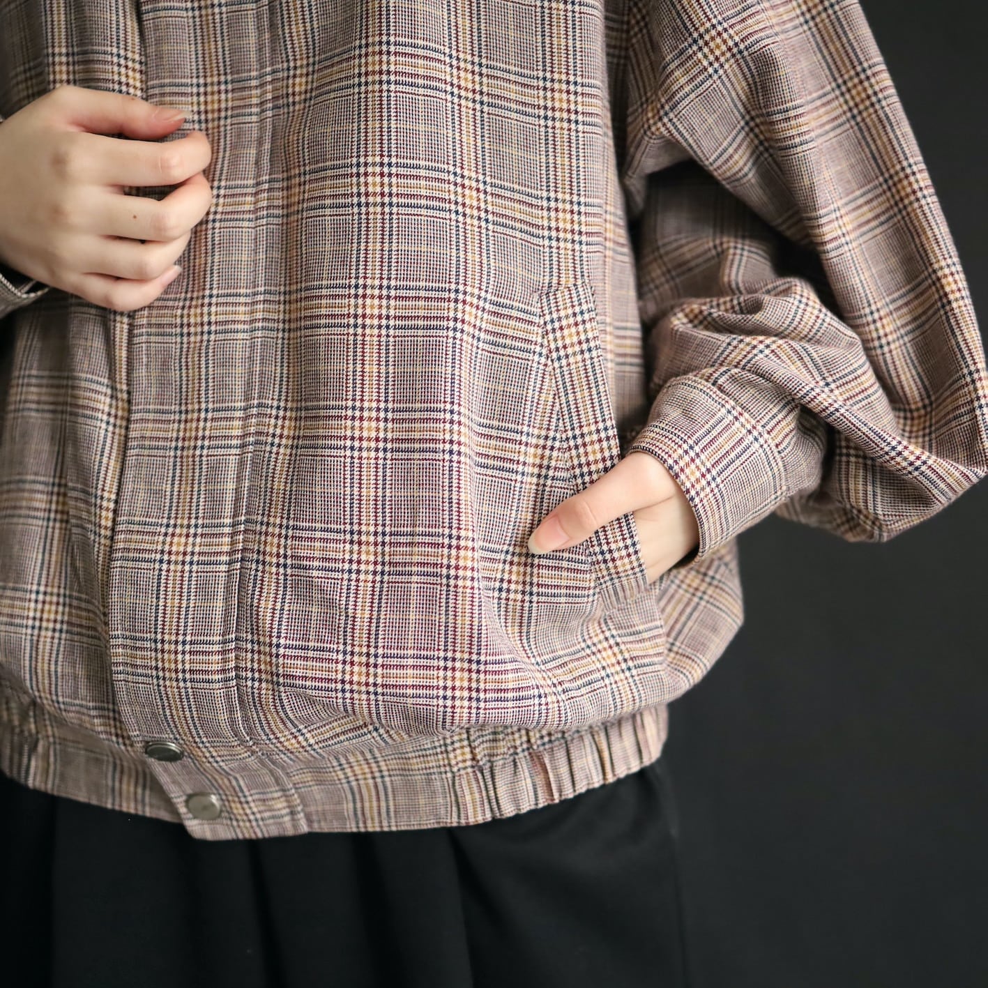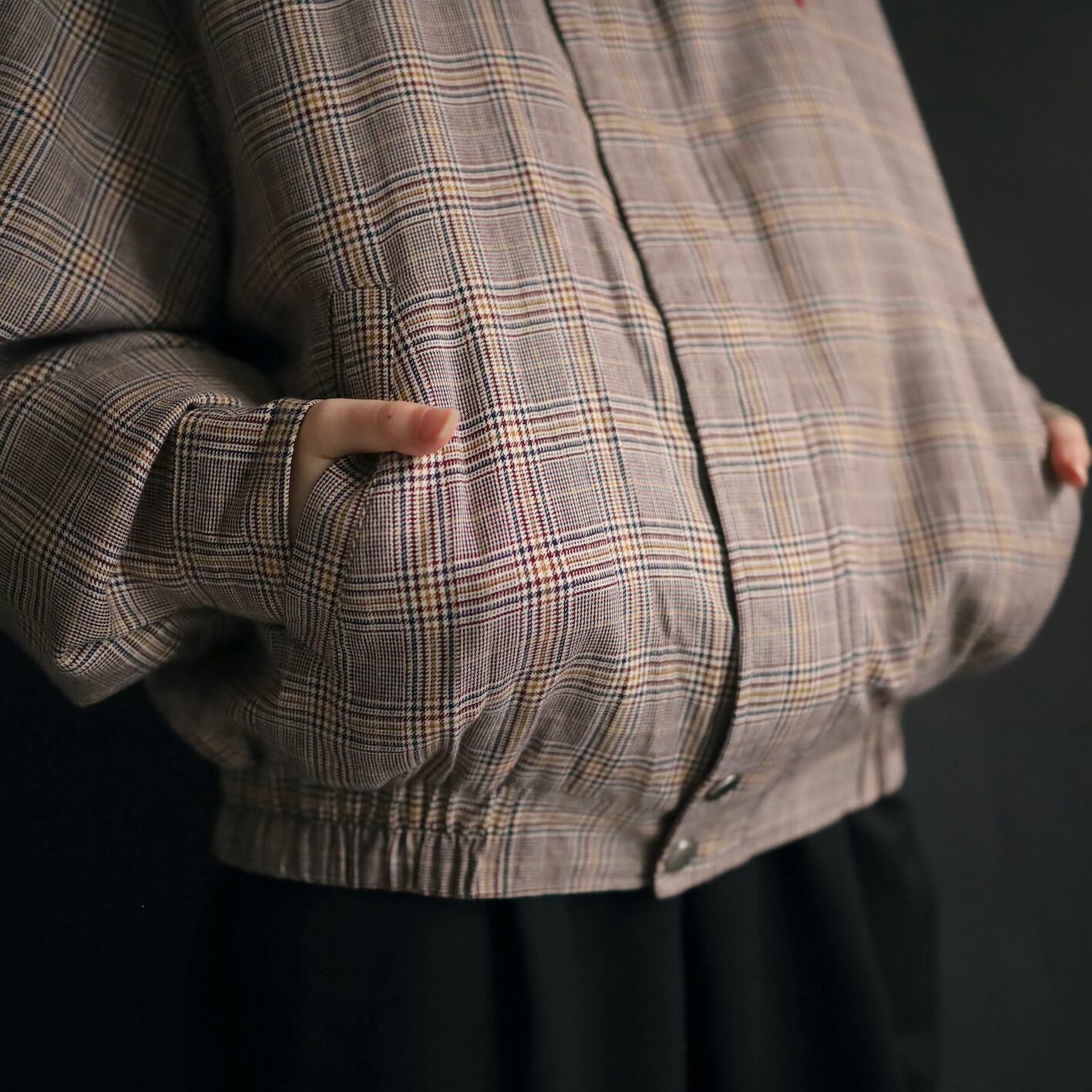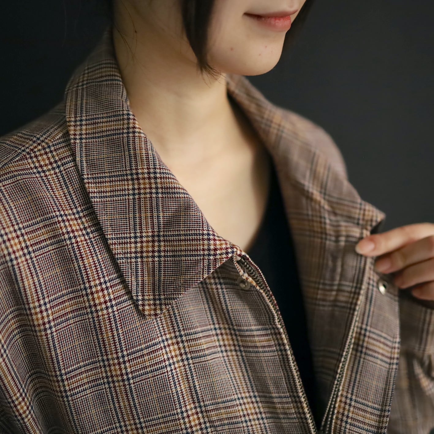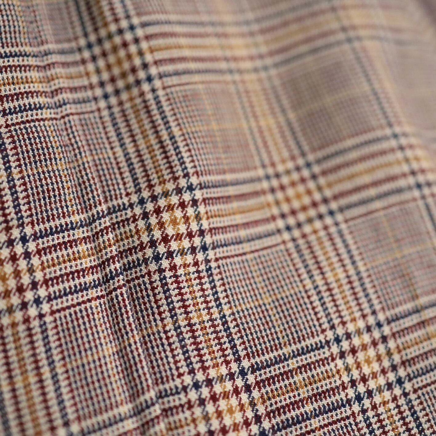 ボルドー,ベージュ,ネイビー,マスタードの細かい格子を組み合わせたグレンチェック.