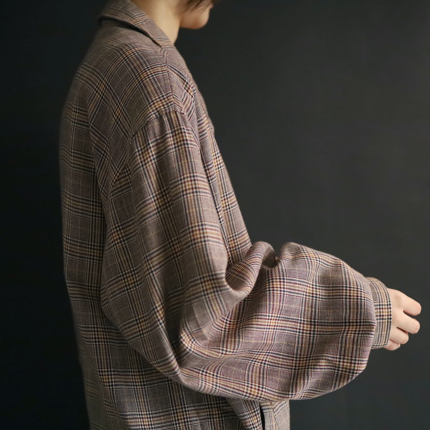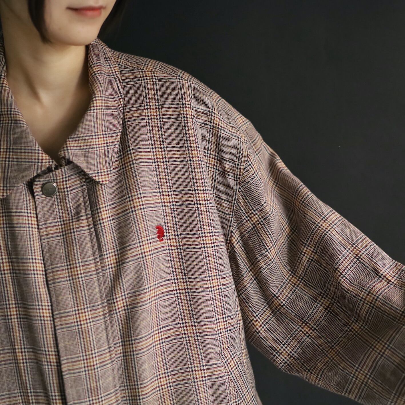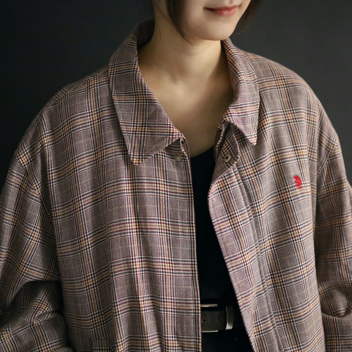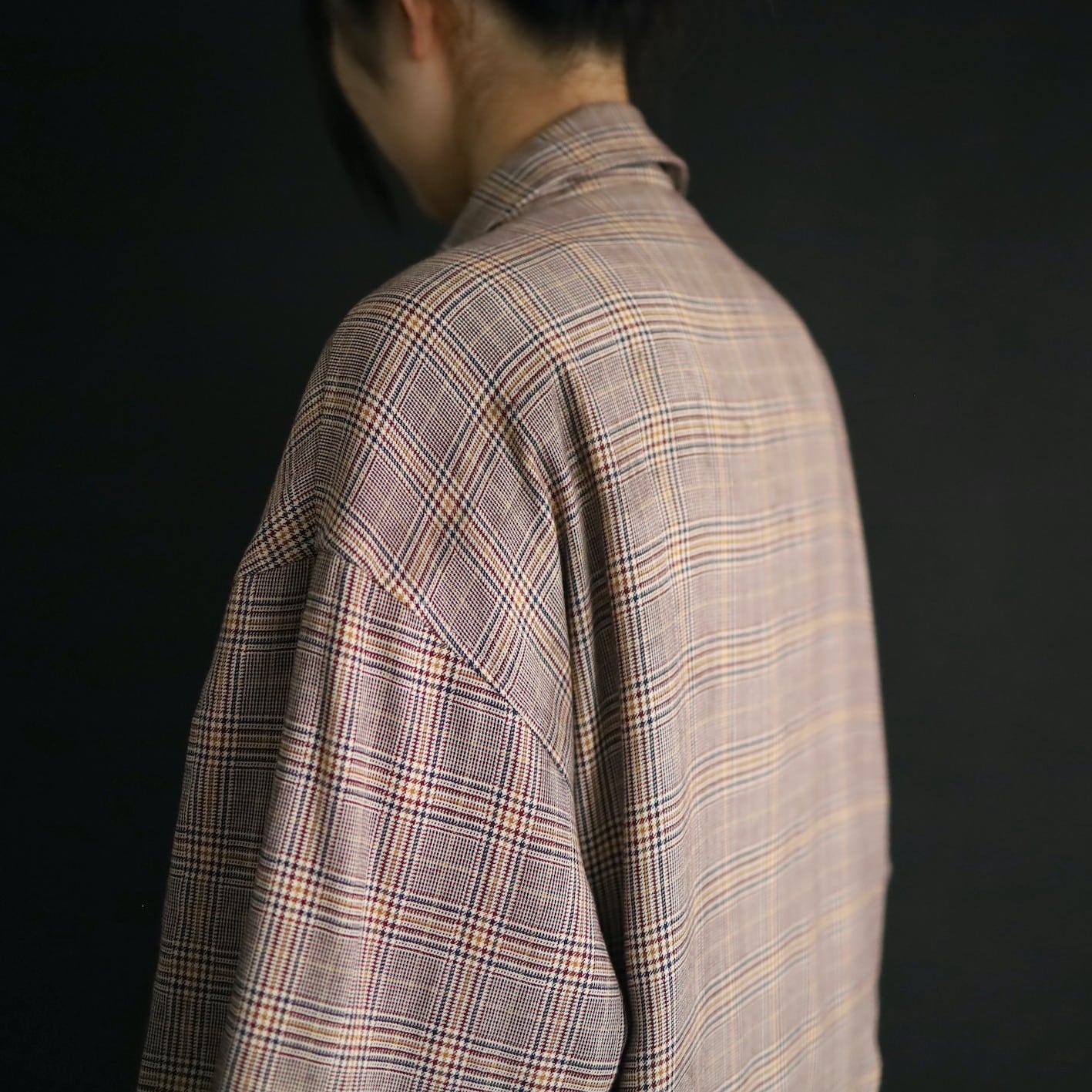 ボルドー,ベージュ,ネイビー,マスタードの細かい格子を組み合わせたグレンチェック.