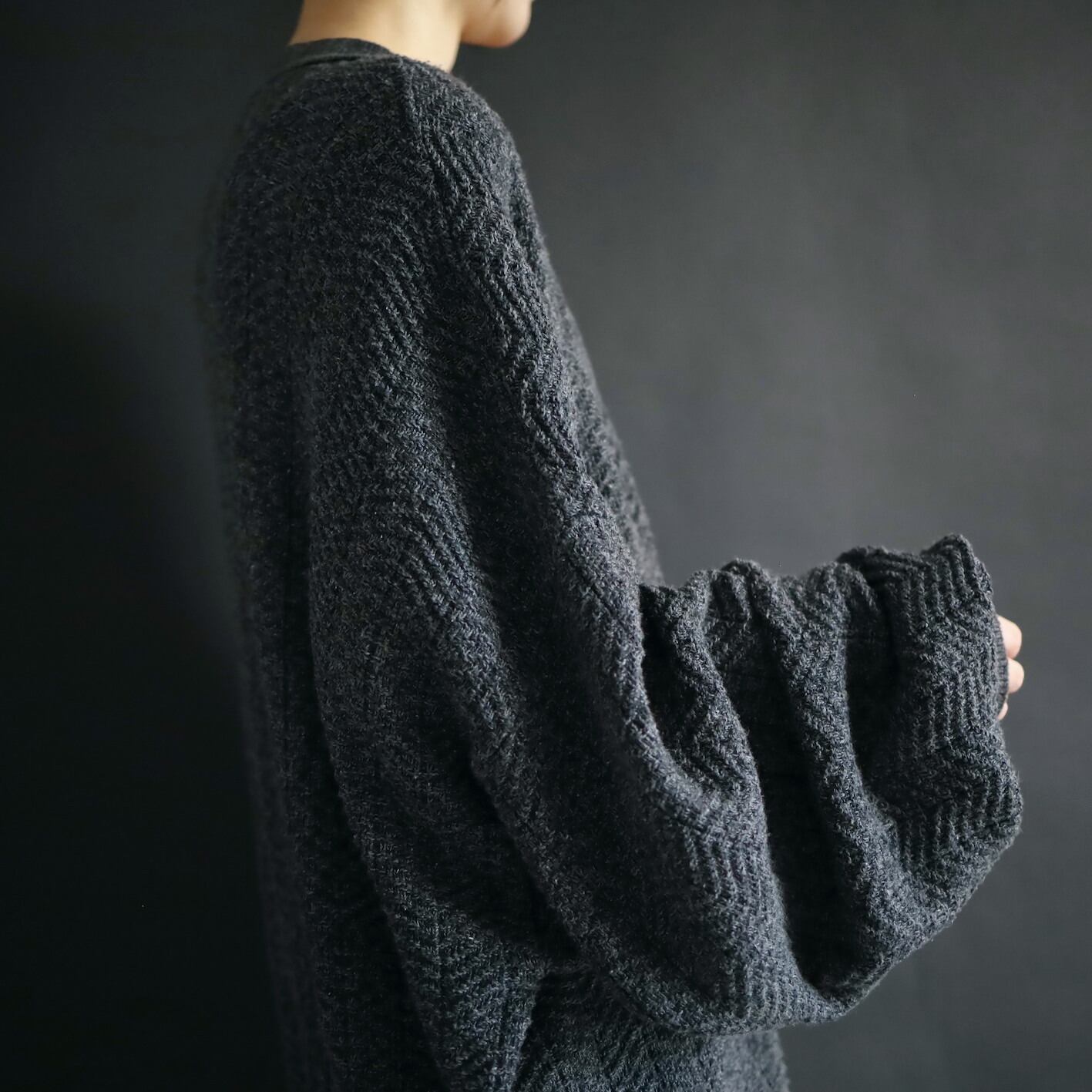 ざっくり編み込まれたもったりとしたルックスが特徴的.