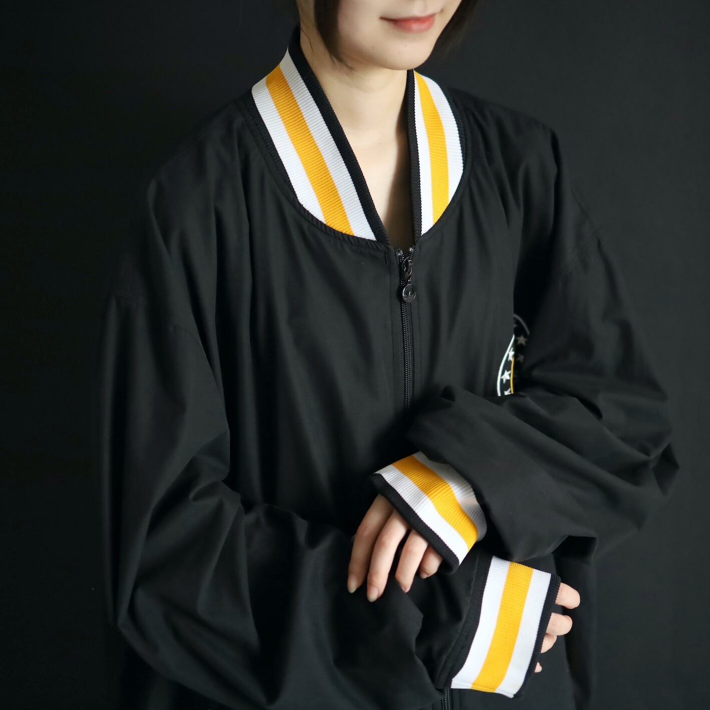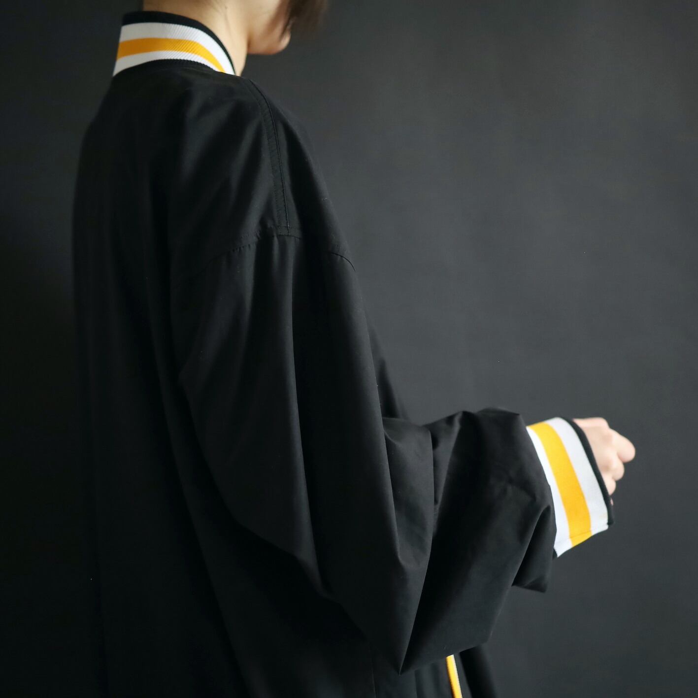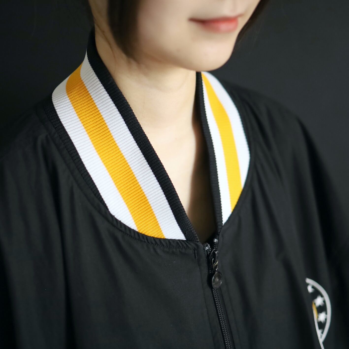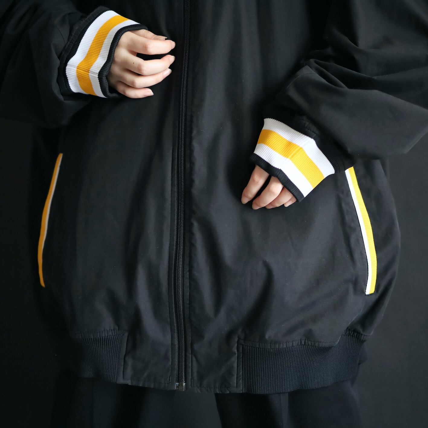 首周りと袖先のリブ,加えてポケットの入り口が,ホワイト×イエローのライン切替.