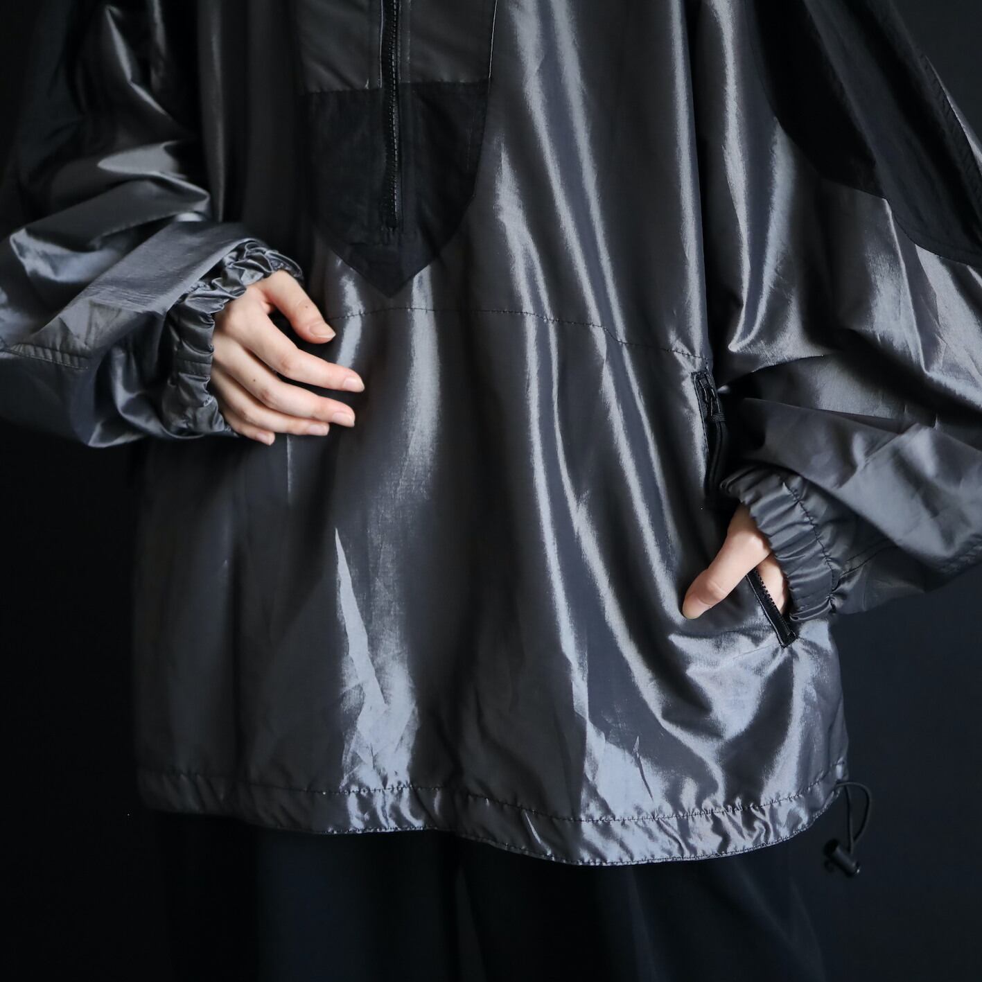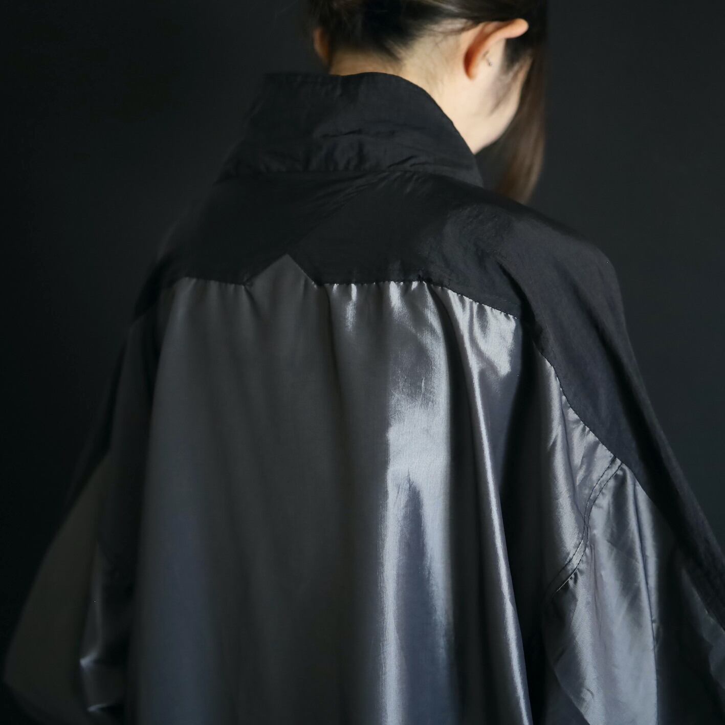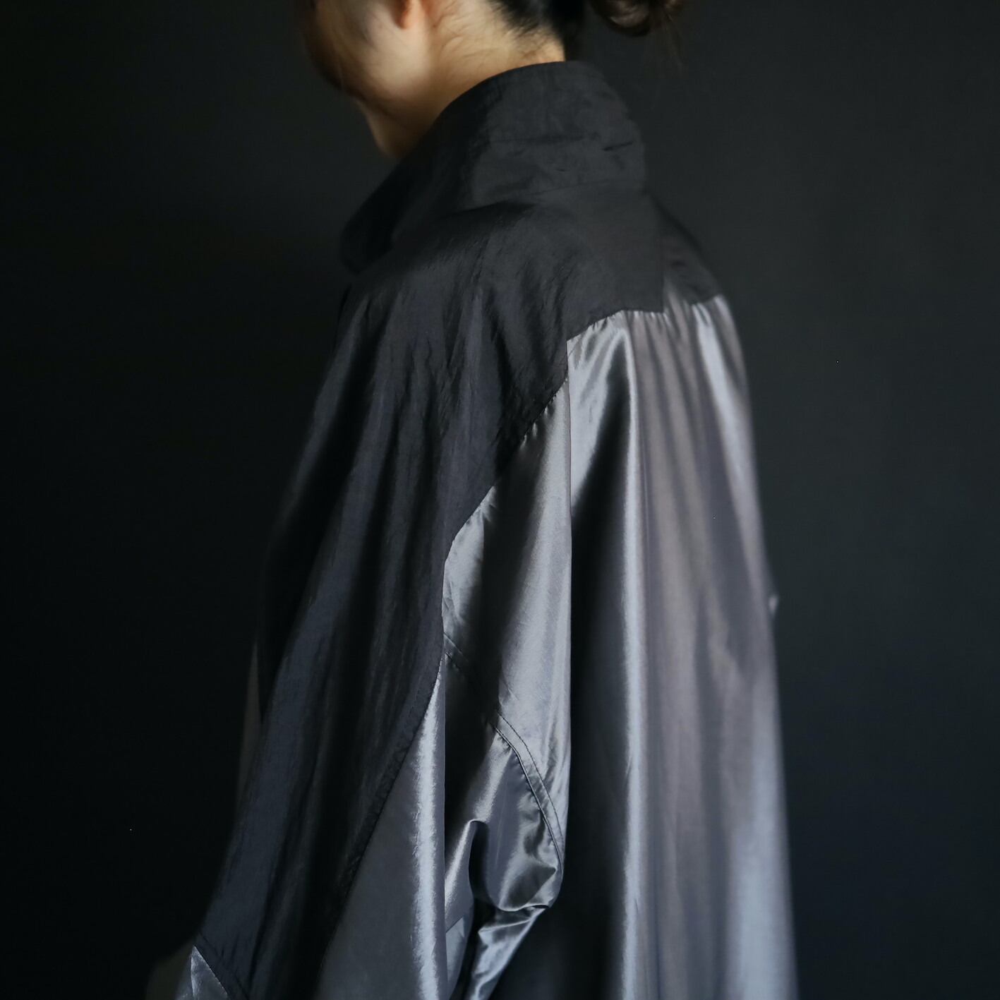 光沢感のあるメタルグレーとブラックのバイカラー.