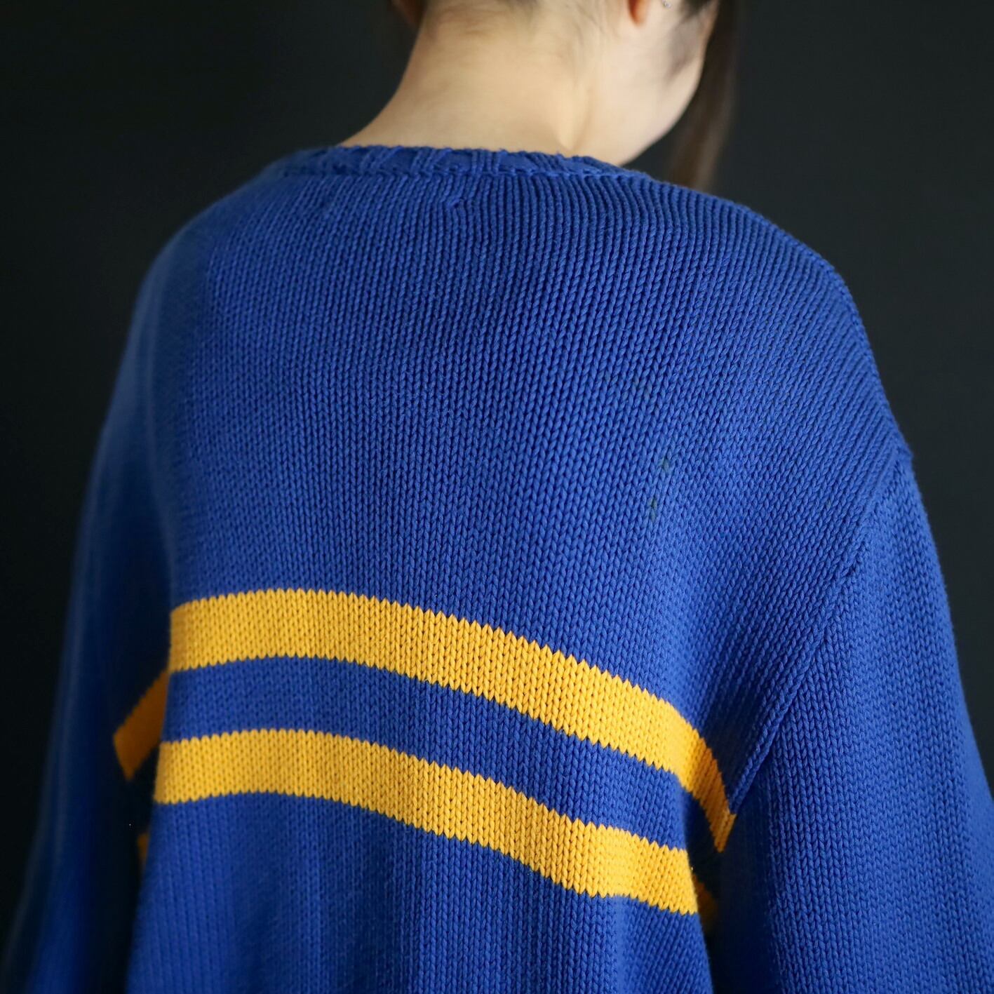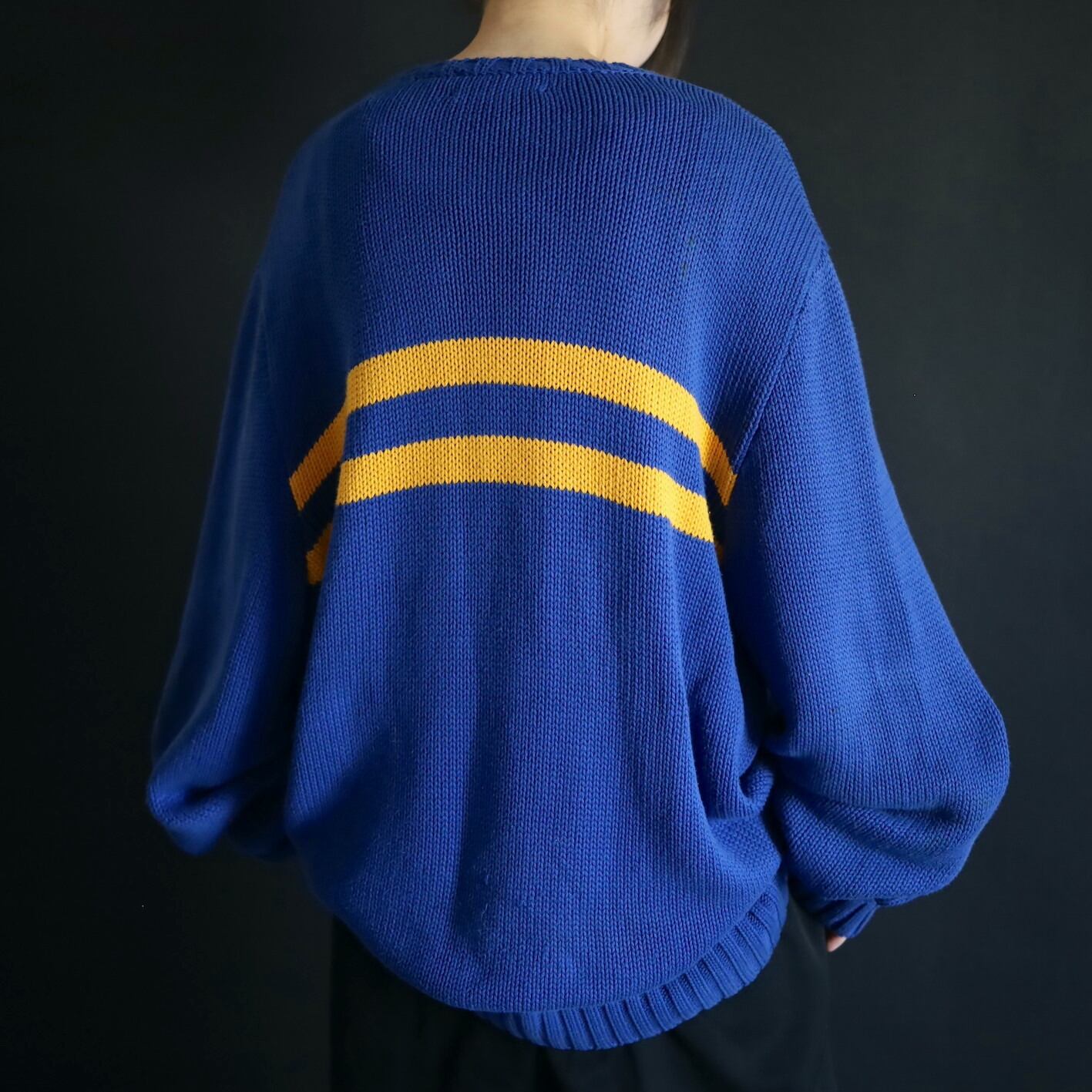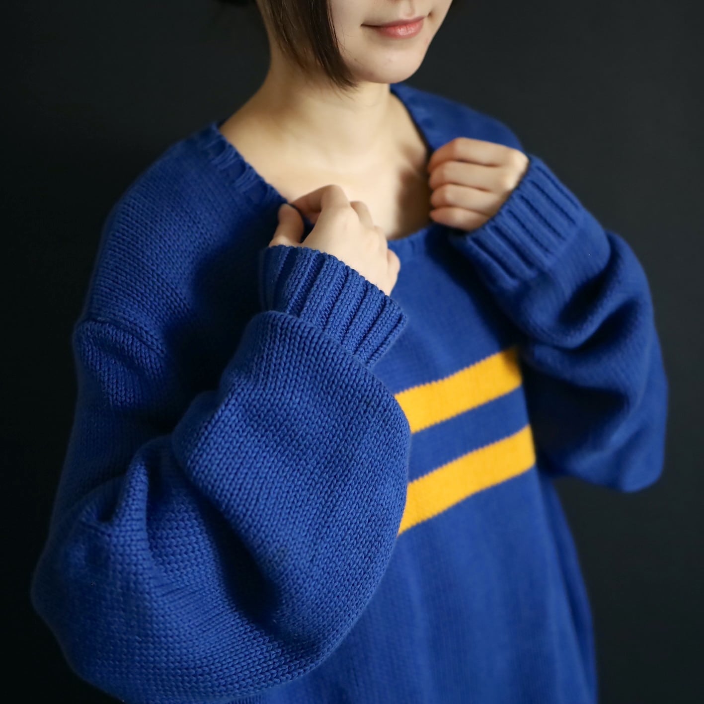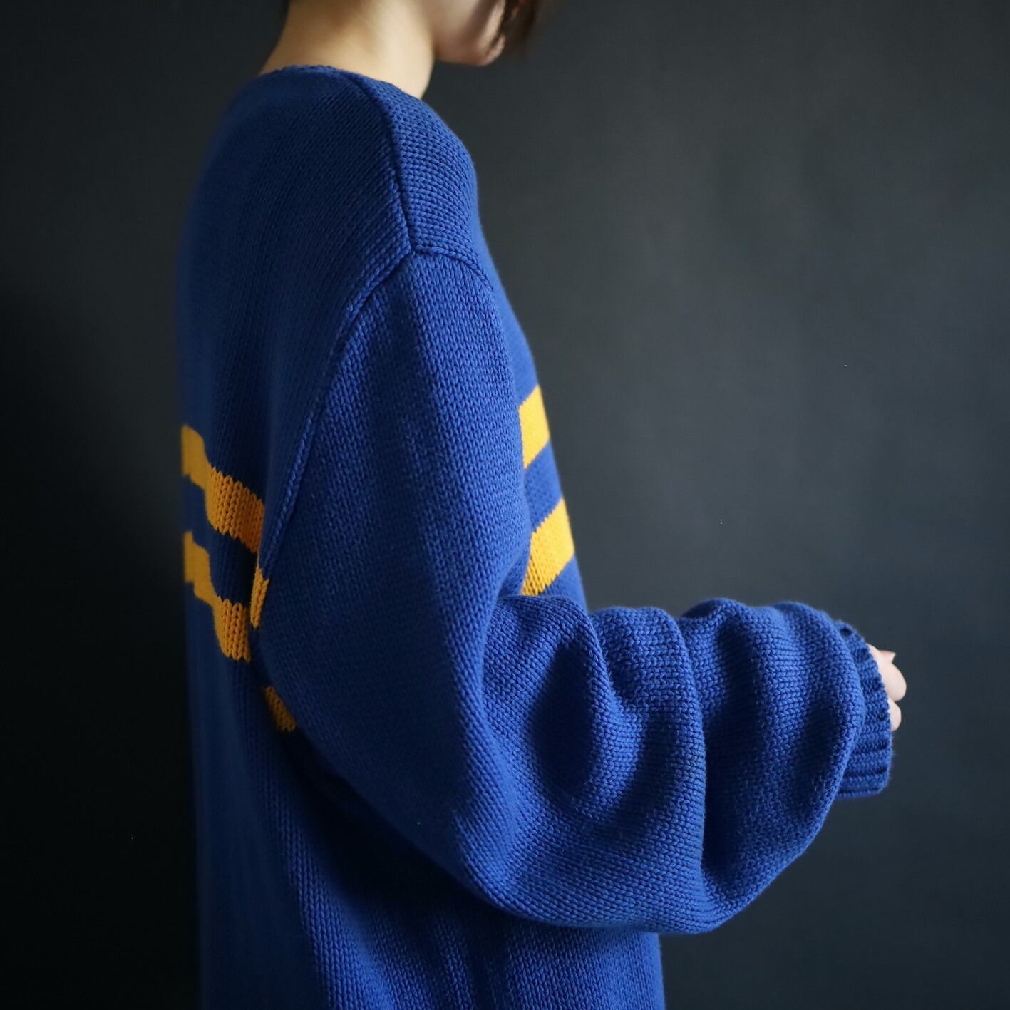 温かみのある配色やダークな印象のニットが多い中,ここまで寒色を表に出したニットも珍しい...