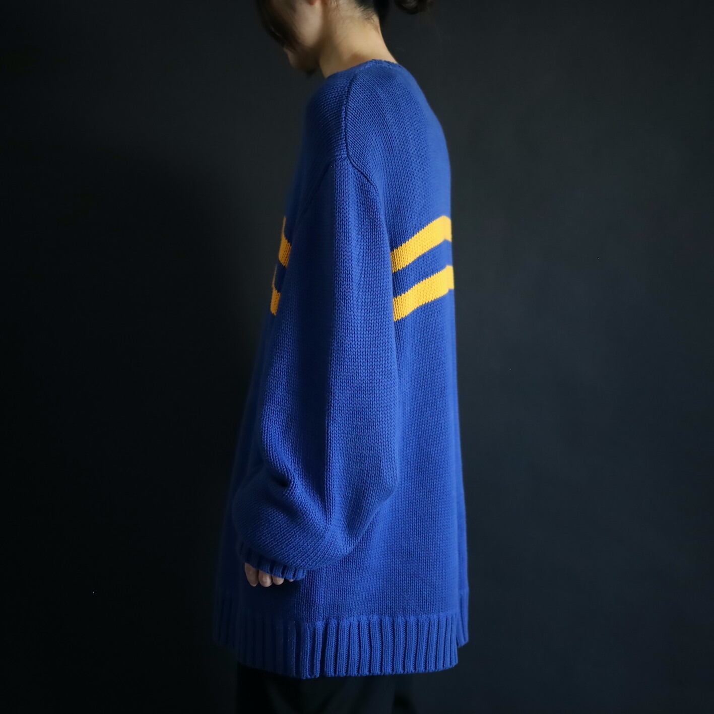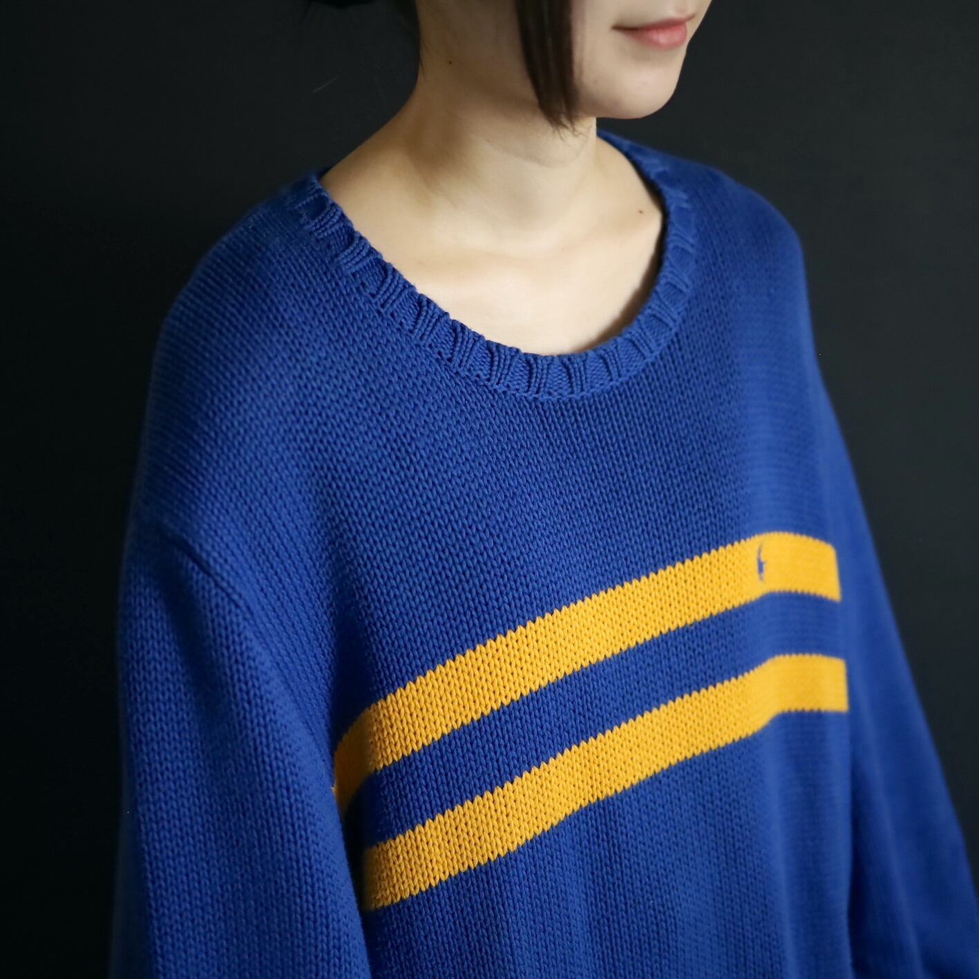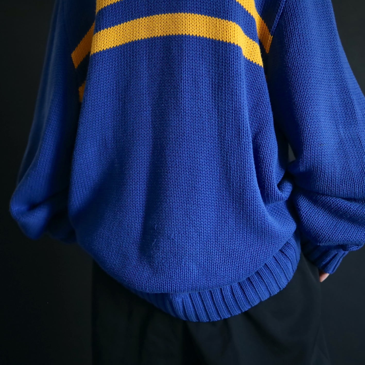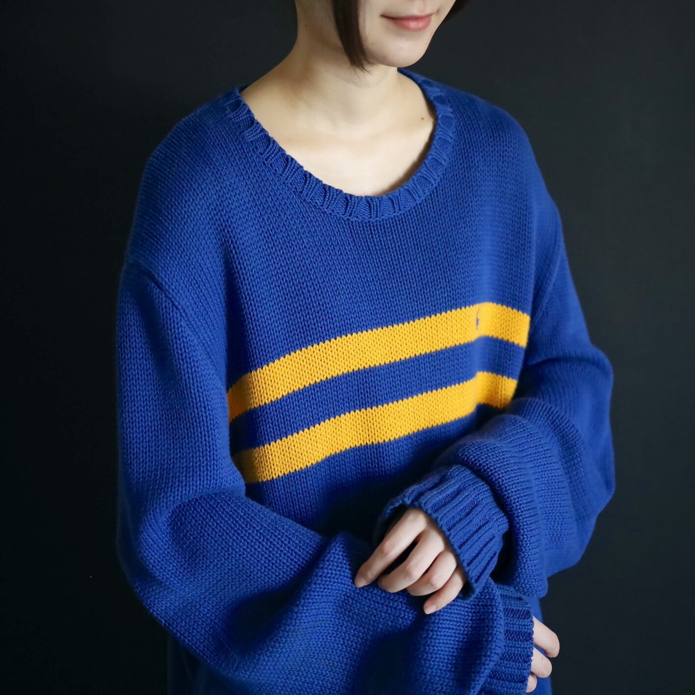 温かみのある配色やダークな印象のニットが多い中,ここまで寒色を表に出したニットも珍しい...