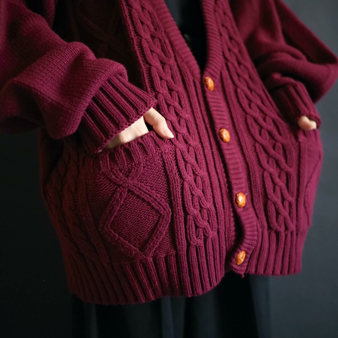 肉厚でざっくりめに編み込まれた立体感ある仕上がり.