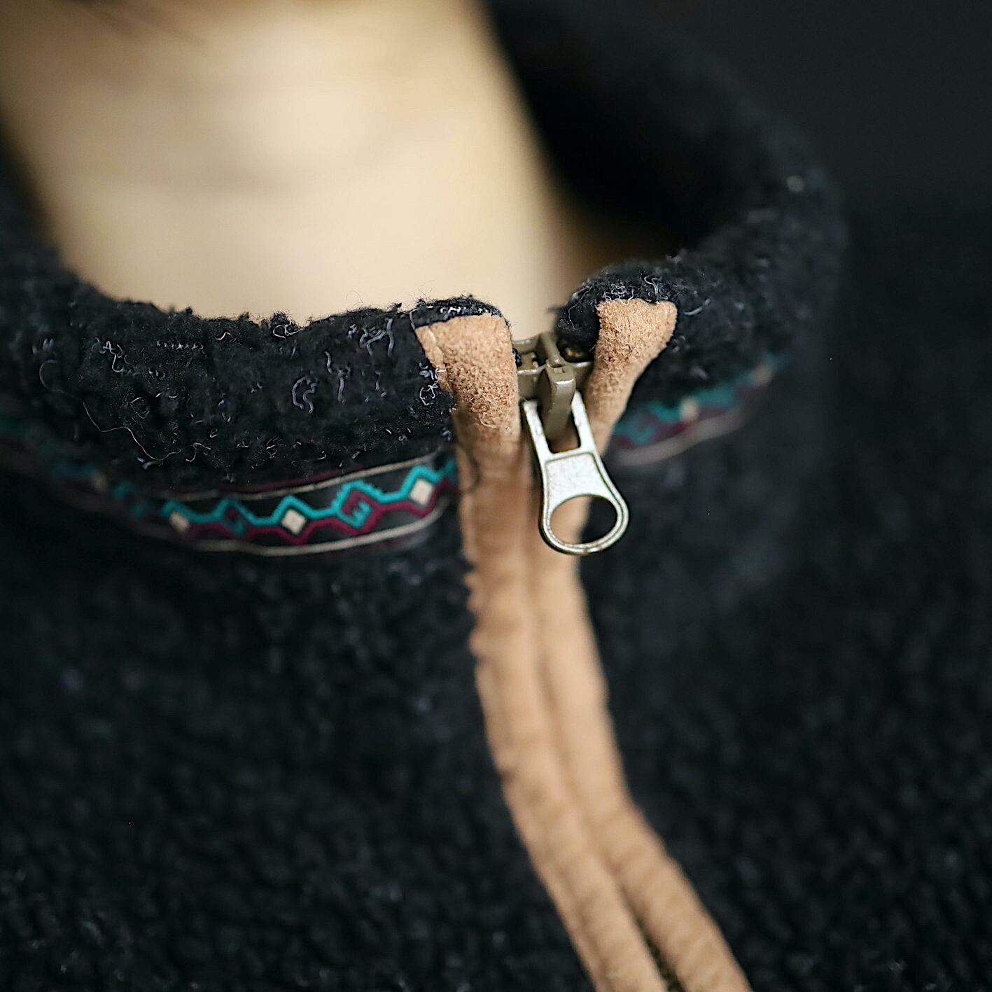 ジッパーに沿ったベージュのパイピングが柔らかい表情.