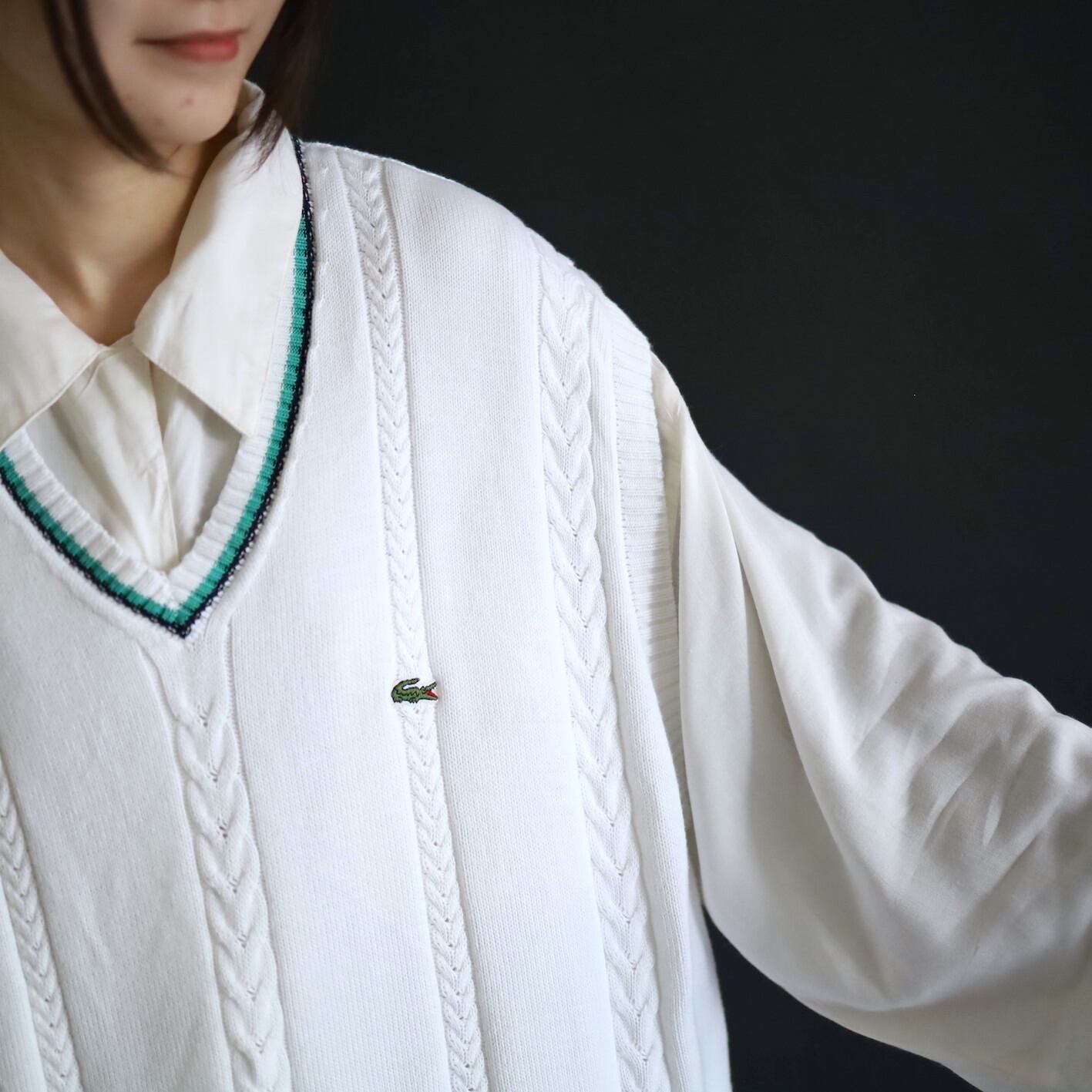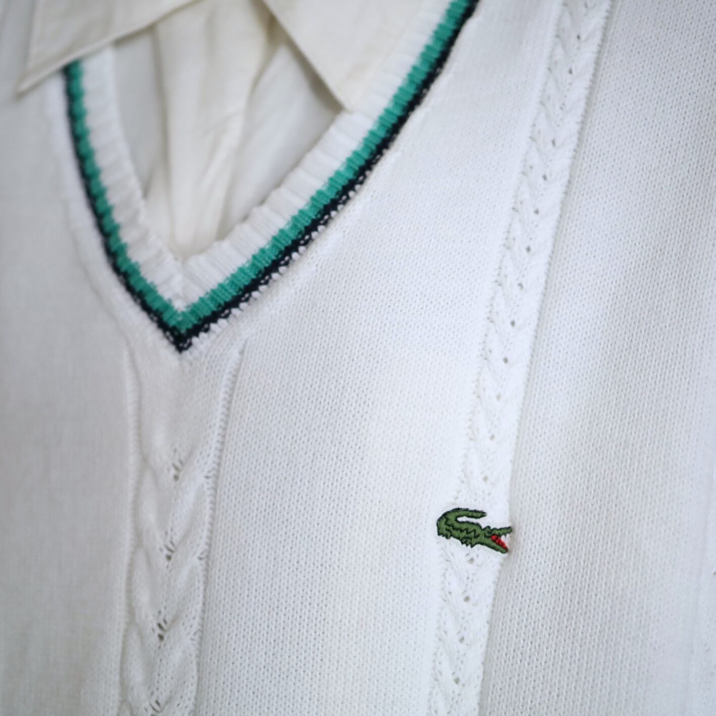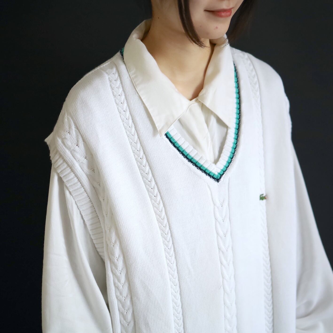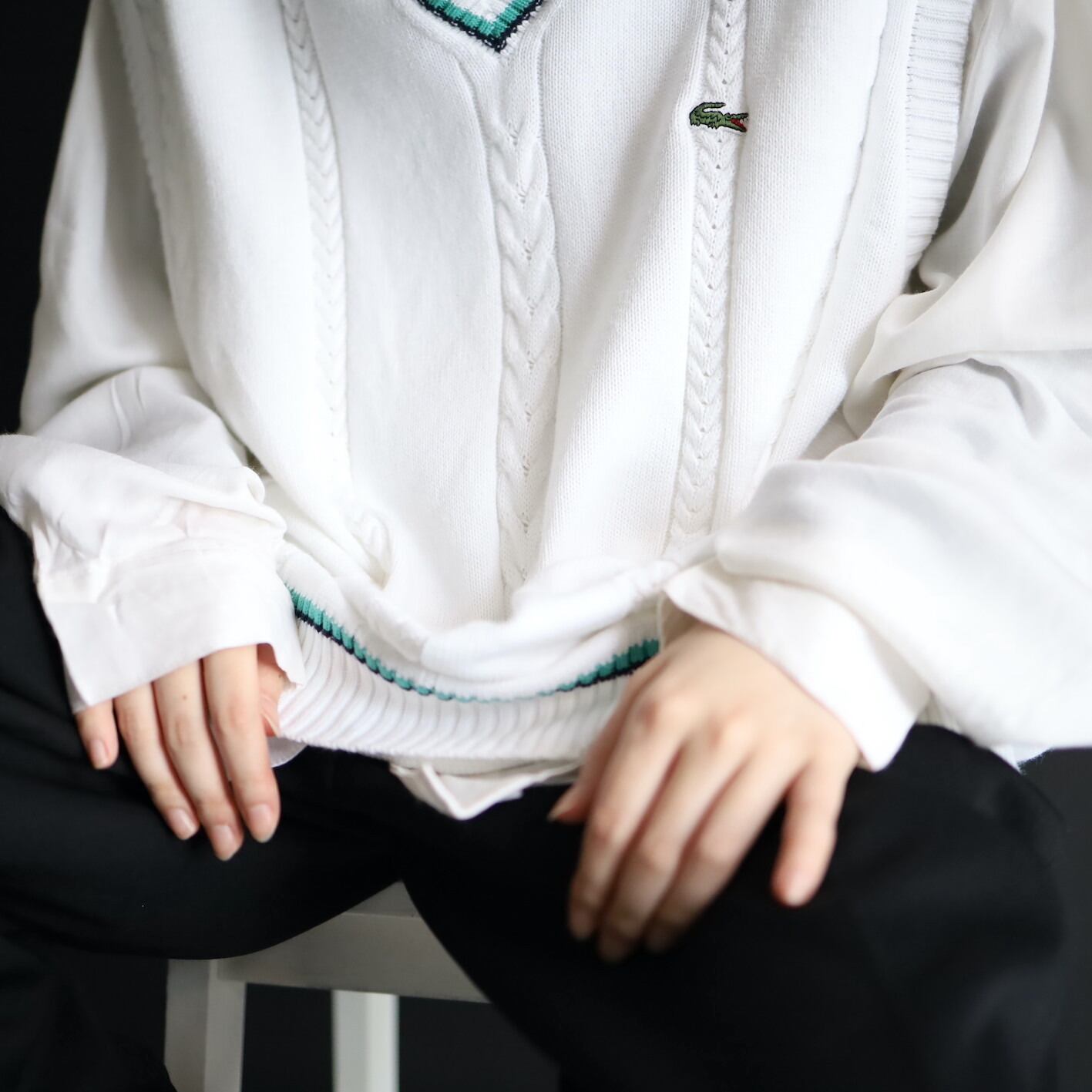 綺麗なホワイトボディをベースに,Vネック,裾を一周するライトグリーンとブラックライン.