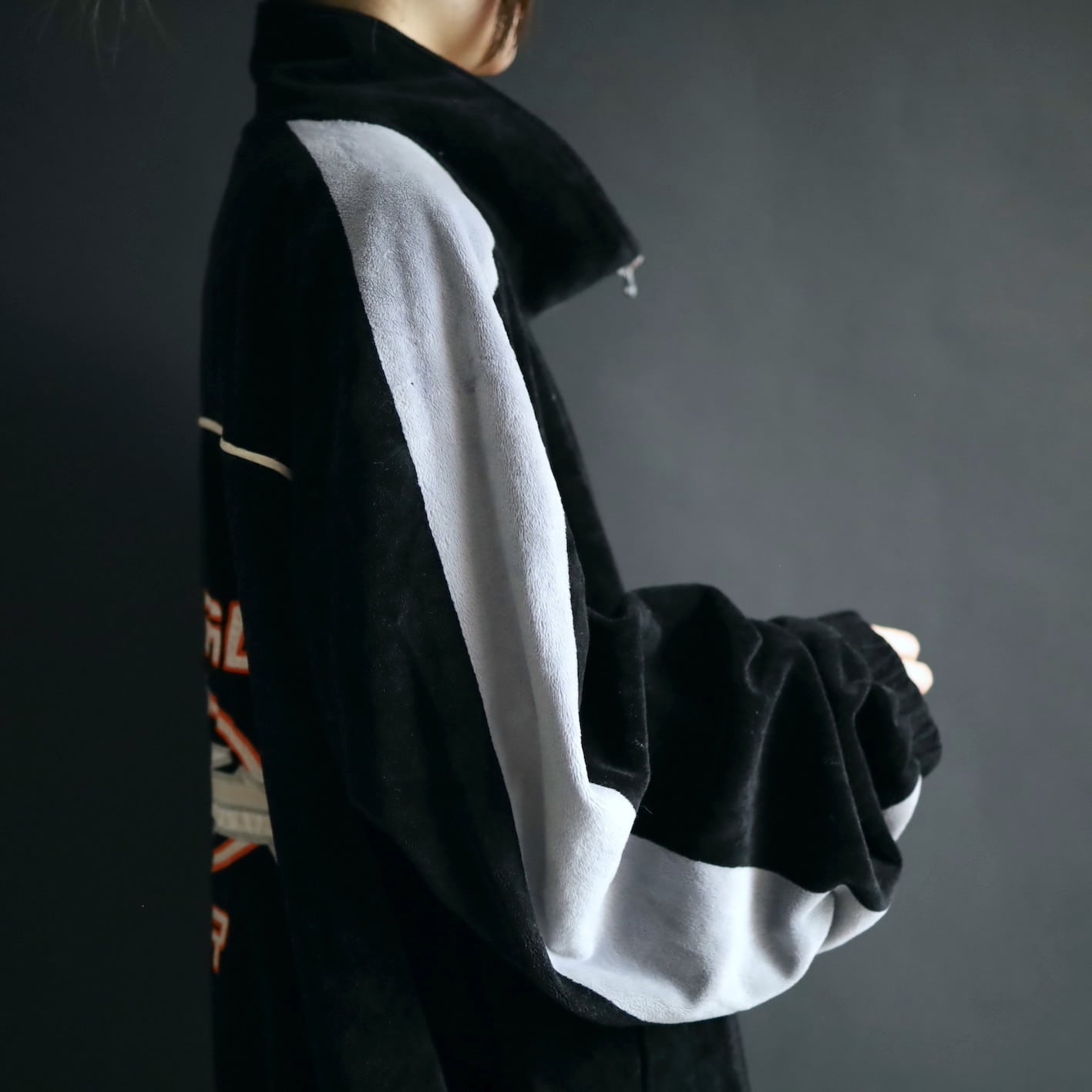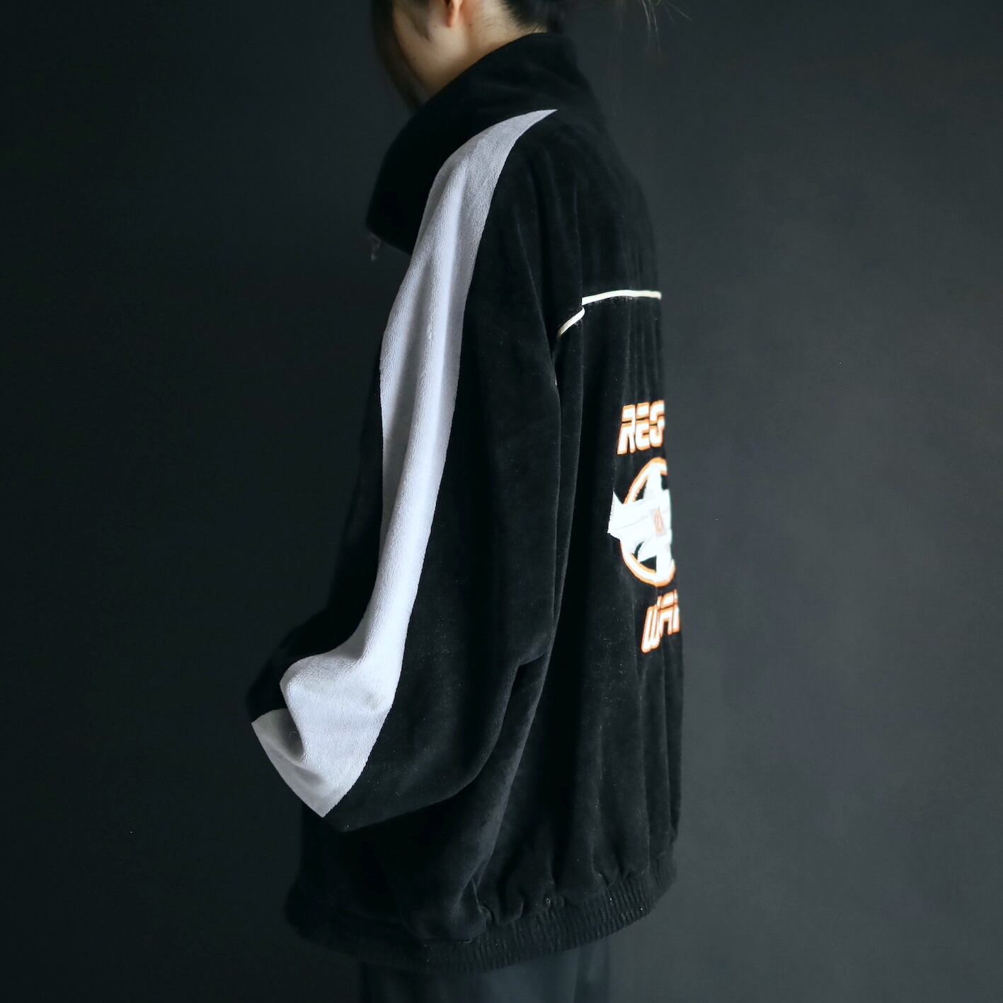 ブラックベースのボディに,肩から袖先に走るライトグレーライン.