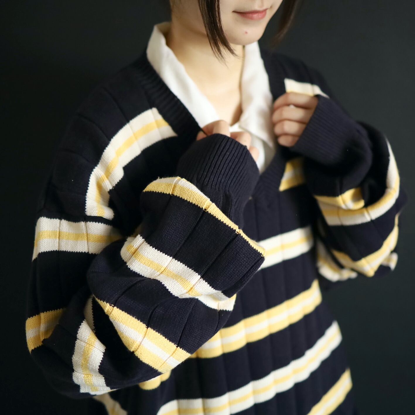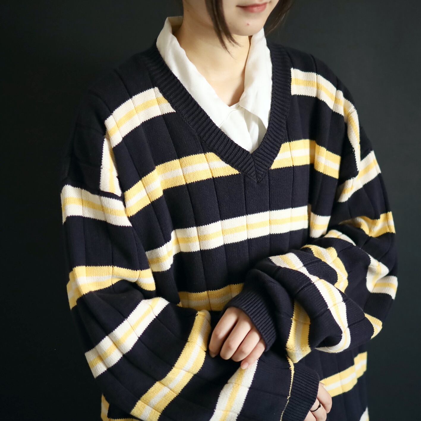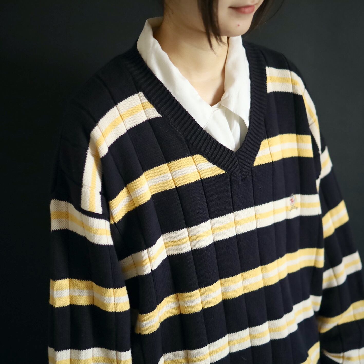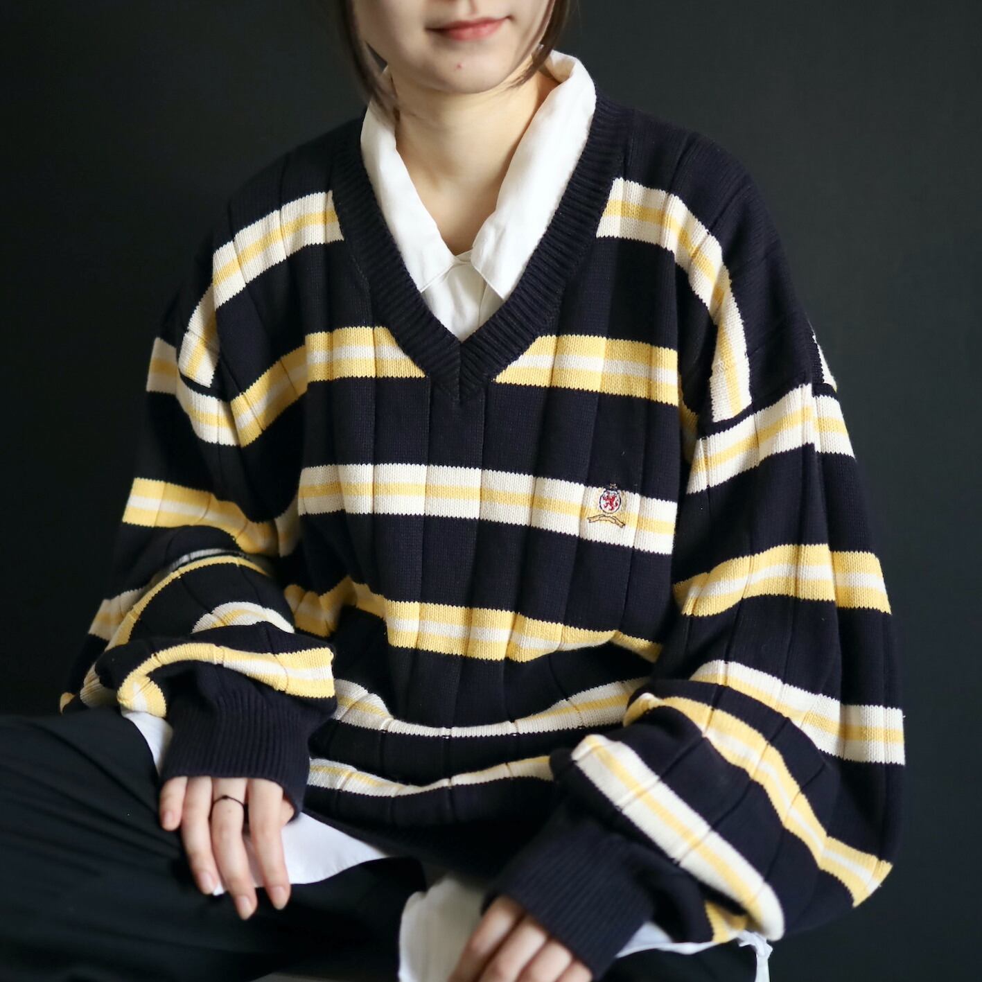 ダークネイビーとイエロー,ホワイトのボーダー.