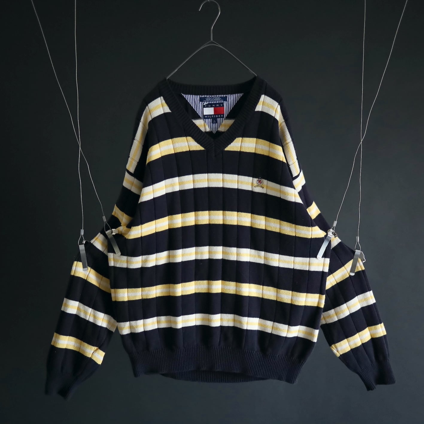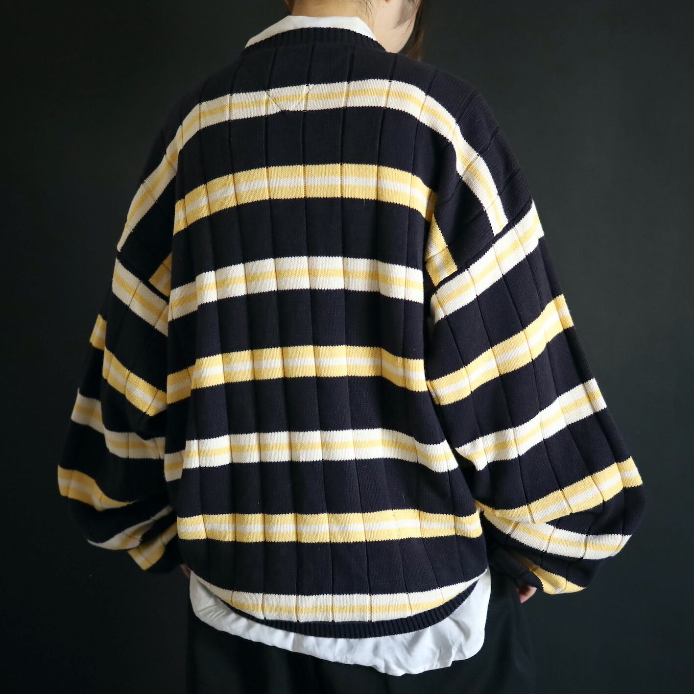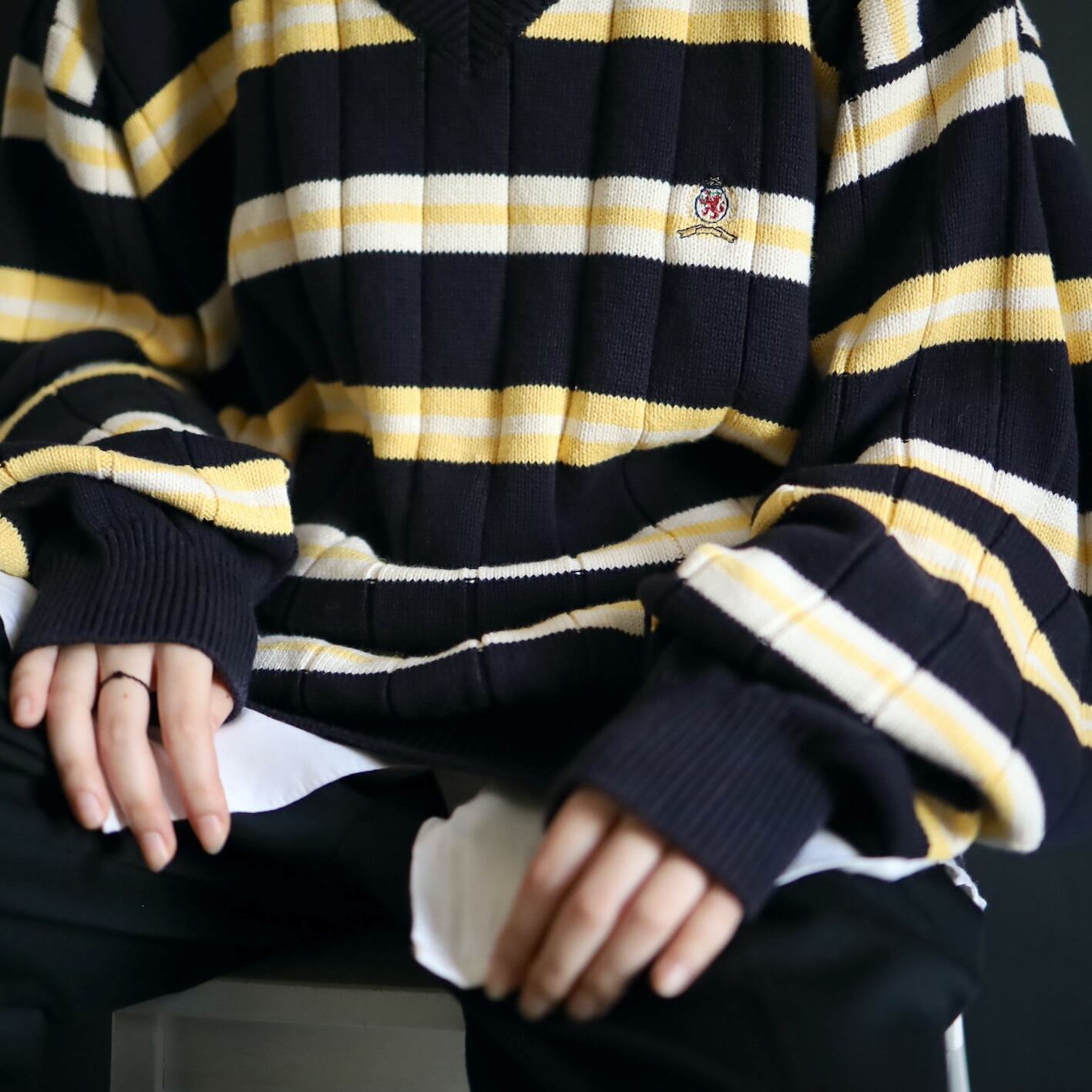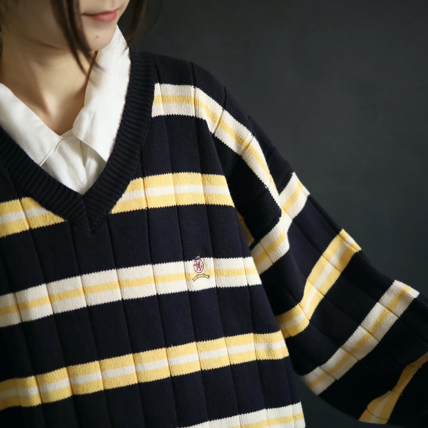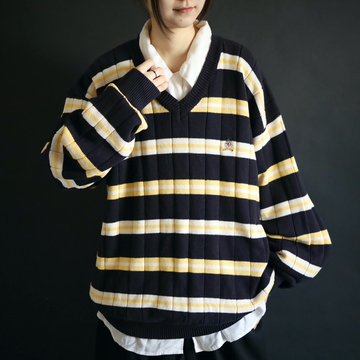 ダークネイビーとイエロー,ホワイトのボーダー.