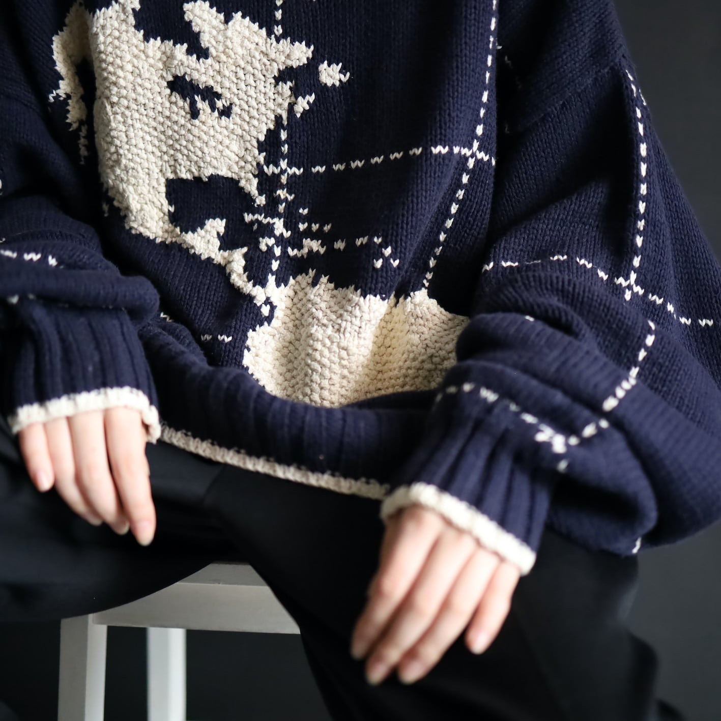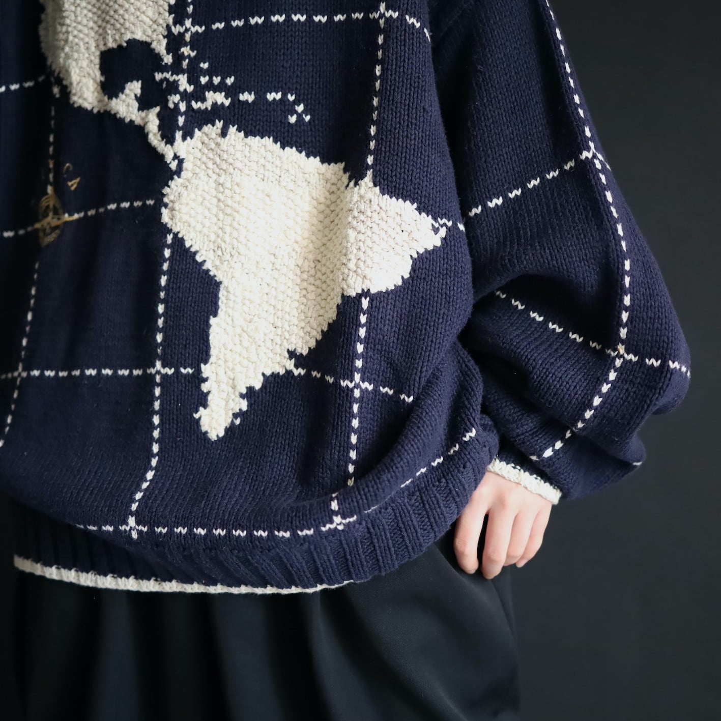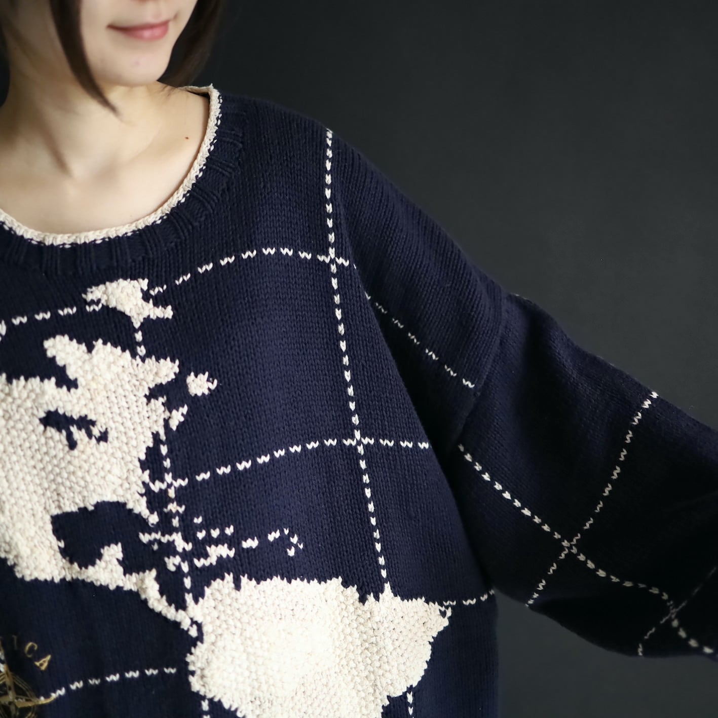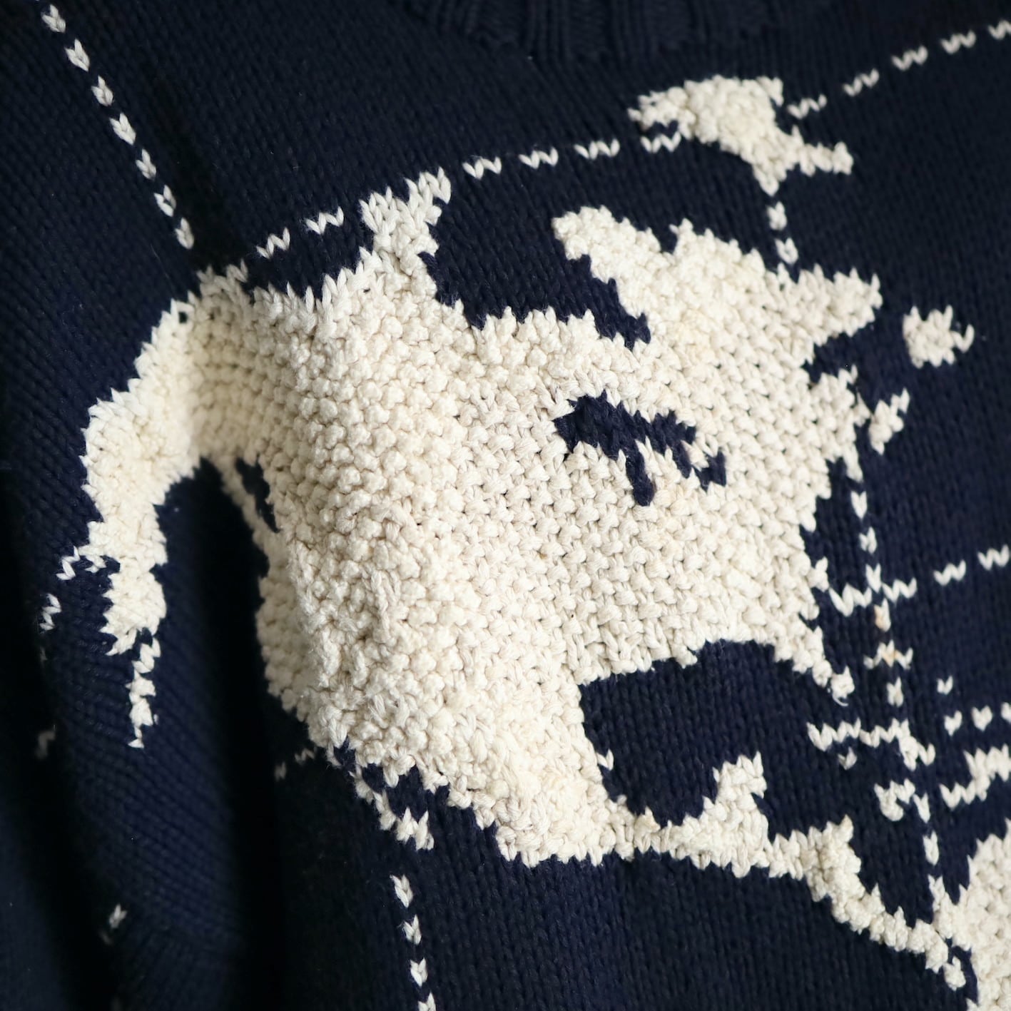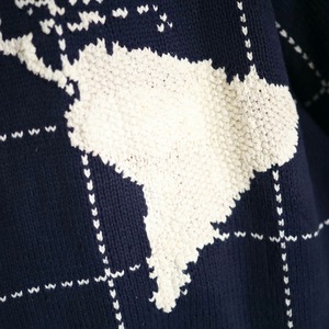 フロントにはアメリカ大陸の織り込みと,ブランドネームと羅針盤の刺繍.