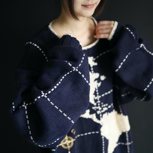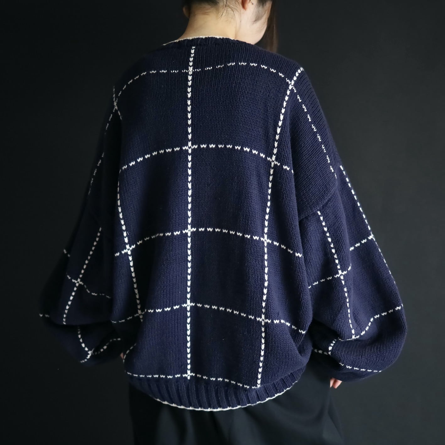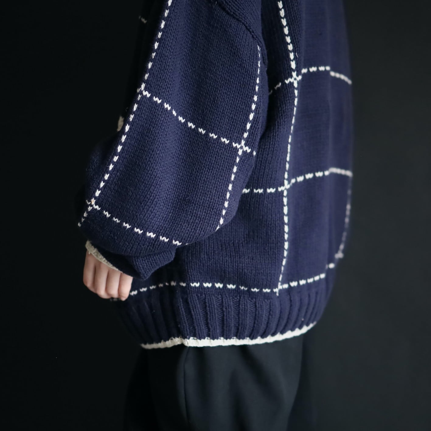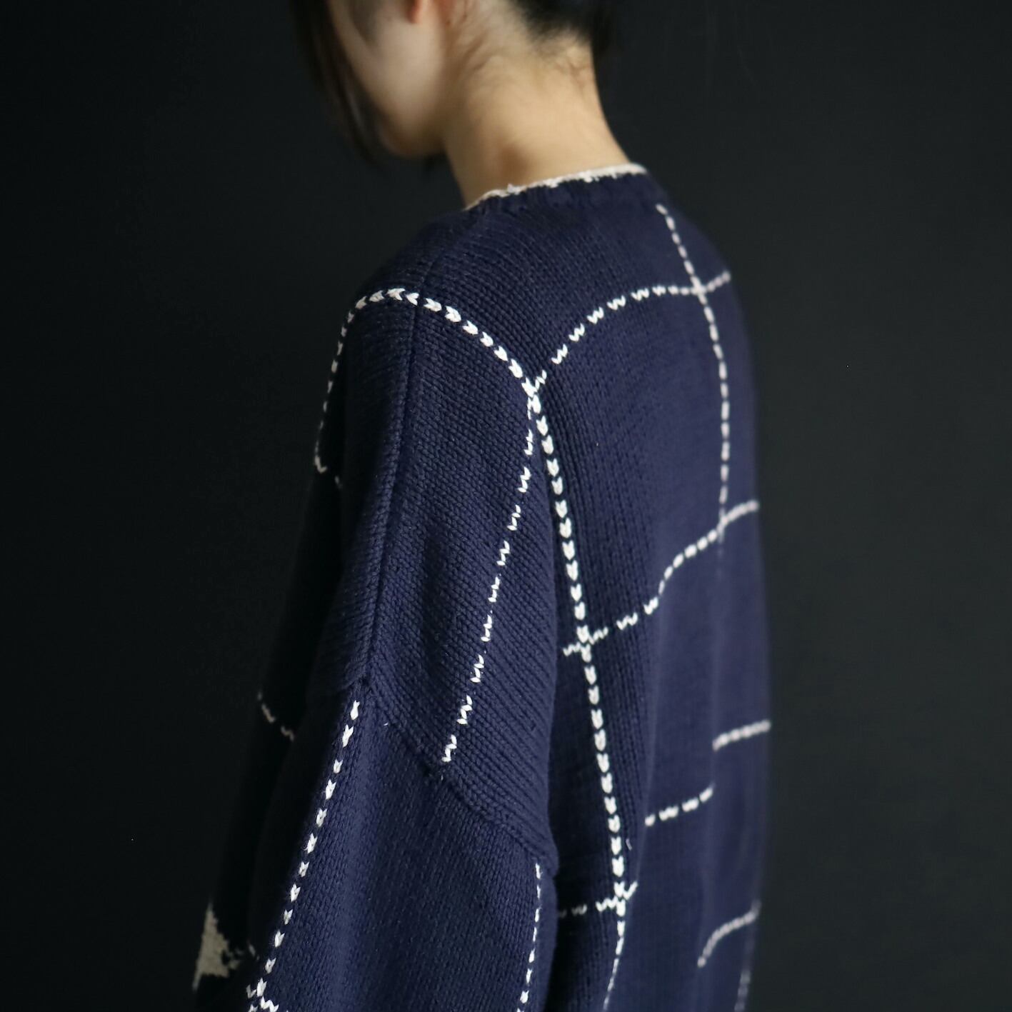 ネイビーのボディをベースに,全体ホワイトの格子.